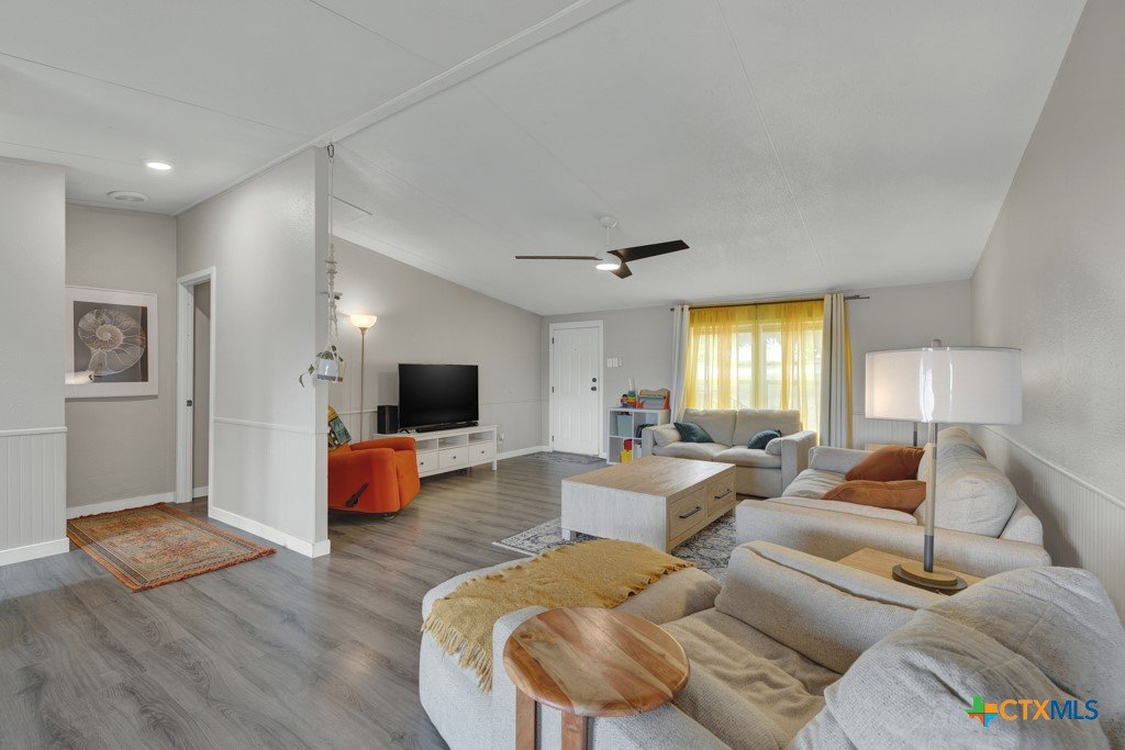 Extensively updated and well-maintained home (owner-occupied since 2021). Nearly full-scale remodel completed with over $100,000 in updates. Two backyard buildings: (1) finished shed with two closets, (2) fully finished building with underground electric and dedicated electrical service—formerly used as a homeschool house. New roof, full exterior paint, and replaced fascia/trim in 2025. All windows replaced with new double-pane, no-grid units (2023–2025). Exterior and interior doors replaced (2023–2024). Interior upgrades from 2021–2022 include whole-home flooring, full interior paint including ceilings, new baseboards, door trim, window trim/seals, guest bathroom remodel, and new closet systems. Masonry skirting built 2023–2024. HVAC duct system repaired and updated; AC and heat operate comfortably. Septic system fully serviced with new electrical controls, new pump, new aerator, and routine pumping, operating like new. New pantry system installed recently. All stainless steel appliances approx. 2 years old (refrigerator, dishwasher, stove/oven, microwave). Primary bathroom fully remodeled with rainfall shower and stand-alone garden tub. Spectrum fiber internet installed. And much more was done to this home and property than can fit in this description box! Backyard is fully privacy-fenced and backs to a greenbelt. Mature oak trees throughout property. Located approx. 12 minutes from HEB San Marcos. Modern country setting with strong privacy. HOME WENT THROUGH RETRO-FITTING LESS THAN 5 YEARS AGO AND IS FHA COMPLIANT AND LENDABLE. In summary, we are a homestead, homeschool, work from home, techy family. We loved this home. We took very good care of it. We are excited to see it go into the hands of someone or a family who will truly appreciate its beauty and rarity.