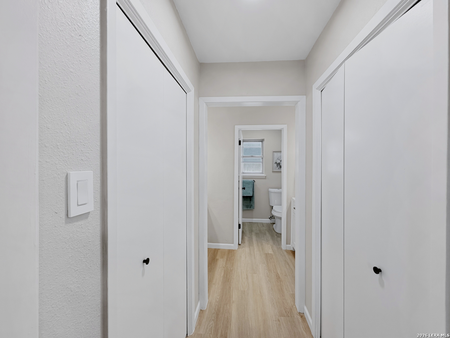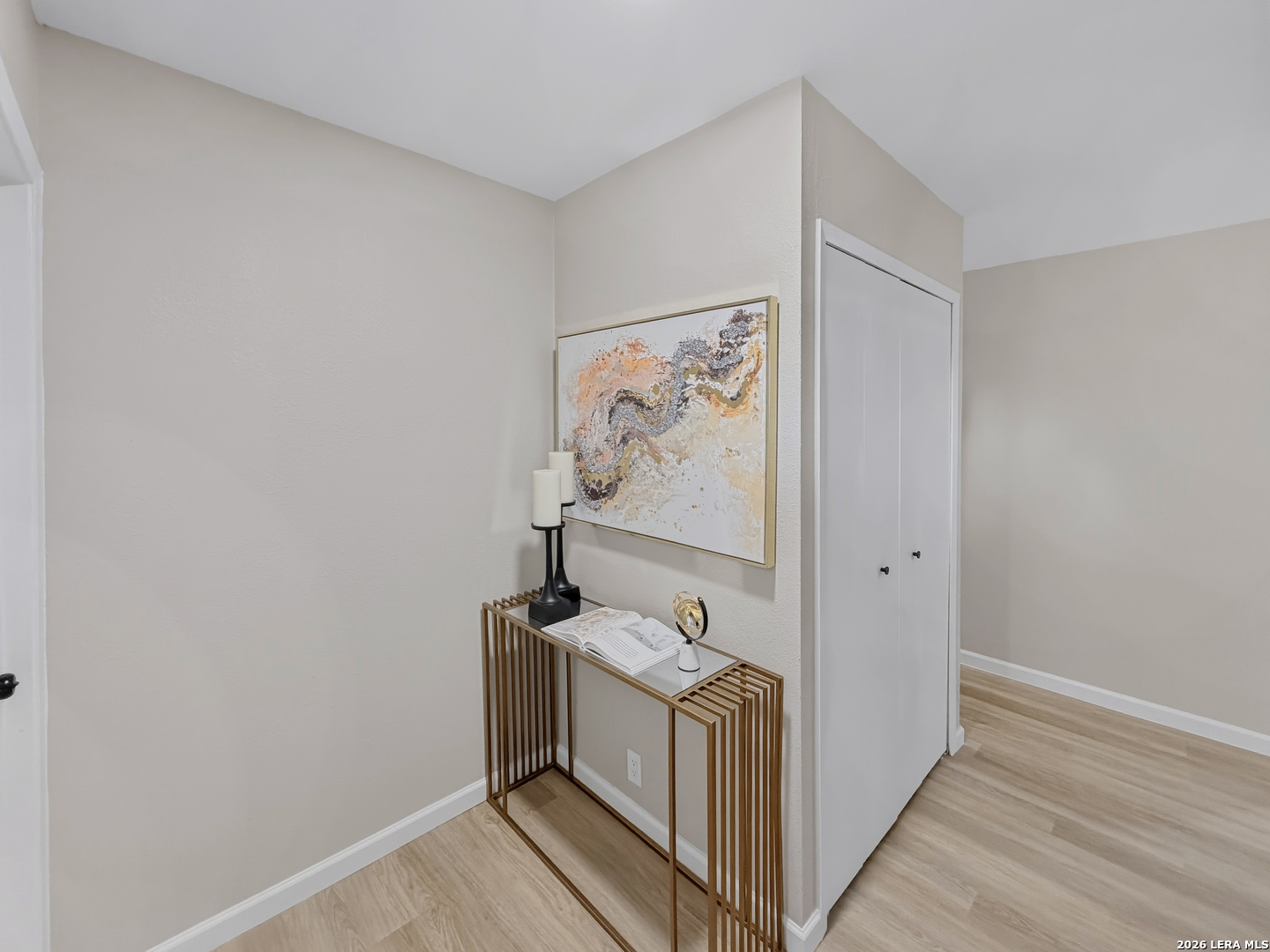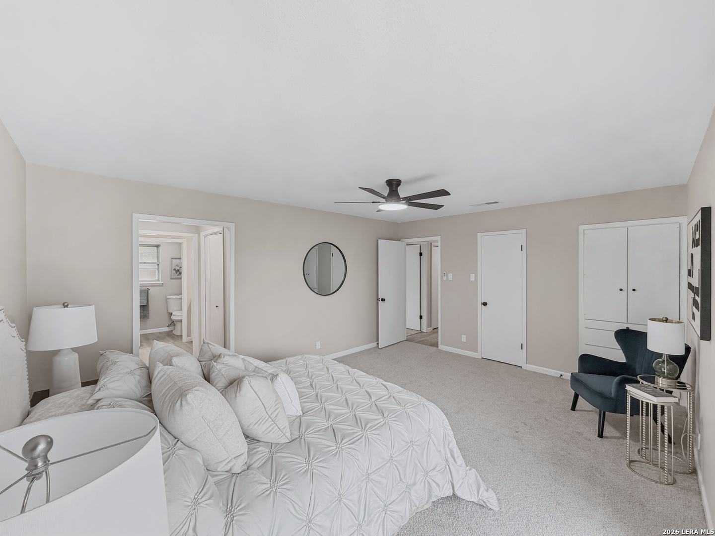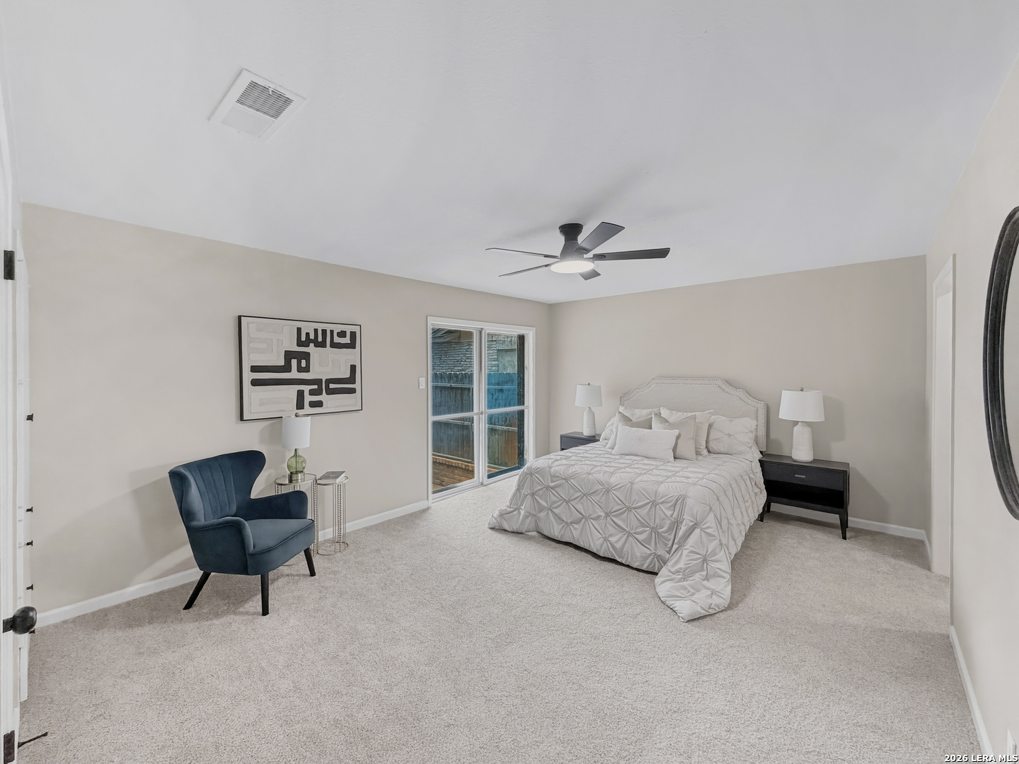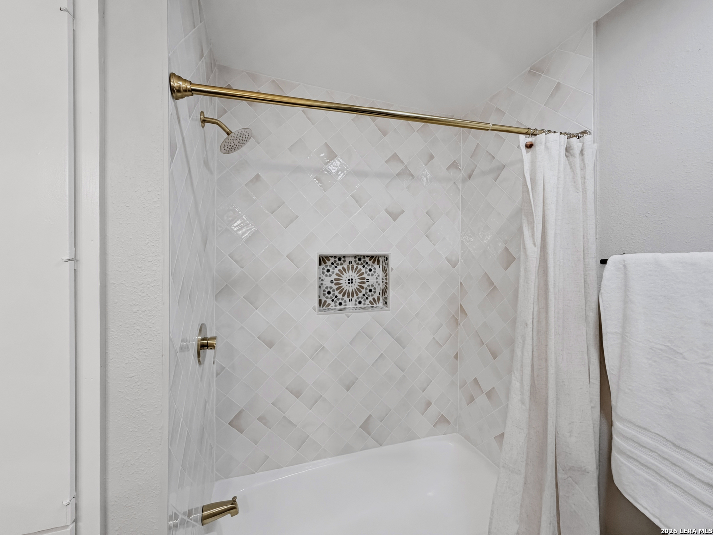 This is the one buyers have been waiting for in Forest Oaks, fully updated, move in ready, and packed with style and value. Three beds, two baths, two car garage on .269 acres sitting on a spacious lot with mature trees, a long driveway, and three sides brick, delivering strong curb appeal from the moment you arrive. Inside, the home opens up with high ceilings, exposed wooden beams, and a warm living area centered around a fireplace, all tied together with new luxury vinyl plank flooring and fresh carpet in the bedrooms. The kitchen is a standout with new custom cabinetry, stainless steel appliances, quartz countertops, a tiled backsplash, and sleek fixtures with gold accents, all overlooking the dining and living spaces for easy everyday living and entertaining. The primary suite feels like a private retreat with double quartz vanities, gold finishes, and an oversized walk in shower, plus direct access to a quiet outdoor lounging area. A covered patio, full privacy fence, and generous backyard set the stage for weekend gatherings and Texas BBQs. Located just minutes from Fort Sam Houston, Randolph Air Force Base, and McAllister Park, with quick access to Interstate 35 and Loop 410, and close proximity to shopping and dining at North Star Mall and The Forum at Olympia Parkway. Homes with this level of finish and location do not last, schedule your showing today and bring your offer.