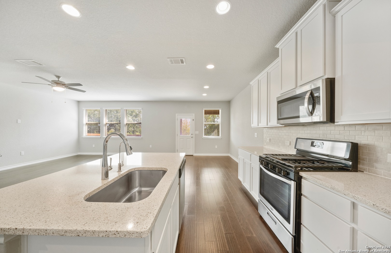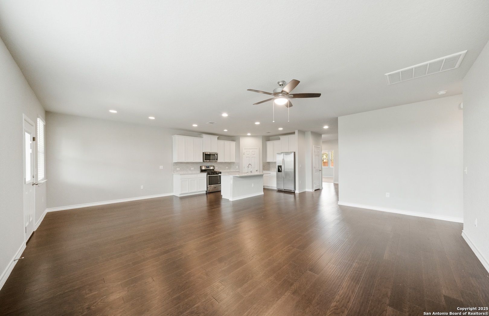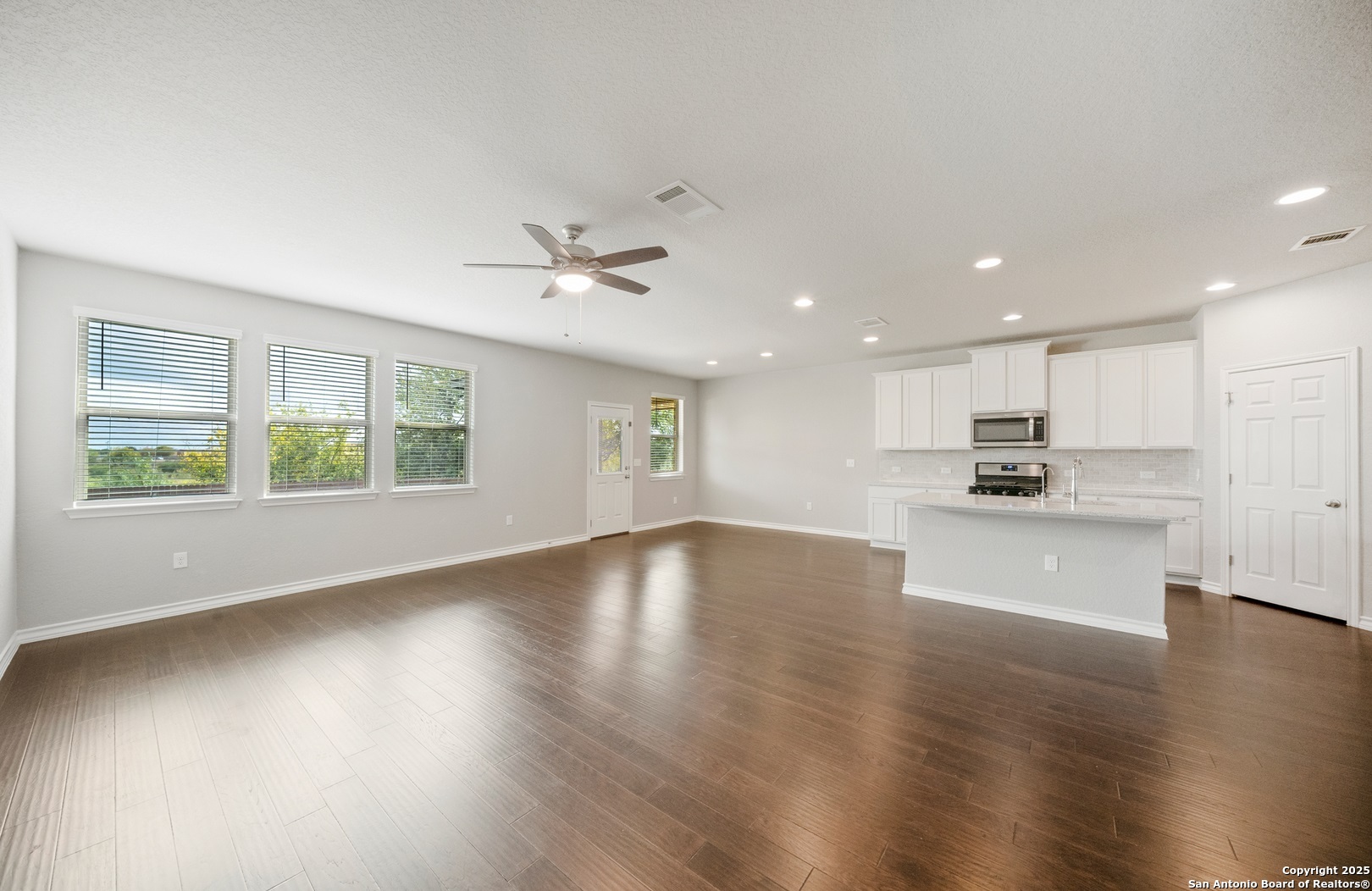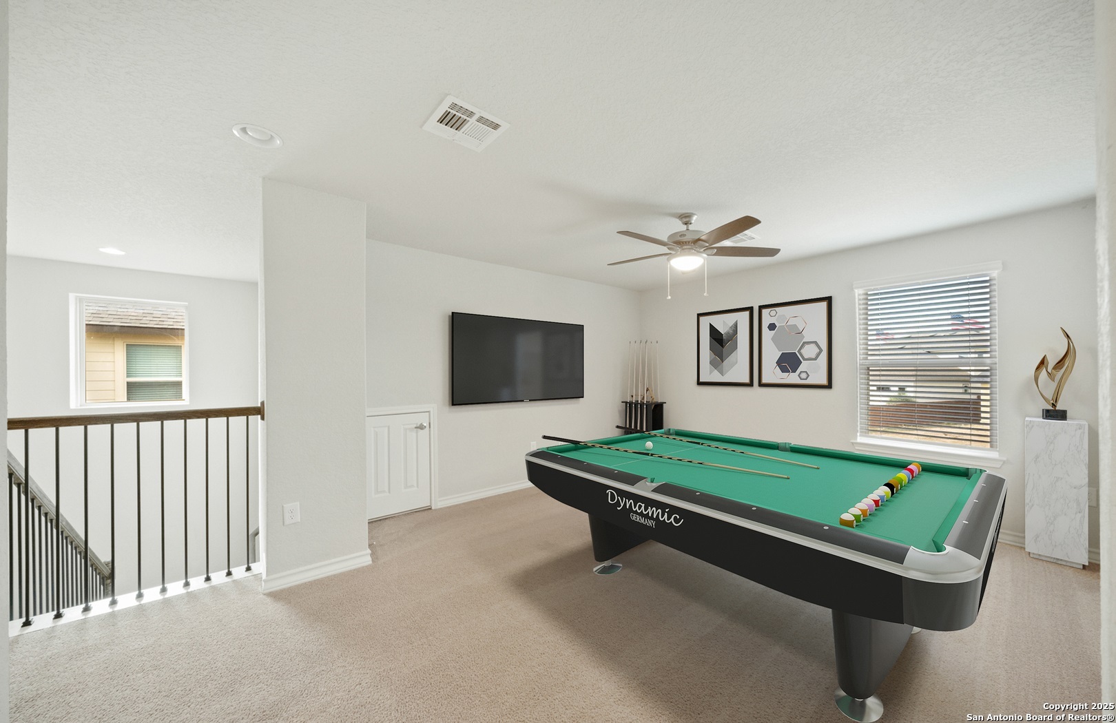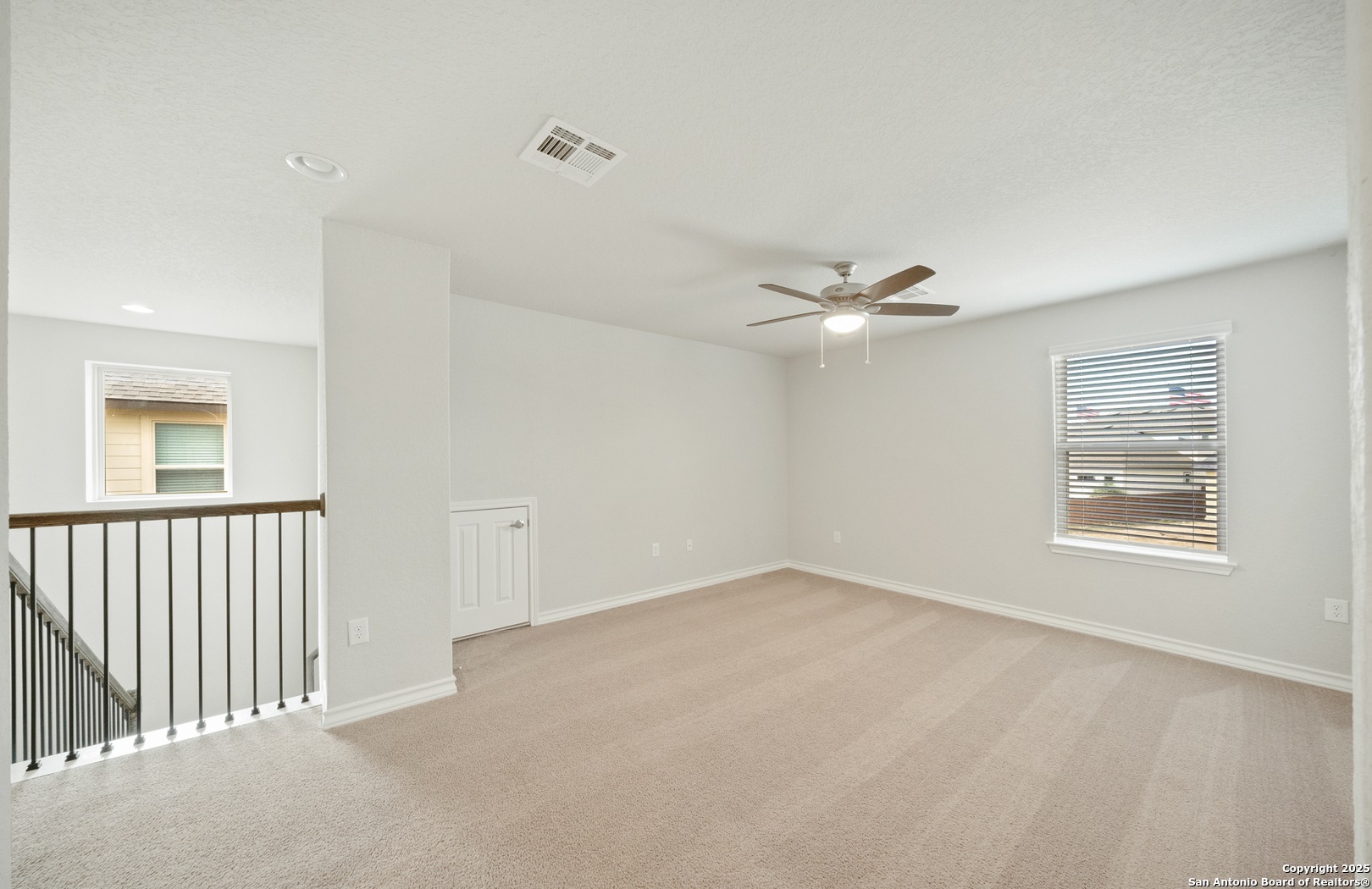 AVAILABLE NOW! This gorgeous house built in 2020 offers SPACE for everyone! The 3-bedroom, 2.5-bath home has an open-concept floor plan with soaring ceilings! There are two living areas, one up and one down. The front office/flex space plus the newly light gray painted Primary Suite are on the first level. The modern chef's kitchen has granite counters, a refrigerator, all stainless appliances, and gas cooking. Upstairs includes a huge game room/loft perfect for the second relaxed living space. The covered back patio opens to a secluded, landscaped yard with country bluff views. You Don't Want to Miss It!
