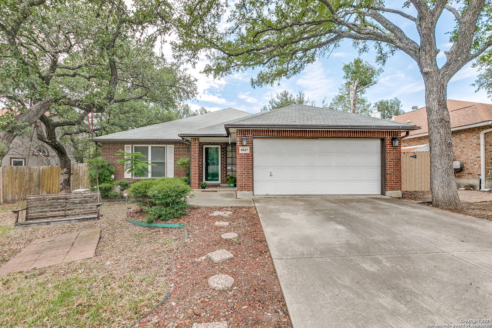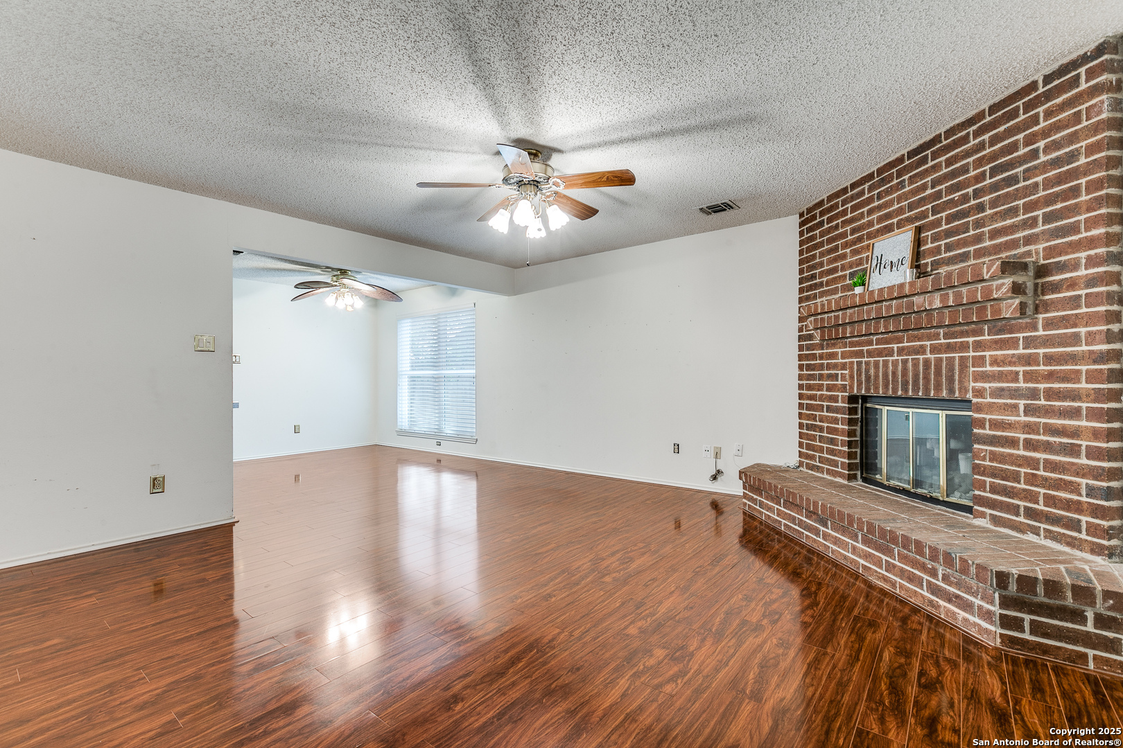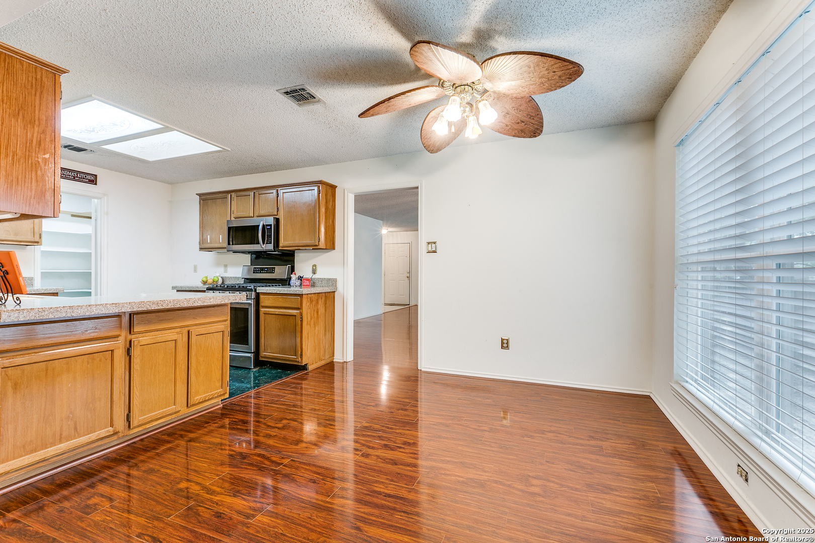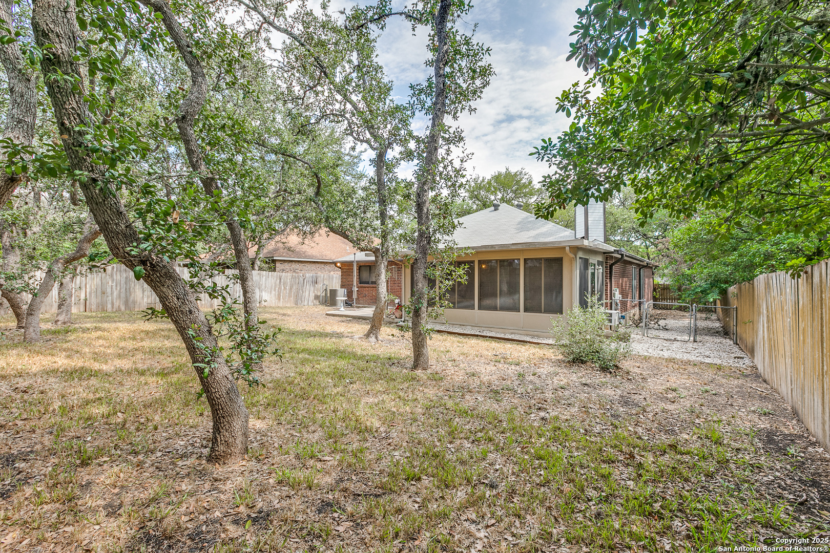 Nestled in the desirable Northwest neighborhood of Silver Creek and located in highly acclaimed Northside ISD, this spacious single-story home offers 2,108 sq ft of thoughtfully designed living space. From the moment you step inside, you're greeted by soaring ceilings and an open, expansive floor plan that seamlessly blends comfort and functionality. This 3-bedroom, 2-bath home features no carpet throughout, offering low-maintenance living. Enjoy two generous living areas, anchored by a floor-to-ceiling brick fireplace-perfect for relaxing or entertaining. The updated kitchen is equipped with granite countertops, gas cooking, a built-in microwave, and an oversized 6x7 walk-in pantry. The split floor plan provides privacy, with a large primary suite featuring a spacious 7x13 walk-in closet and a well-appointed bath. Two additional bedrooms and a full secondary bath offer flexibility for guests or family. Enjoy the versatile 18x12 screened-in porch with air conditioning, ideal for year-round enjoyment and a tranquil outdoor experience. A connected patio offers the perfect space for weekend BBQs, all in a fully fenced, peaceful backyard. Conveniently located near shopping, restaurants, and major highways, this home blends everyday convenience with timeless comfort. A must-see in Silver Creek!
