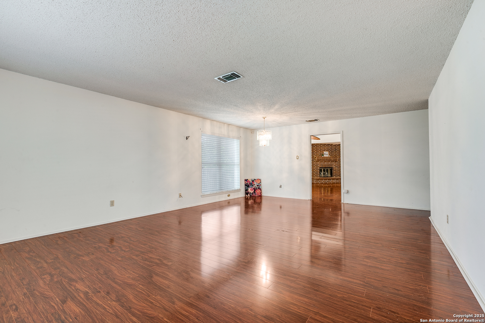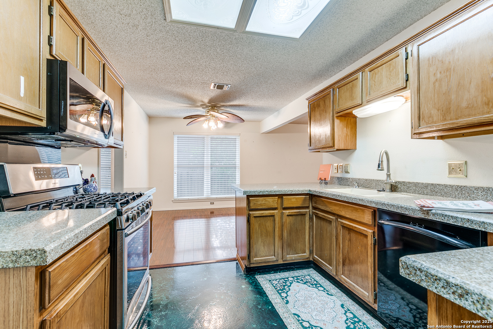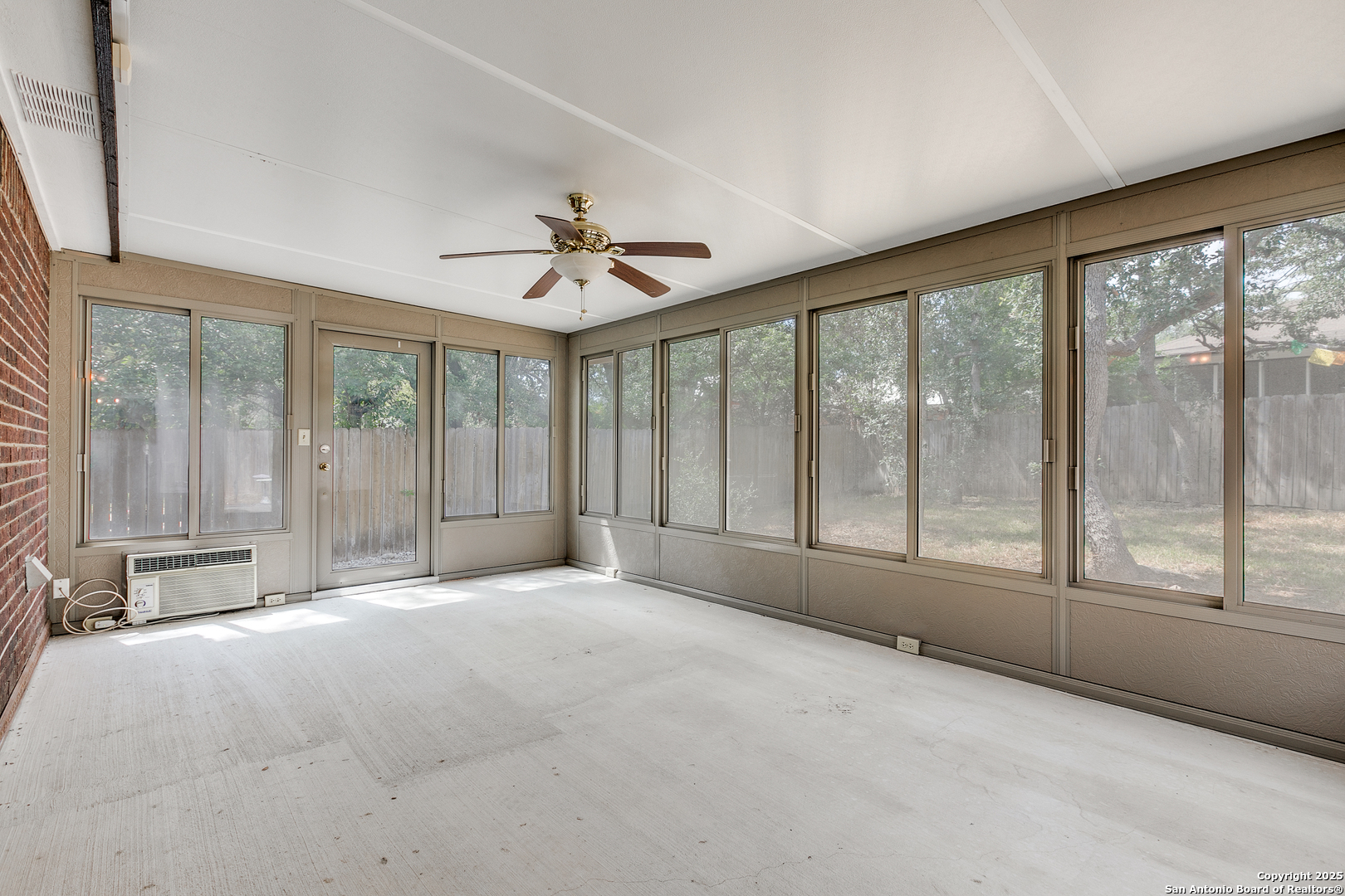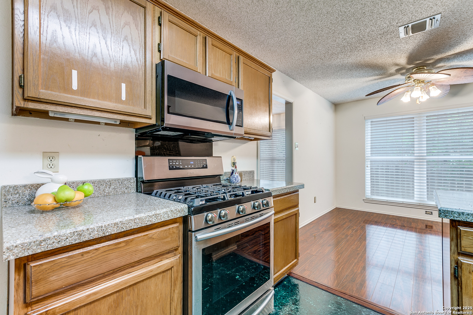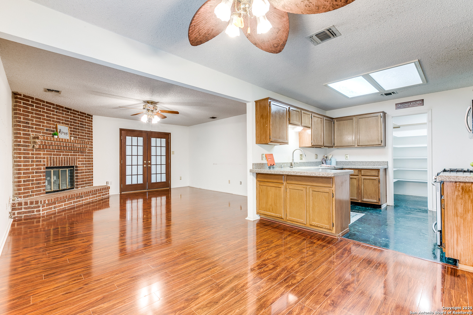 Nestled in the desirable Northwest neighborhood of Silver Creek and located in highly acclaimed Northside ISD, this spacious single-story home offers 2,108 sq ft of thoughtfully designed living space. From the moment you step inside, you're greeted by soaring ceilings and an open, expansive floor plan that seamlessly blends comfort and functionality. This 3-bedroom, 2-bath home features no carpet throughout, offering low-maintenance living. Enjoy two generous living areas, anchored by a floor-to-ceiling brick fireplace-perfect for relaxing or entertaining. The updated kitchen is equipped with granite countertops, gas cooking, a built-in microwave, and an oversized 6x7 walk-in pantry. The split floor plan provides privacy, with a large primary suite featuring a spacious 7x13 walk-in closet and a well-appointed bath. Two additional bedrooms and a full secondary bath offer flexibility for guests or family. Enjoy the versatile 18x12 screened-in porch with air conditioning, ideal for year-round enjoyment and a tranquil outdoor experience. A connected patio offers the perfect space for weekend BBQs, all in a fully fenced, peaceful backyard. Conveniently located near shopping, restaurants, and major highways, this home blends everyday convenience with timeless comfort. A must-see in Silver Creek!