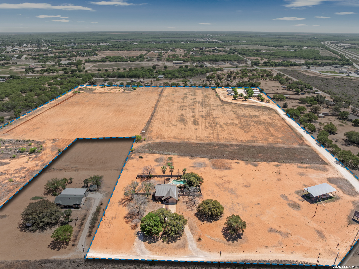 Discover a rare opportunity with this nearly 33-acre multi-use property offering prime Highway 35 frontage, excellent visibility, and endless potential for investment, development, or owner-use. This unique offering can truly be seen as three properties in one: The first is a beautifully maintained residential estate situated on approximately 3 acres, featuring a 4-bedroom, 2-bath brick home. Inside, you'll find an inviting two-story living area, tile flooring throughout the main level, an updated primary bathroom, and a spacious kitchen and dining area. Step outside to a large covered patio overlooking a pool and spa-perfect for relaxing or entertaining. The second component includes approximately 1-2 acres dedicated to income-producing property, currently operating as a mobile home/RV park with existing tenants in place. This portion provides immediate cash flow and long-term rental potential. The third and largest portion consists of expansive raw land, offering a blank canvas for future development, expansion, or recreational use. With its strategic location, multiple income streams, and significant land value, this property presents an exceptional opportunity for investors, developers, or those seeking a versatile live/work environment with room to grow.