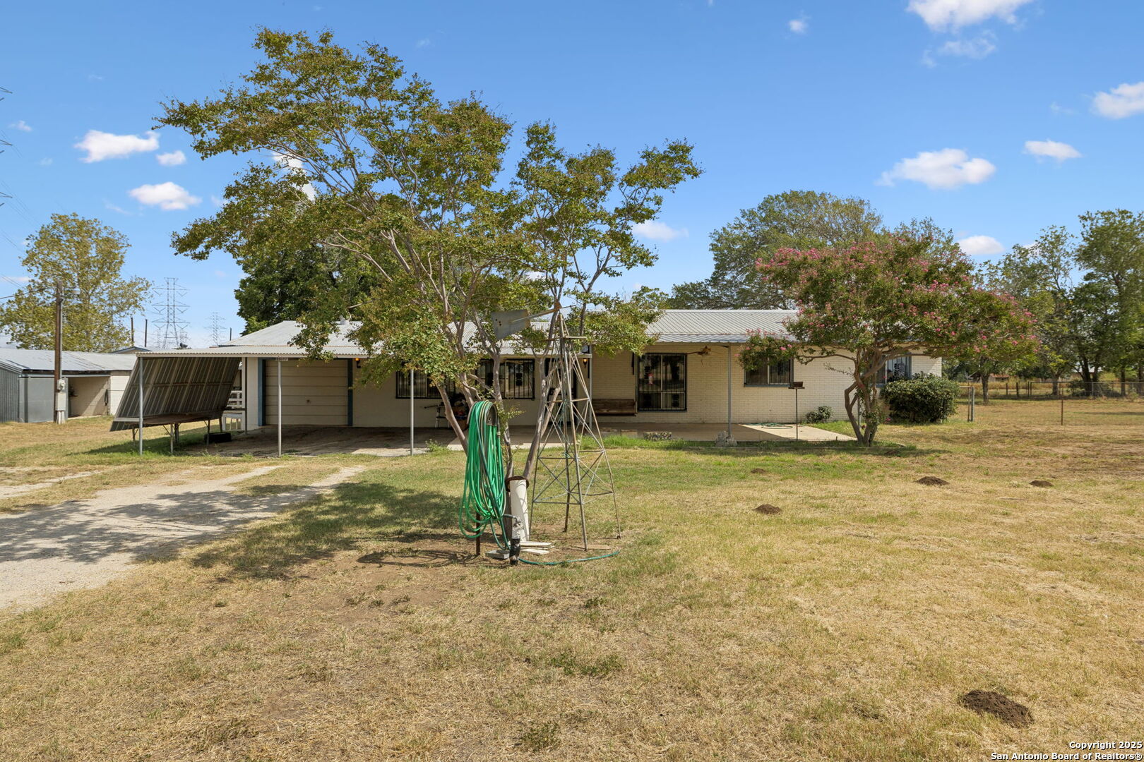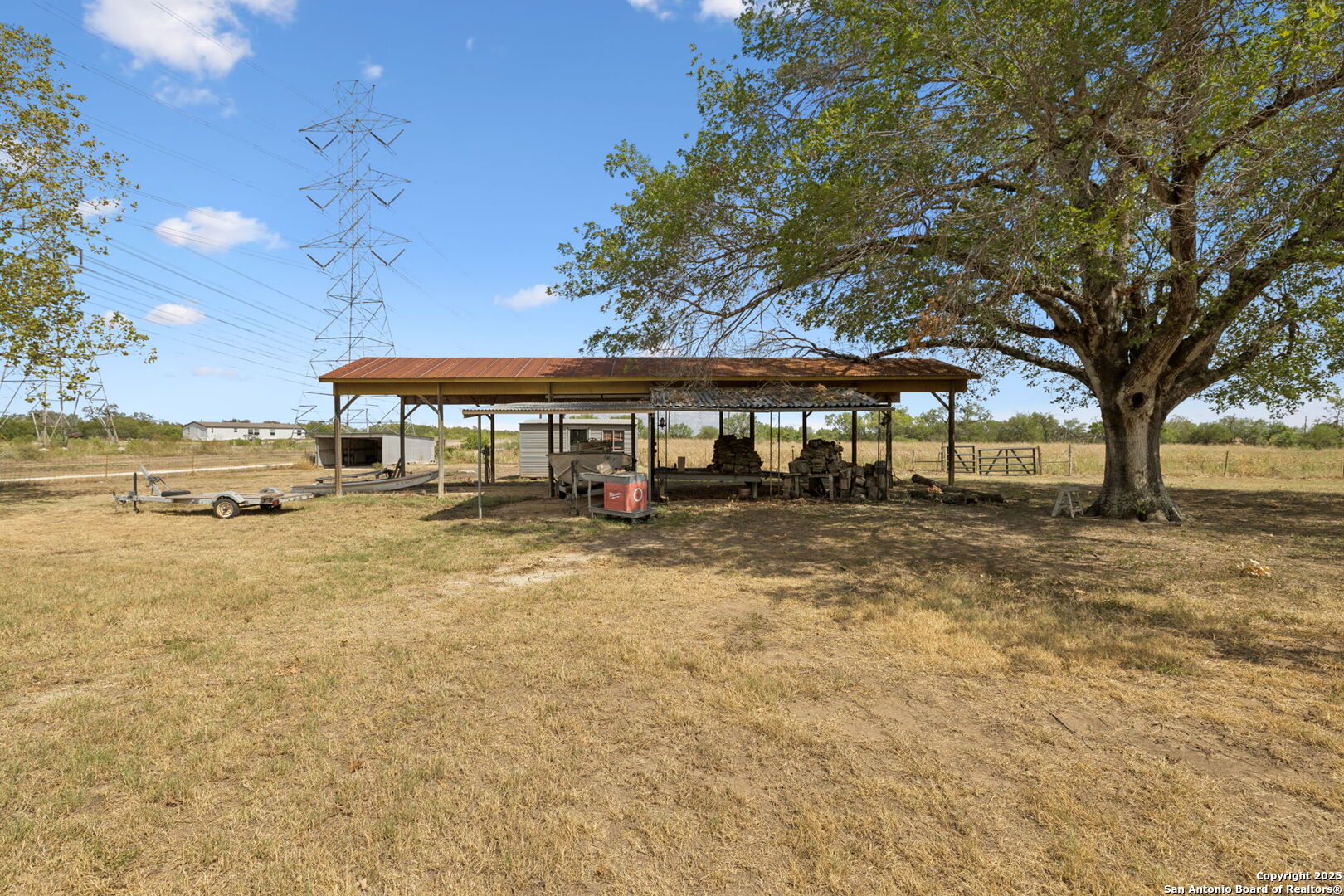 Unlock the possibilities on this remarkable 5.5-acre property just outside Loop 410, zoned OCL for added flexibility and NO HOA. This hidden gem features a cozy 2-bedroom, 2-bath home offering just over 1,800 square feet of living space, surrounded by wide-open land with endless potential for future growth, development, or simply enjoying the peace and quiet. Bonus features include a dedicated RV cover and full hookups in the back, making it ideal for guests, extended stays, or additional rental income. If you're searching for a private retreat that still provides easy access to city amenities, this is the opportunity you've been waiting for. With room to expand and the freedom to create your vision, this property offers the perfect blend of rural charm and urban convenience. Properties like this are rare-don't miss out!