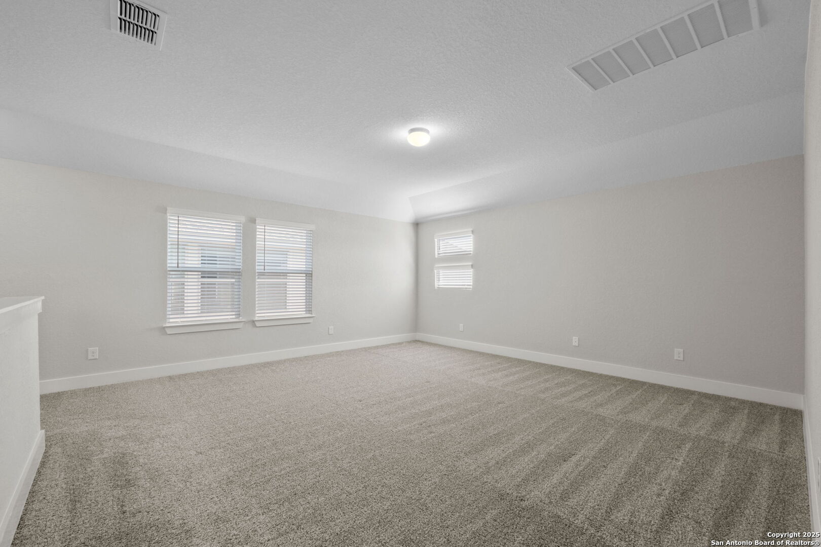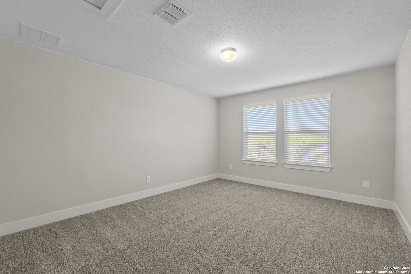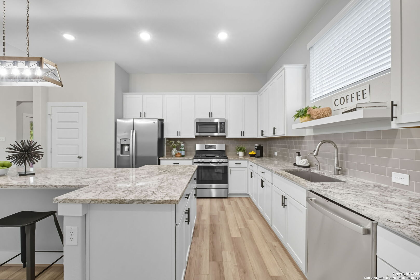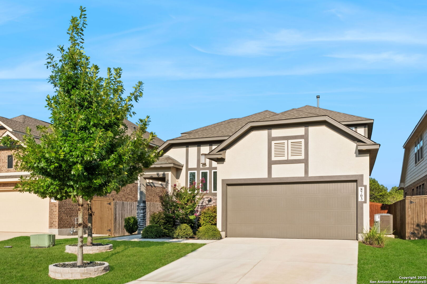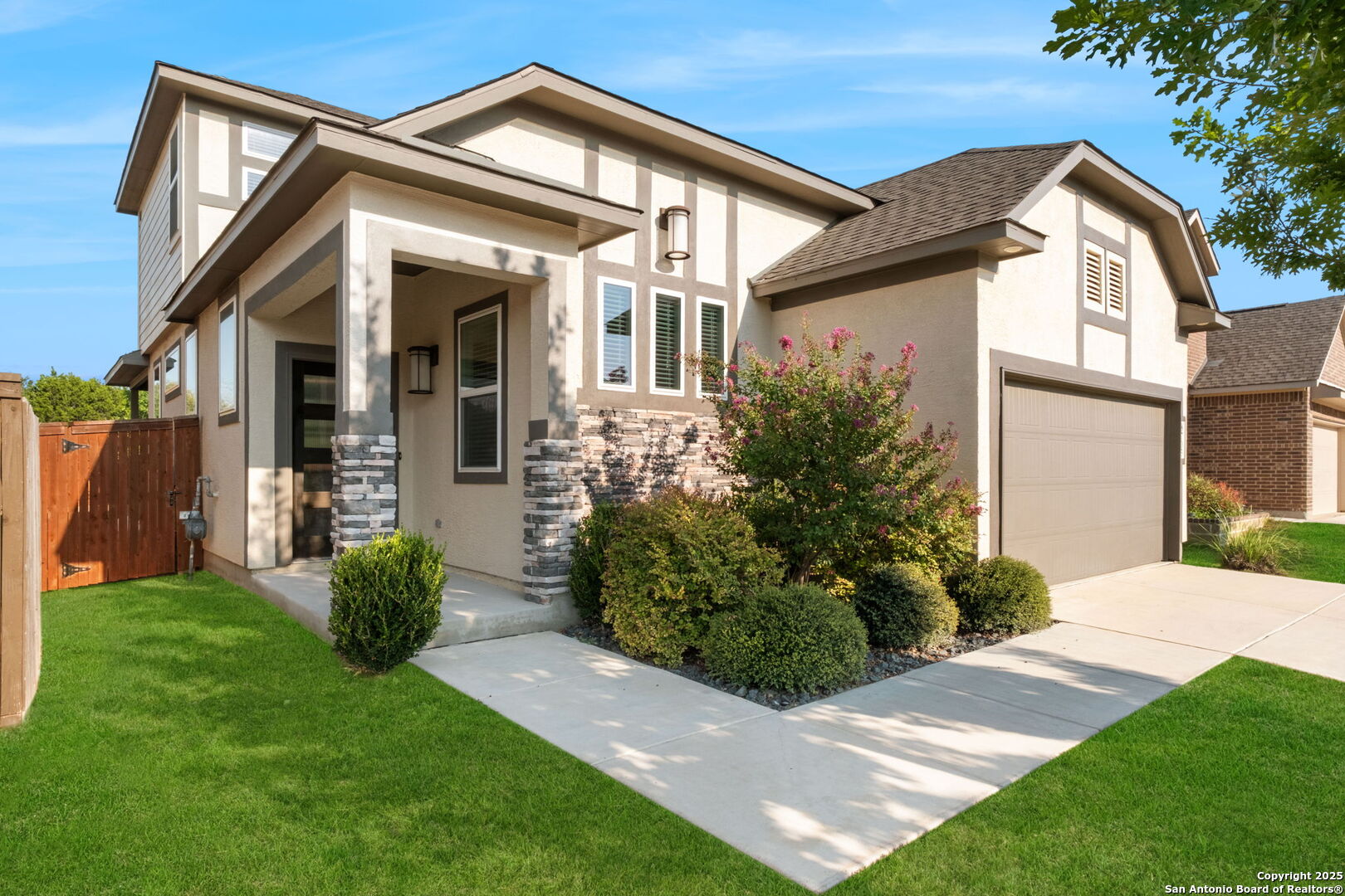 **OPEN HOUSE, SAT. 9/27, 1PM-3PM** Welcome to this stunning Chesmar home in the prestigious Stillwater Ranch neighborhood! This beautiful 4-bedroom, 2.5-bathroom + game room, 4th bedroom/bonus room can be a 4th bedroom or office offers 2,472 square feet of thoughtfully designed living space on a quiet cul-de-sac lot backing to peaceful greenbelt views. The heart of this home is the oversized gourmet kitchen featuring an over-sized island, 5-burner gas cooking, and premium GE stainless steel appliances that convey with the home. Large windows throughout flood the space with natural light, creating a bright and welcoming atmosphere. The convenient primary bedroom downstairs provides easy accessibility, while secondary bedrooms upstairs offer privacy and space. An oversized gameroom gives families room to spread out and relax. Step outside to discover your private backyard oasis with an extended covered patio - perfect for entertaining while enjoying beautiful greenbelt views. Quality touches abound with smart features, programmable thermostat, radiant barrier for energy efficiency, water softener, and full irrigation system. The home includes LG stainless steel washer and dryer, plus has been meticulously maintained with a newly stained privacy fence. Lush front landscaping enhances the impressive curb appeal. Location couldn't be better in this premier neighborhood. You're centrally positioned near excellent Northside Independent School District schools, with Sonia Sotomayor High School nearby. Stillwater Ranch Community Park offers recreation close to home, while convenient shopping and dining options are just minutes away. This well-built home combines comfort, style, and an unbeatable location and price- making it the perfect place to make this your home in one of San Antonio's most desirable communities. **ZERO DOWN USDA LOAN OPTION**