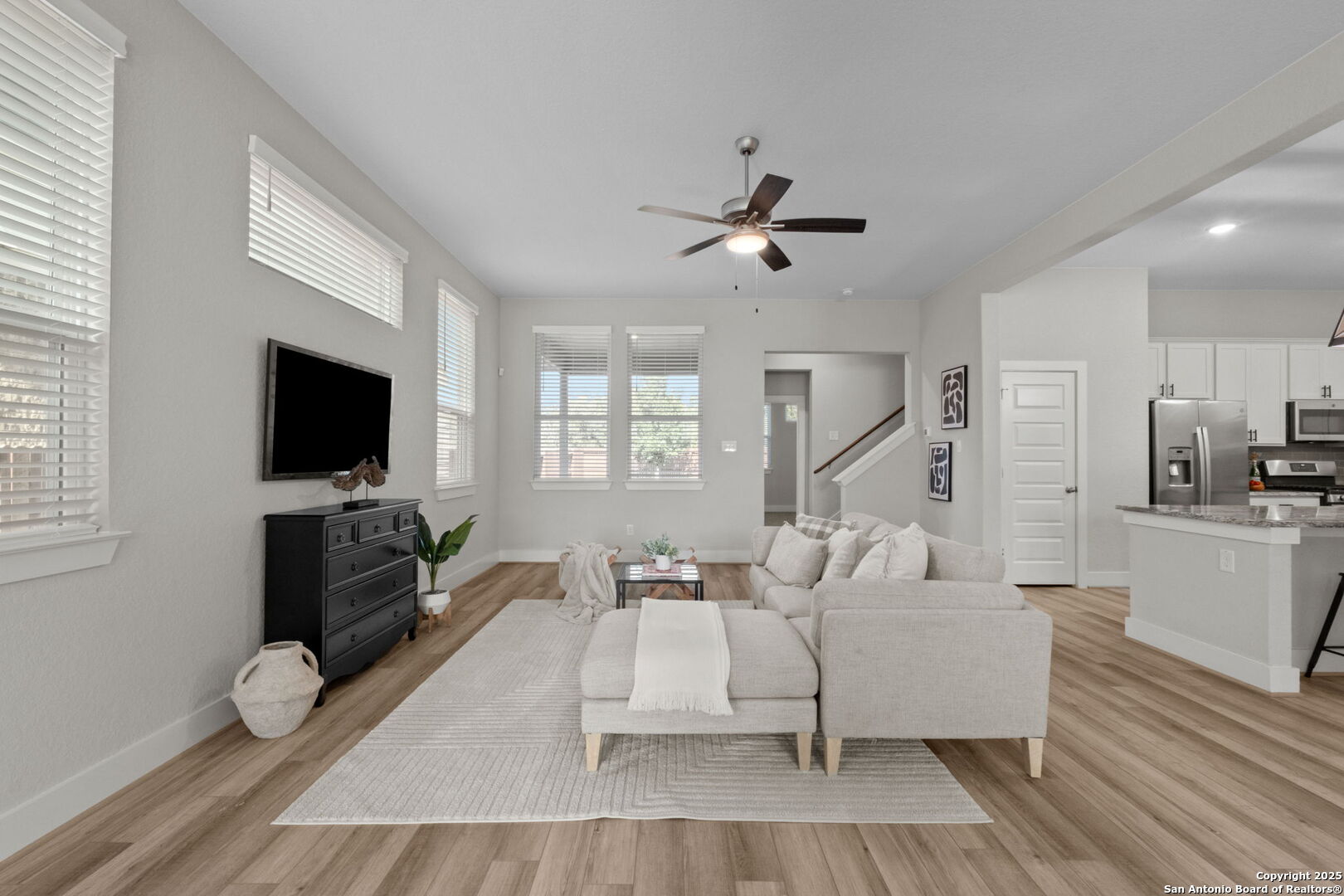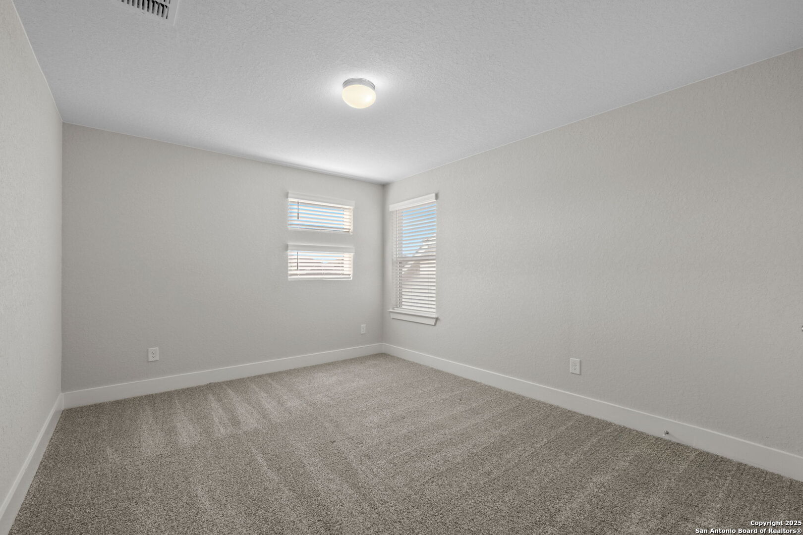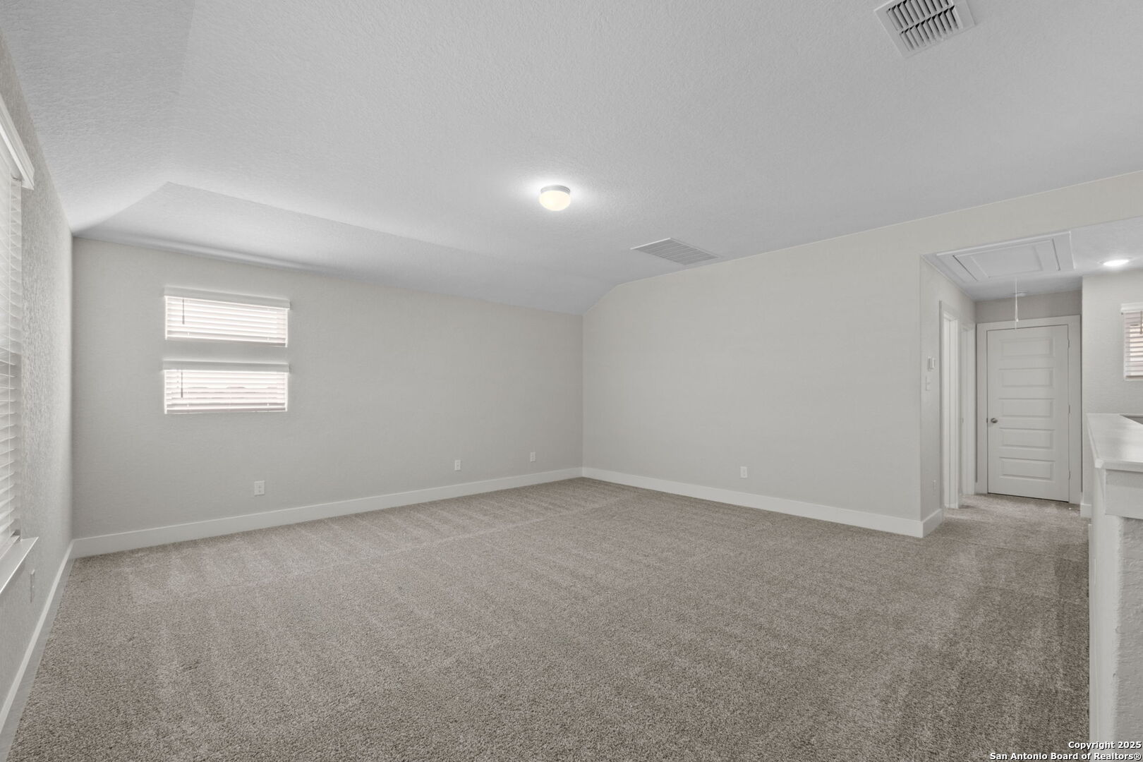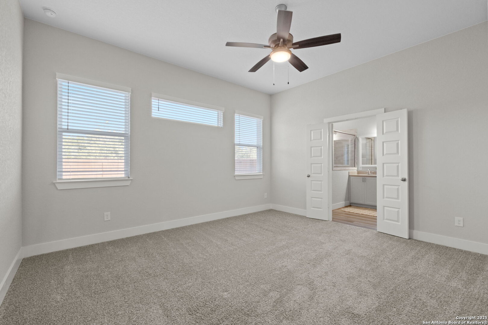 **OPEN HOUSE, SAT. 9/27, 1PM-3PM** Welcome to this stunning Chesmar home in the prestigious Stillwater Ranch neighborhood! This beautiful 4-bedroom, 2.5-bathroom + game room, 4th bedroom/bonus room can be a 4th bedroom or office offers 2,472 square feet of thoughtfully designed living space on a quiet cul-de-sac lot backing to peaceful greenbelt views. The heart of this home is the oversized gourmet kitchen featuring an over-sized island, 5-burner gas cooking, and premium GE stainless steel appliances that convey with the home. Large windows throughout flood the space with natural light, creating a bright and welcoming atmosphere. The convenient primary bedroom downstairs provides easy accessibility, while secondary bedrooms upstairs offer privacy and space. An oversized gameroom gives families room to spread out and relax. Step outside to discover your private backyard oasis with an extended covered patio - perfect for entertaining while enjoying beautiful greenbelt views. Quality touches abound with smart features, programmable thermostat, radiant barrier for energy efficiency, water softener, and full irrigation system. The home includes LG stainless steel washer and dryer, plus has been meticulously maintained with a newly stained privacy fence. Lush front landscaping enhances the impressive curb appeal. Location couldn't be better in this premier neighborhood. You're centrally positioned near excellent Northside Independent School District schools, with Sonia Sotomayor High School nearby. Stillwater Ranch Community Park offers recreation close to home, while convenient shopping and dining options are just minutes away. This well-built home combines comfort, style, and an unbeatable location and price- making it the perfect place to make this your home in one of San Antonio's most desirable communities. **ZERO DOWN USDA LOAN OPTION**