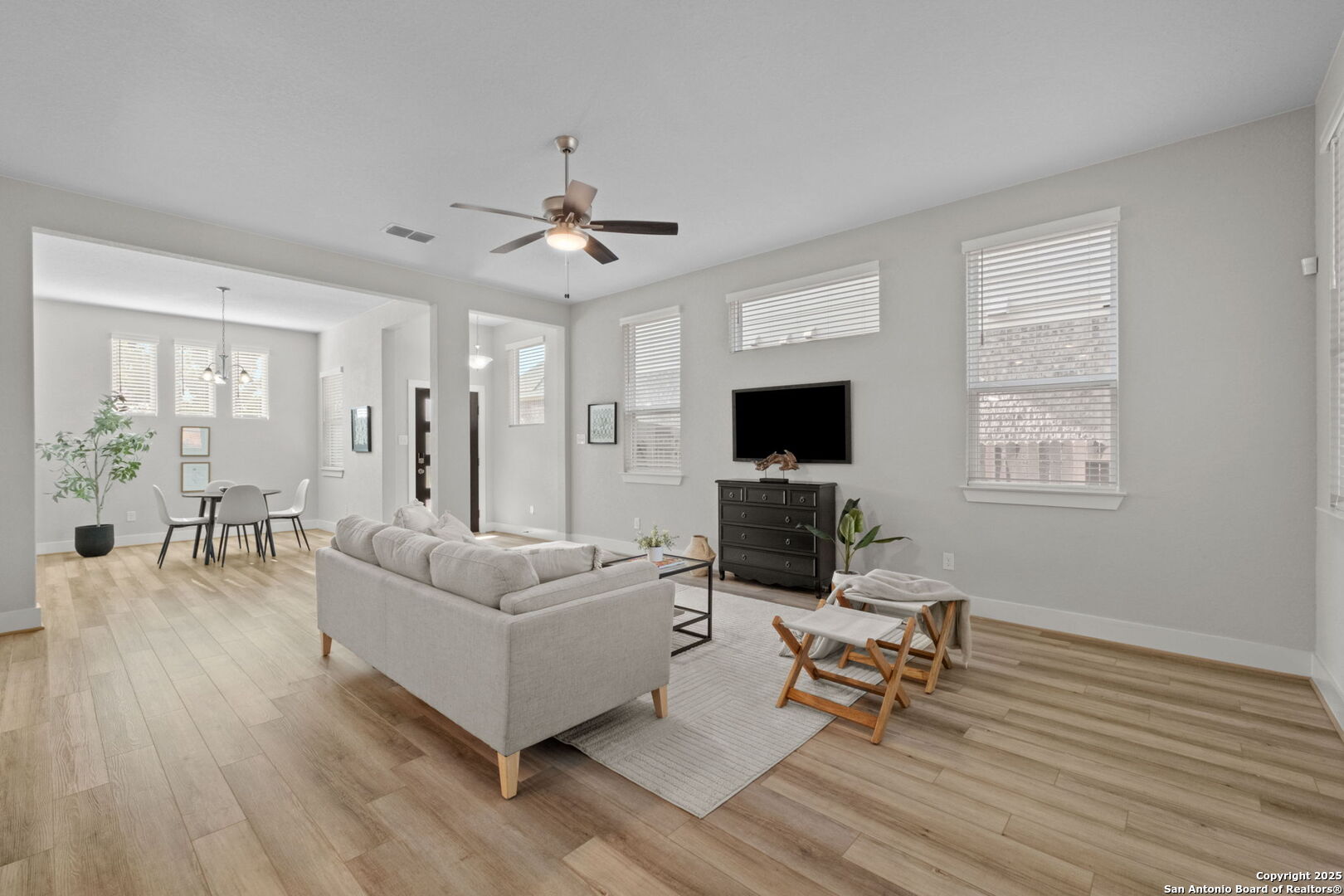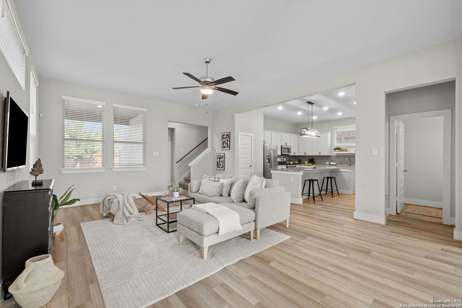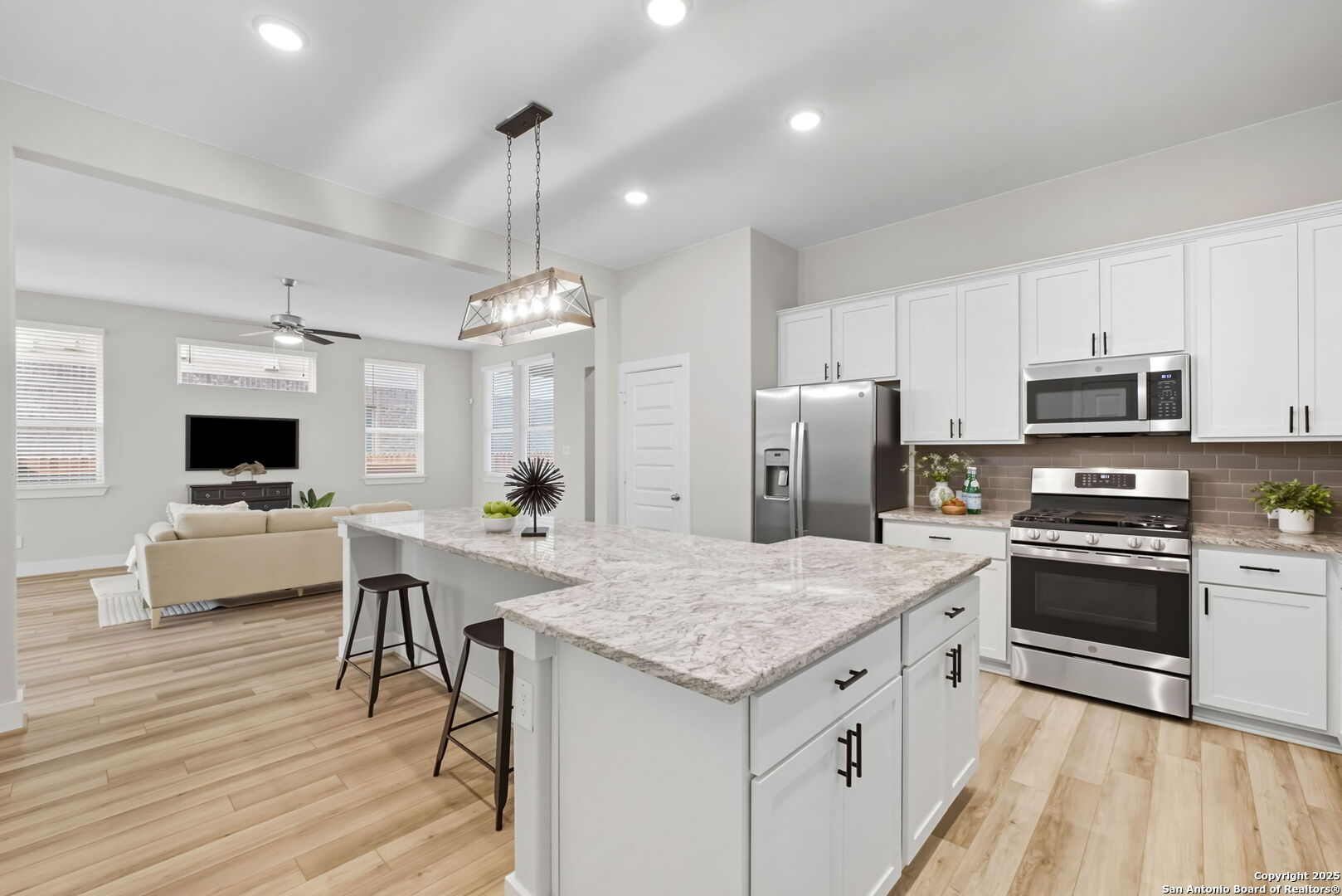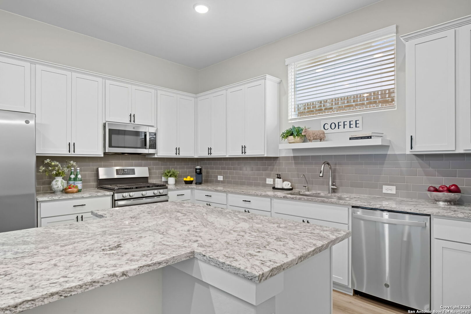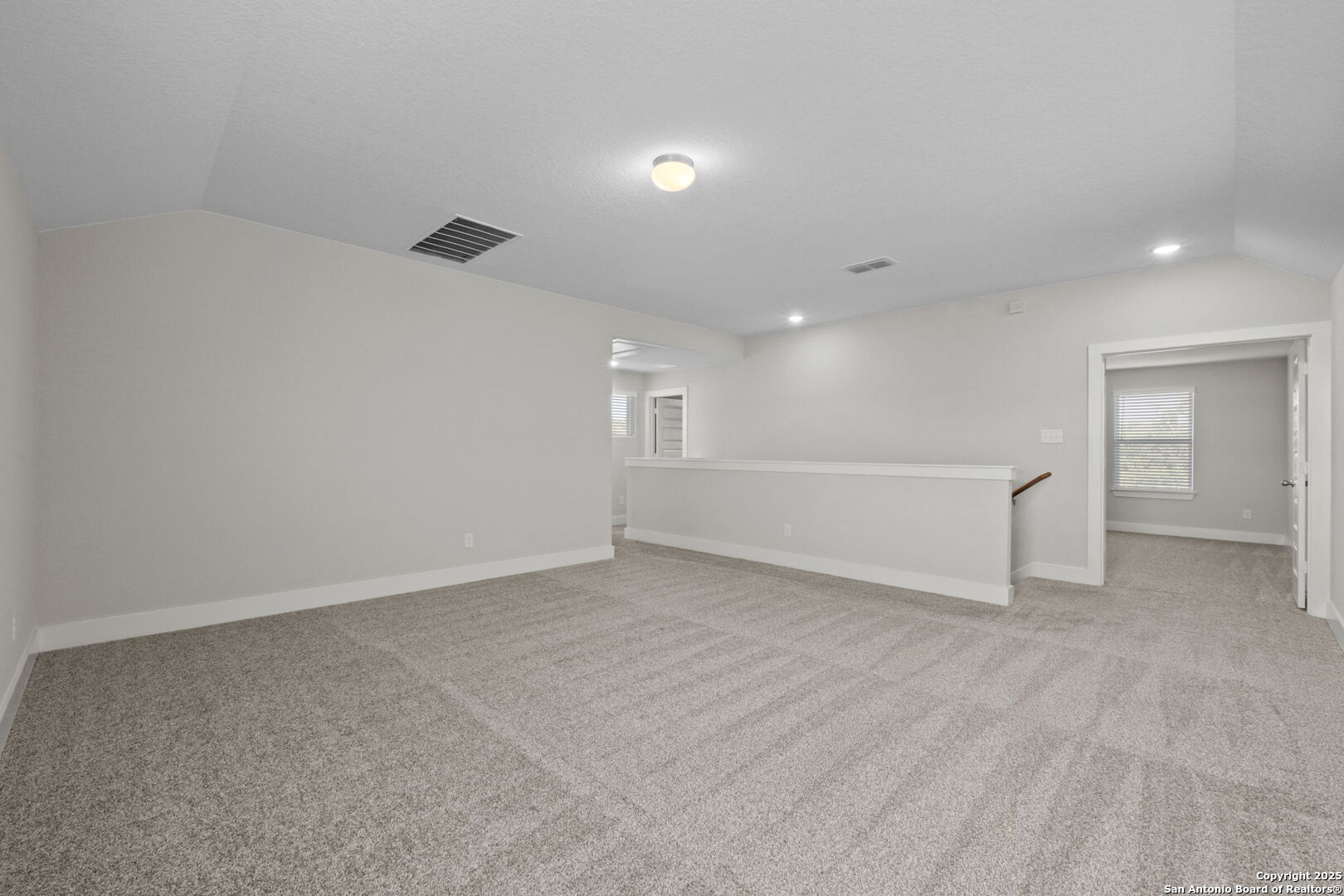 **OPEN HOUSE, SAT. 9/27, 1PM-3PM** Welcome to this stunning Chesmar home in the prestigious Stillwater Ranch neighborhood! This beautiful 4-bedroom, 2.5-bathroom + game room, 4th bedroom/bonus room can be a 4th bedroom or office offers 2,472 square feet of thoughtfully designed living space on a quiet cul-de-sac lot backing to peaceful greenbelt views. The heart of this home is the oversized gourmet kitchen featuring an over-sized island, 5-burner gas cooking, and premium GE stainless steel appliances that convey with the home. Large windows throughout flood the space with natural light, creating a bright and welcoming atmosphere. The convenient primary bedroom downstairs provides easy accessibility, while secondary bedrooms upstairs offer privacy and space. An oversized gameroom gives families room to spread out and relax. Step outside to discover your private backyard oasis with an extended covered patio - perfect for entertaining while enjoying beautiful greenbelt views. Quality touches abound with smart features, programmable thermostat, radiant barrier for energy efficiency, water softener, and full irrigation system. The home includes LG stainless steel washer and dryer, plus has been meticulously maintained with a newly stained privacy fence. Lush front landscaping enhances the impressive curb appeal. Location couldn't be better in this premier neighborhood. You're centrally positioned near excellent Northside Independent School District schools, with Sonia Sotomayor High School nearby. Stillwater Ranch Community Park offers recreation close to home, while convenient shopping and dining options are just minutes away. This well-built home combines comfort, style, and an unbeatable location and price- making it the perfect place to make this your home in one of San Antonio's most desirable communities. **ZERO DOWN USDA LOAN OPTION**