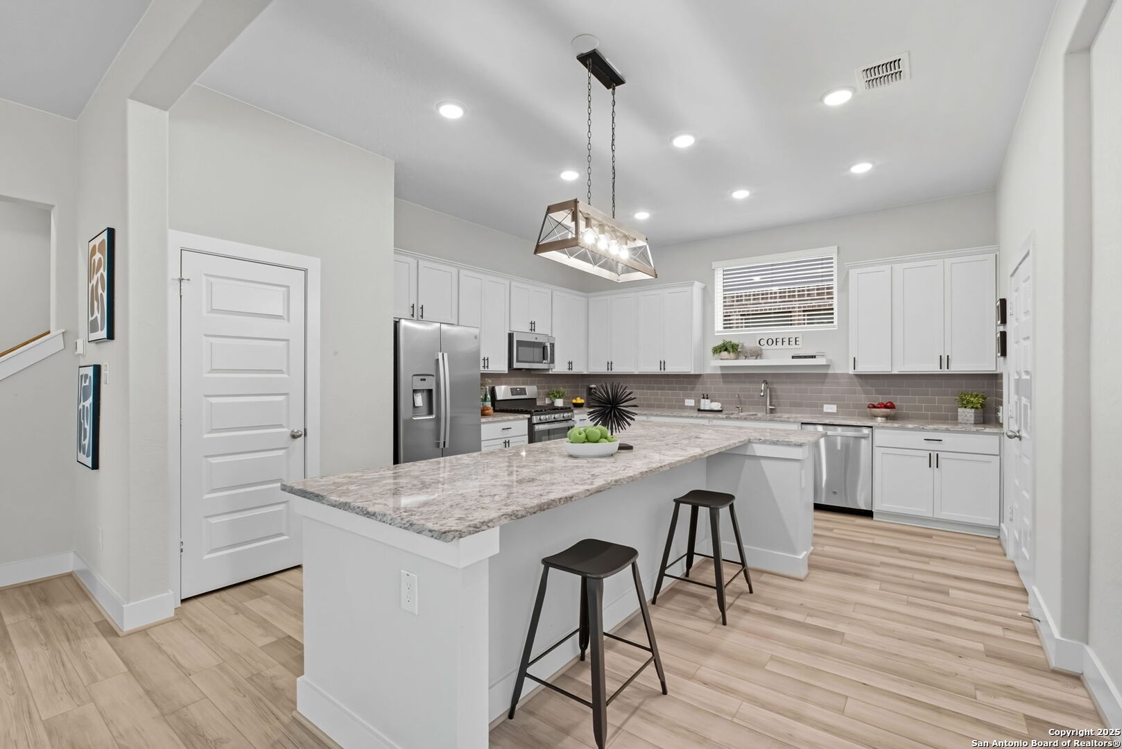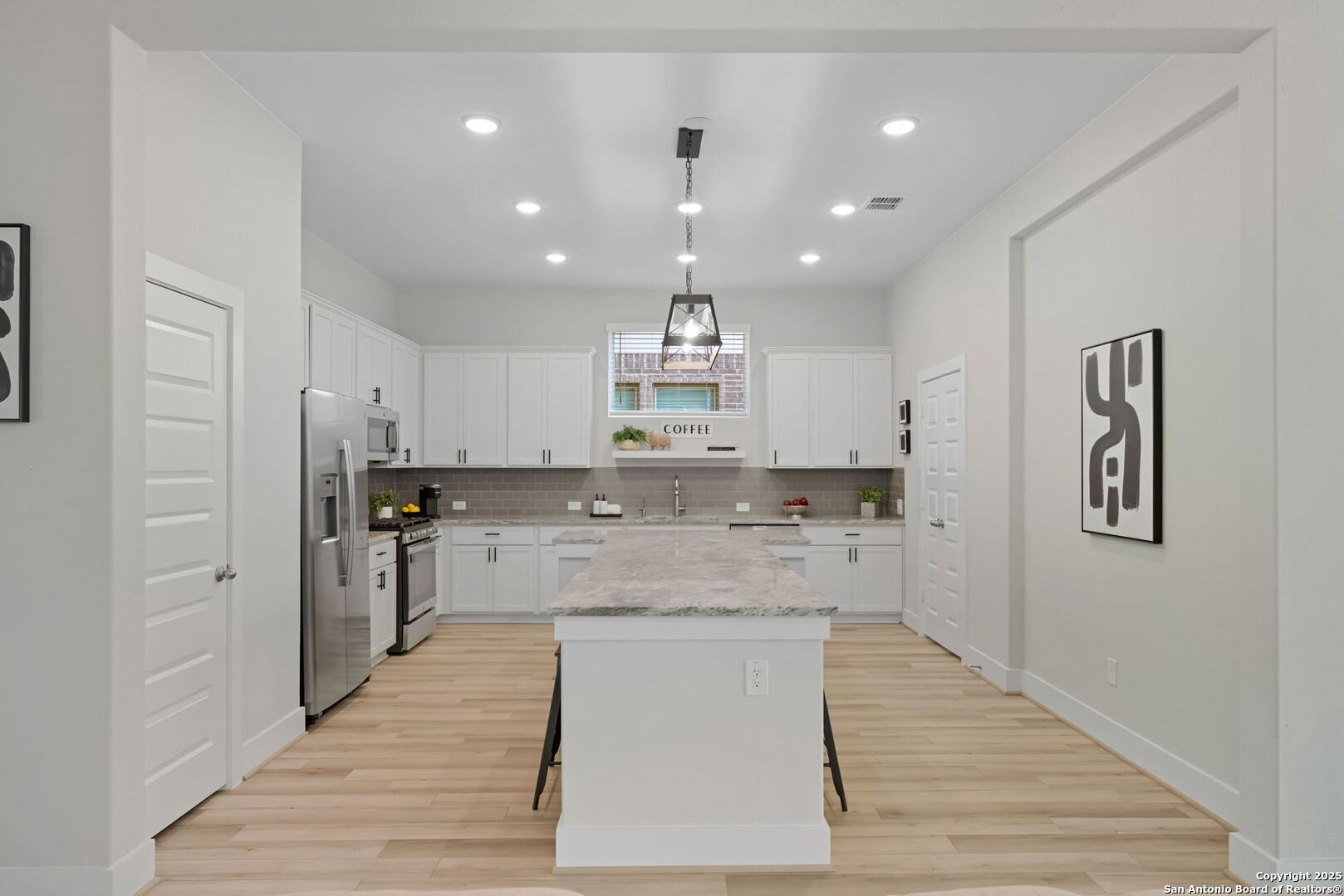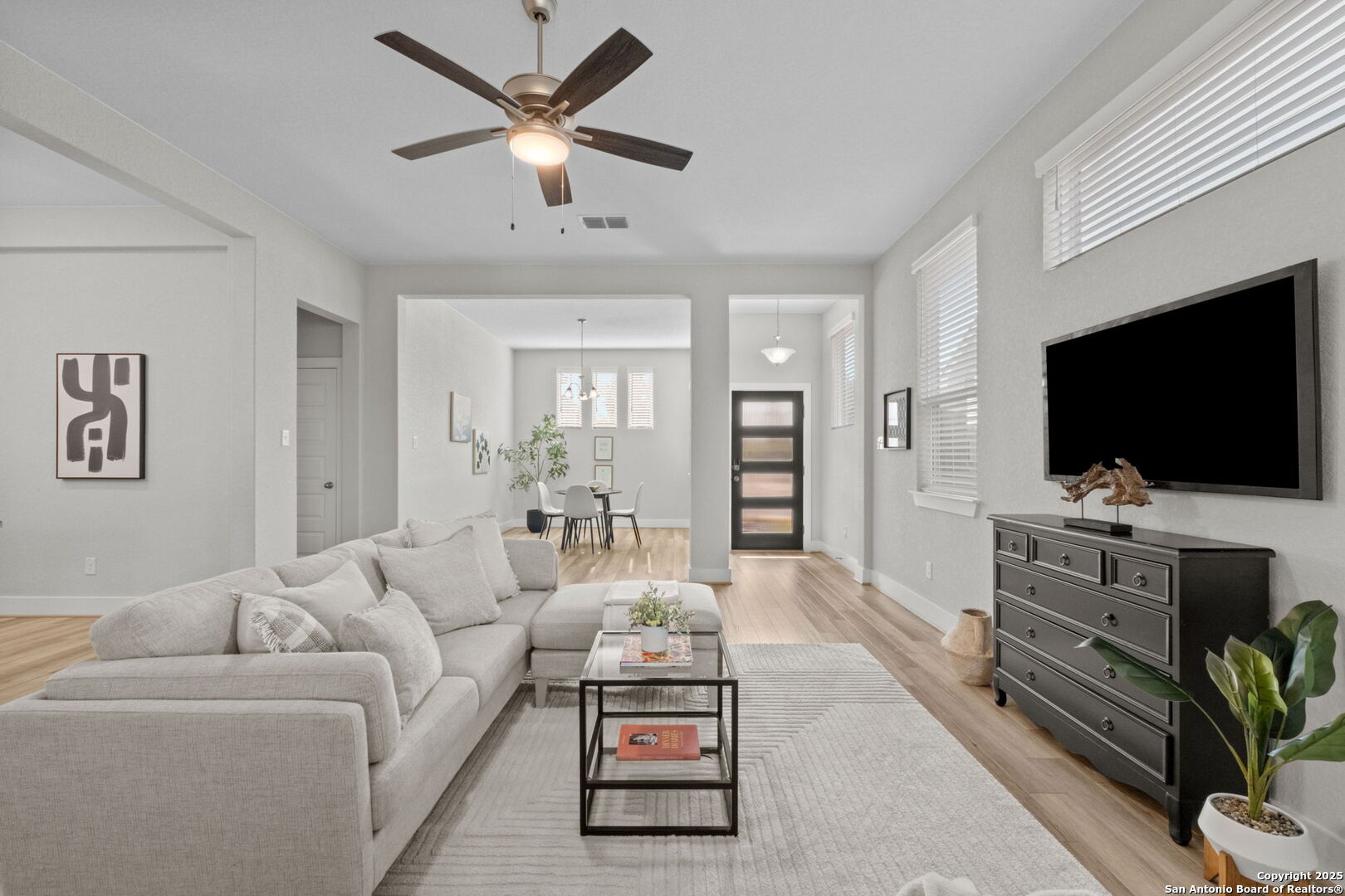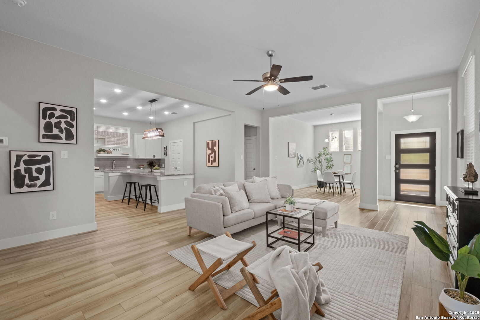 **OPEN HOUSE, SAT. 9/27, 1PM-3PM** Welcome to this stunning Chesmar home in the prestigious Stillwater Ranch neighborhood! This beautiful 4-bedroom, 2.5-bathroom + game room, 4th bedroom/bonus room can be a 4th bedroom or office offers 2,472 square feet of thoughtfully designed living space on a quiet cul-de-sac lot backing to peaceful greenbelt views. The heart of this home is the oversized gourmet kitchen featuring an over-sized island, 5-burner gas cooking, and premium GE stainless steel appliances that convey with the home. Large windows throughout flood the space with natural light, creating a bright and welcoming atmosphere. The convenient primary bedroom downstairs provides easy accessibility, while secondary bedrooms upstairs offer privacy and space. An oversized gameroom gives families room to spread out and relax. Step outside to discover your private backyard oasis with an extended covered patio - perfect for entertaining while enjoying beautiful greenbelt views. Quality touches abound with smart features, programmable thermostat, radiant barrier for energy efficiency, water softener, and full irrigation system. The home includes LG stainless steel washer and dryer, plus has been meticulously maintained with a newly stained privacy fence. Lush front landscaping enhances the impressive curb appeal. Location couldn't be better in this premier neighborhood. You're centrally positioned near excellent Northside Independent School District schools, with Sonia Sotomayor High School nearby. Stillwater Ranch Community Park offers recreation close to home, while convenient shopping and dining options are just minutes away. This well-built home combines comfort, style, and an unbeatable location and price- making it the perfect place to make this your home in one of San Antonio's most desirable communities. **ZERO DOWN USDA LOAN OPTION**