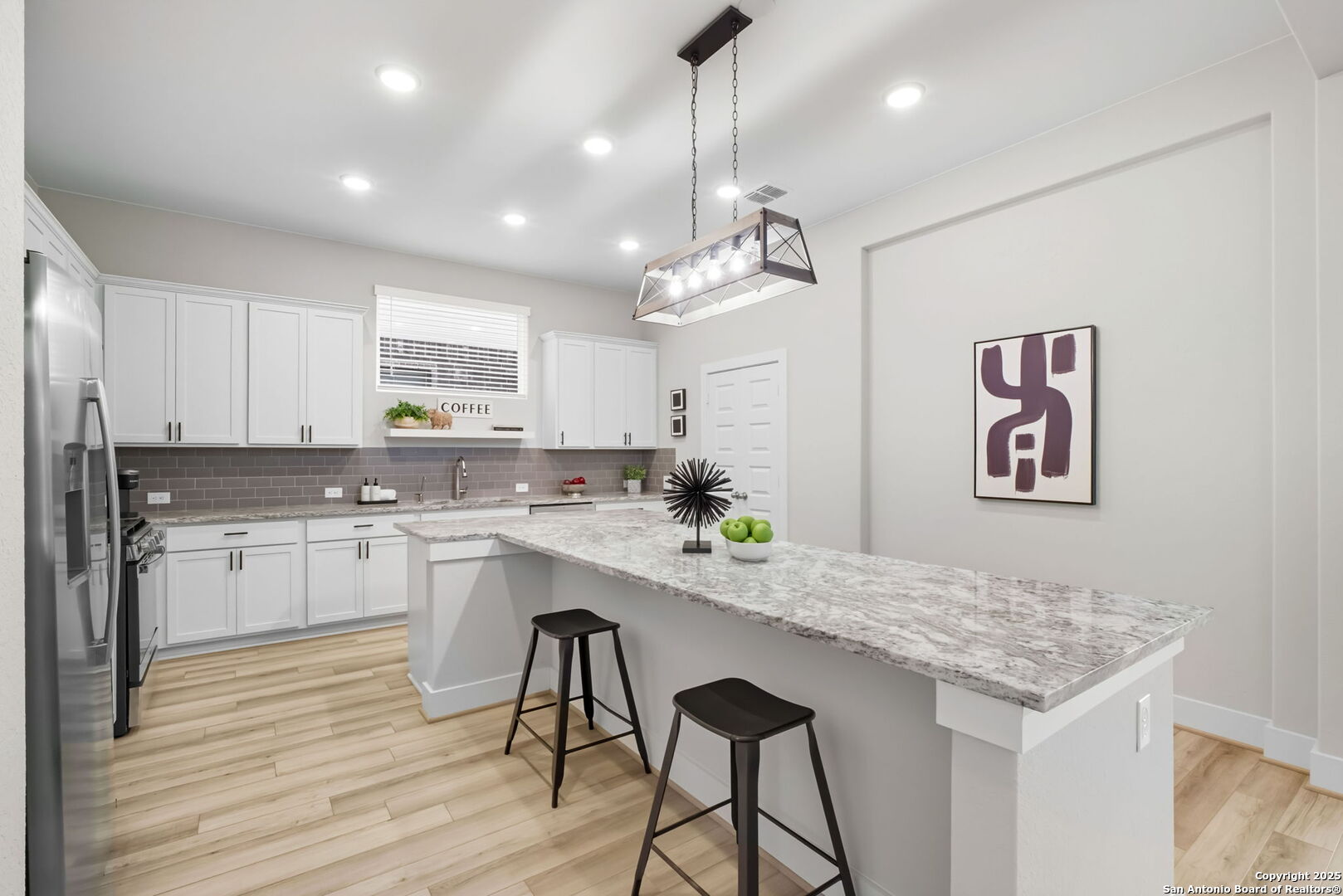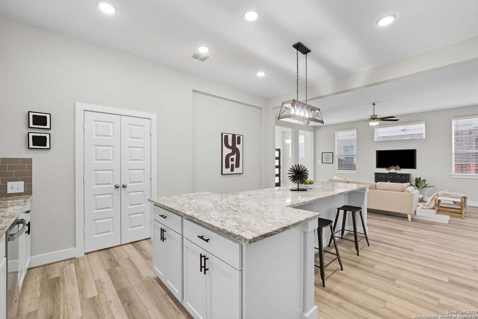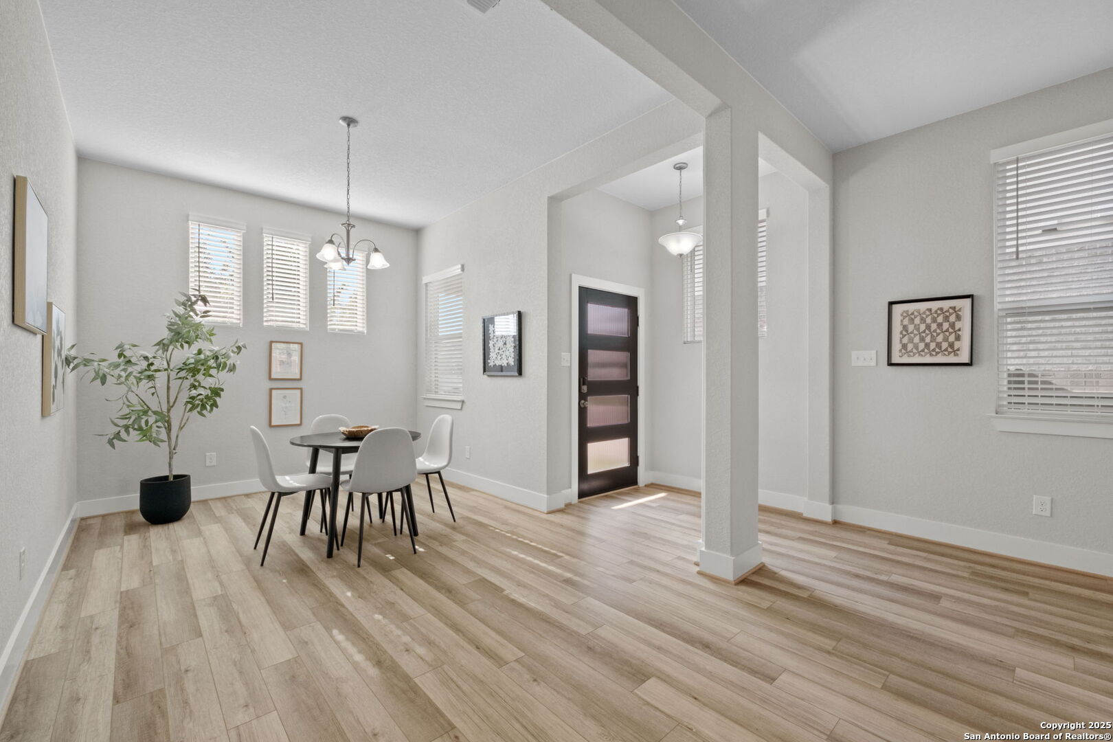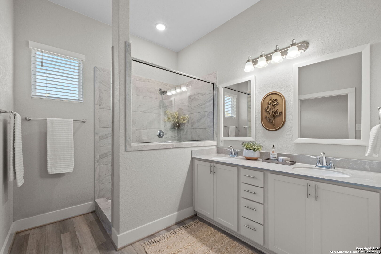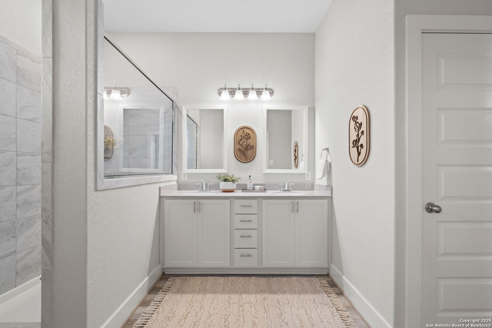 **OPEN HOUSE, SAT. 9/27, 1PM-3PM** Welcome to this stunning Chesmar home in the prestigious Stillwater Ranch neighborhood! This beautiful 4-bedroom, 2.5-bathroom + game room, 4th bedroom/bonus room can be a 4th bedroom or office offers 2,472 square feet of thoughtfully designed living space on a quiet cul-de-sac lot backing to peaceful greenbelt views. The heart of this home is the oversized gourmet kitchen featuring an over-sized island, 5-burner gas cooking, and premium GE stainless steel appliances that convey with the home. Large windows throughout flood the space with natural light, creating a bright and welcoming atmosphere. The convenient primary bedroom downstairs provides easy accessibility, while secondary bedrooms upstairs offer privacy and space. An oversized gameroom gives families room to spread out and relax. Step outside to discover your private backyard oasis with an extended covered patio - perfect for entertaining while enjoying beautiful greenbelt views. Quality touches abound with smart features, programmable thermostat, radiant barrier for energy efficiency, water softener, and full irrigation system. The home includes LG stainless steel washer and dryer, plus has been meticulously maintained with a newly stained privacy fence. Lush front landscaping enhances the impressive curb appeal. Location couldn't be better in this premier neighborhood. You're centrally positioned near excellent Northside Independent School District schools, with Sonia Sotomayor High School nearby. Stillwater Ranch Community Park offers recreation close to home, while convenient shopping and dining options are just minutes away. This well-built home combines comfort, style, and an unbeatable location and price- making it the perfect place to make this your home in one of San Antonio's most desirable communities. **ZERO DOWN USDA LOAN OPTION**