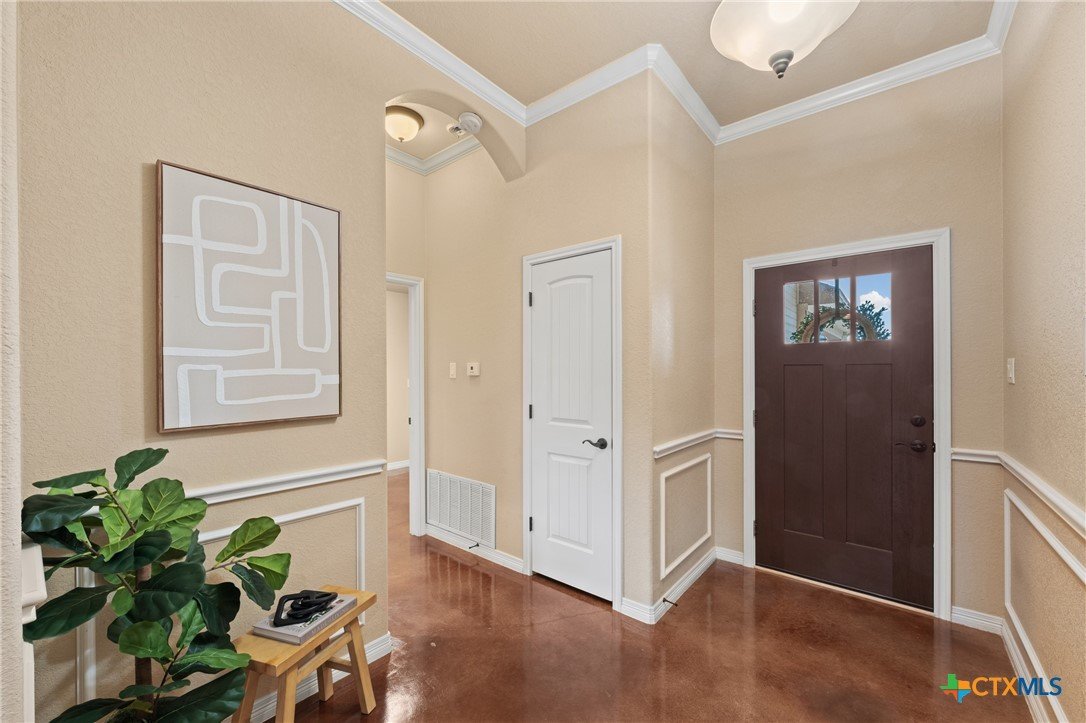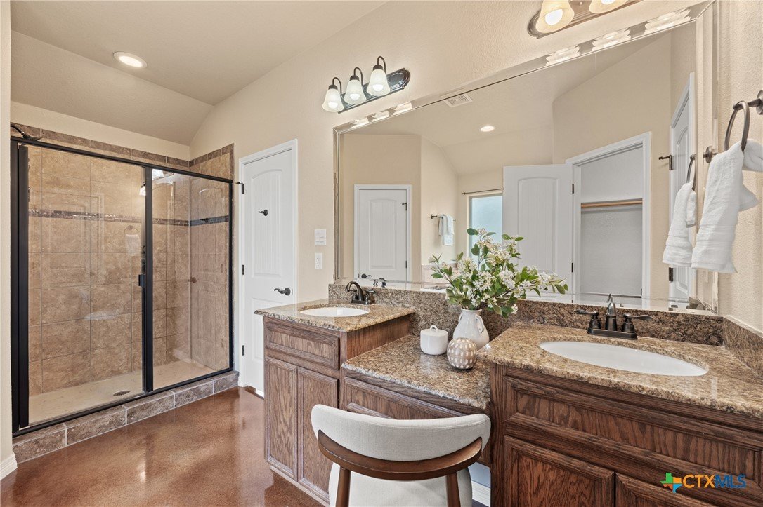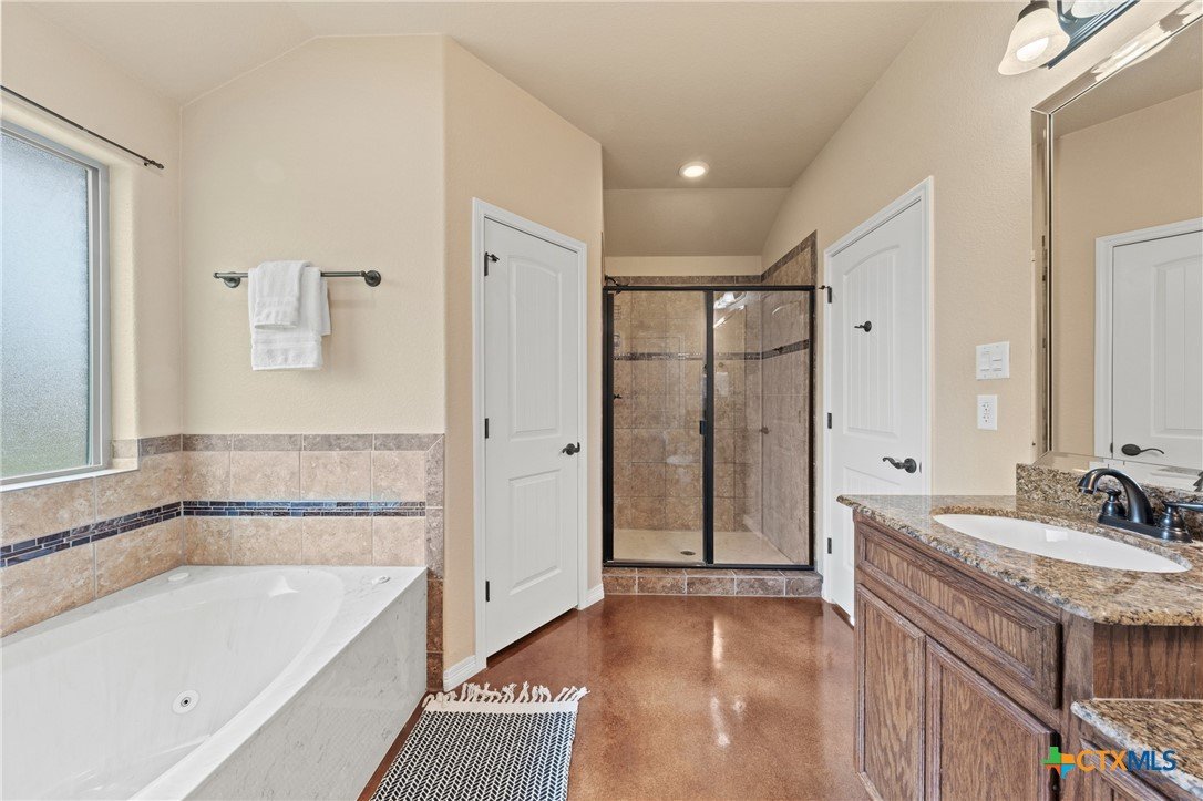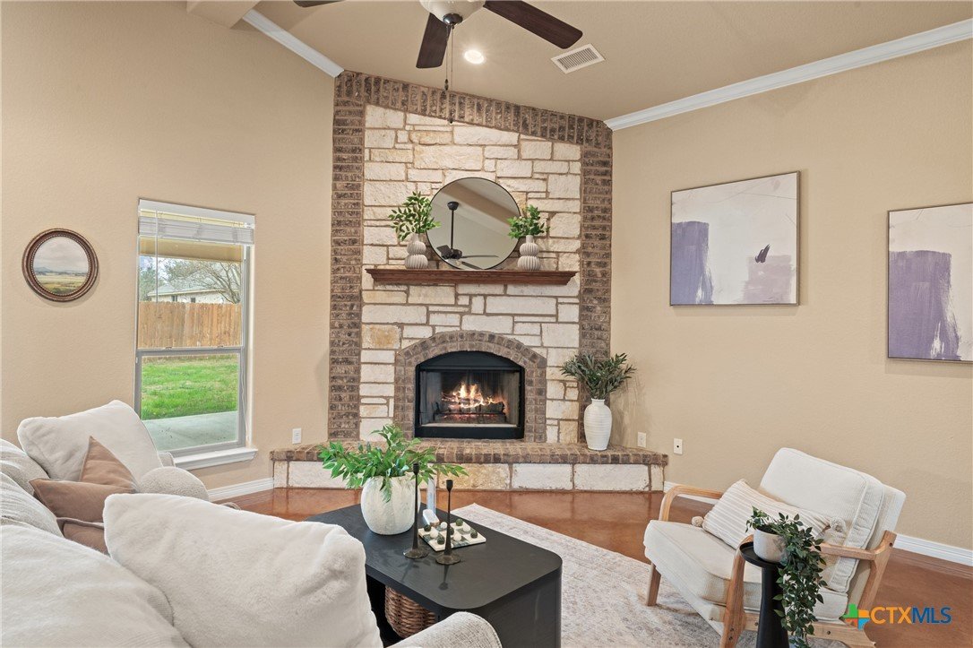 500 Gallon Propane with a 24 kw Generac generator!!! Check out this beautiful four bedroom, two bath brick and natural stone traditional home nestled in a cul-de-sac in the desirable Carriage House Village community and located in sought after Belton ISD. This inviting home welcomes you with a grand foyer, elegant arches, and a stately wood-burning fireplace featuring a dramatic floor-to-ceiling stone surround. The open concept layout offers high ceilings and an abundance of windows, creating a bright and airy atmosphere throughout. Stained concrete flooring throughout provides both style and easy maintenance. The modern kitchen features stainless steel appliances, island, granite countertops, breakfast bar, and a spacious walk-in pantry. The adjacent dining area overlooks the private backyard, perfect for everyday living and entertaining. The magnificent primary suite is a true retreat, boasting a spa like en suite bath with double granite vanity, jetted garden tub, large walk-in shower, and an impressive three walk-in closets. Three additional guest bedrooms with two full bathrooms provide ample space for family and visitors. The secondary bathroom has been converted to fully accommodate someone using a wheelchair (documents on file) along with a full bidet and reflects an accessibility upgrade valued at approximately $20,000 at time of installation. For peace of mind, the home has a 500-gallon propane tank with 24 kw Generac generator that is able to power the entire home! The new roof is Owens Corning Dimensional shingles. Residents of Carriage House Village enjoy access to a community park with playground and a refreshing swimming pool which is ideal for enjoying hot Texas summer days. This home won’t last long so schedule your private showing today!
