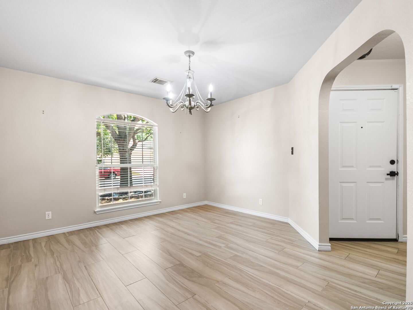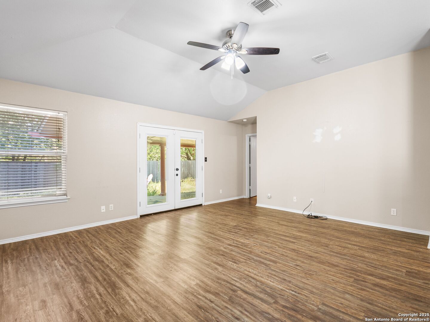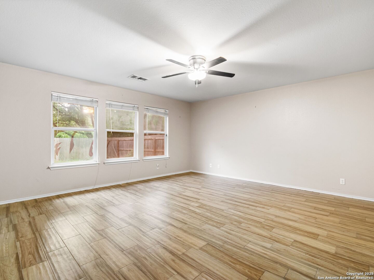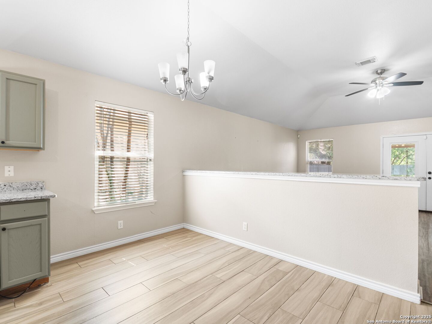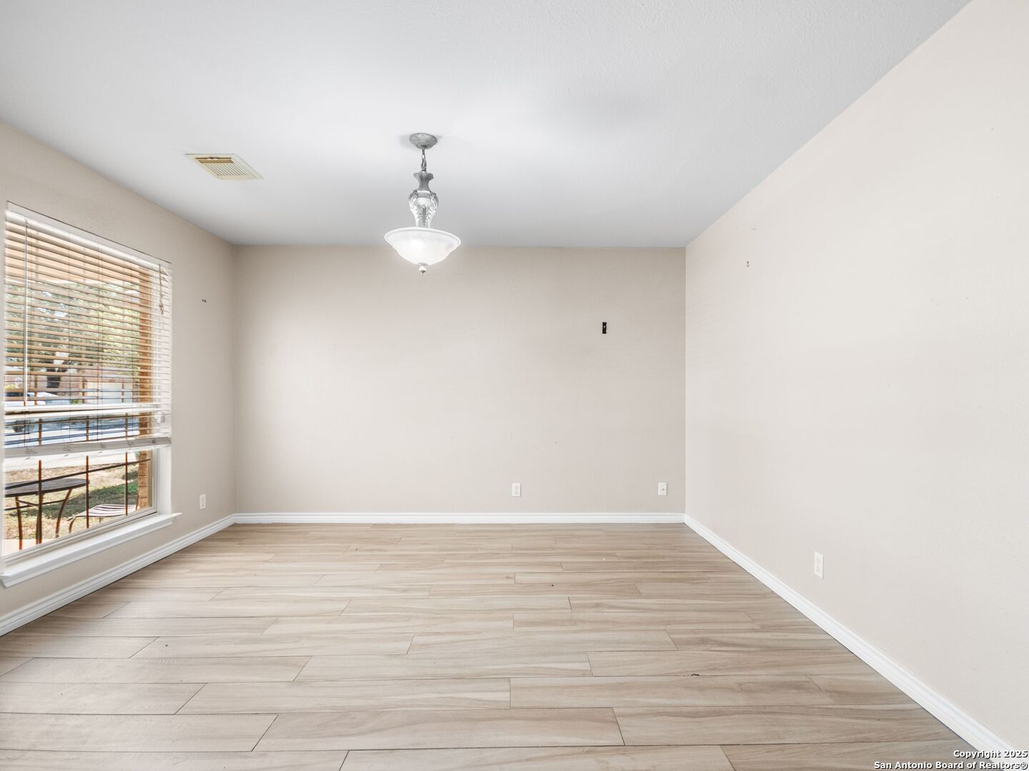 Discover this beautifully updated 3-bedroom, 2-bath, single-story home at 8711 Dumaine in San Antonio, featuring an open floor plan with high ceilings, two living areas, a versatile dining/office space, and a modern kitchen with granite countertops, island, walk-in pantry, and newer appliances. The spacious master suite offers a walk-in closet and a luxurious bath with a garden tub and a separate shower. Enjoy tile and laminate flooring throughout main areas, a covered front porch, oversized covered back patio, fenced backyard backing to a greenbelt, double-car garage, newer roof, and energy-efficient solar panels - all in a great location near shopping, dining, and top-rated schools!