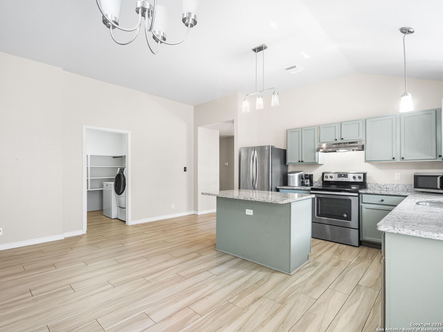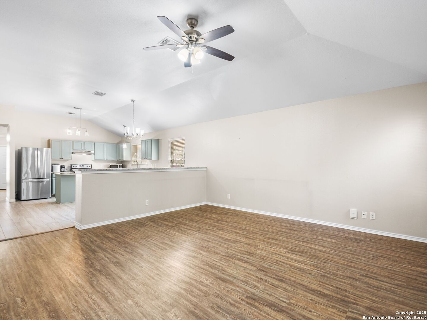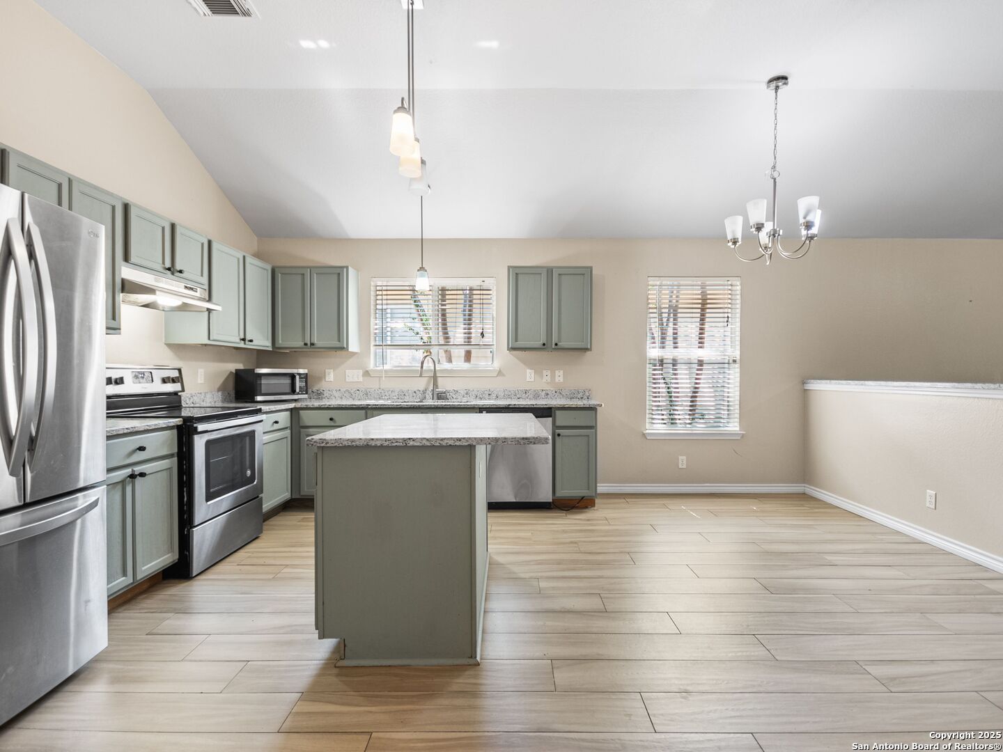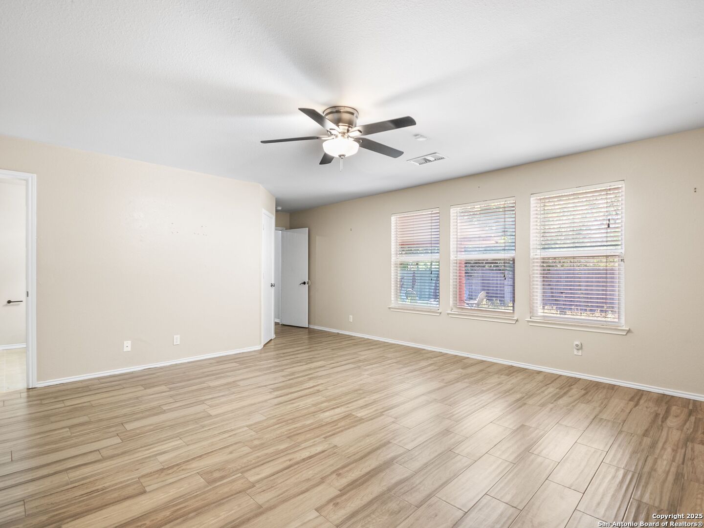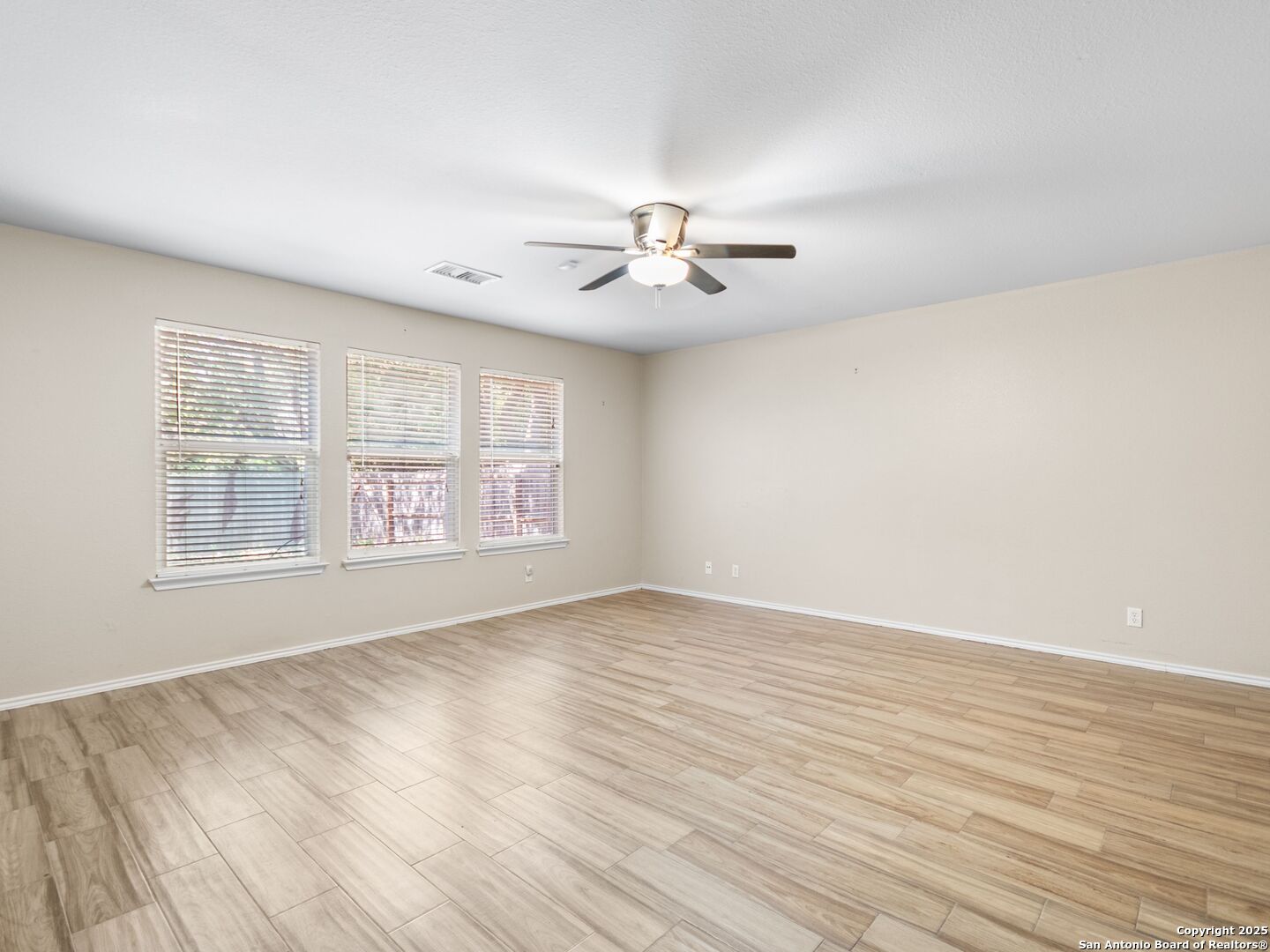 Discover this beautifully updated 3-bedroom, 2-bath, single-story home at 8711 Dumaine in San Antonio, featuring an open floor plan with high ceilings, two living areas, a versatile dining/office space, and a modern kitchen with granite countertops, island, walk-in pantry, and newer appliances. The spacious master suite offers a walk-in closet and a luxurious bath with a garden tub and a separate shower. Enjoy tile and laminate flooring throughout main areas, a covered front porch, oversized covered back patio, fenced backyard backing to a greenbelt, double-car garage, newer roof, and energy-efficient solar panels - all in a great location near shopping, dining, and top-rated schools!