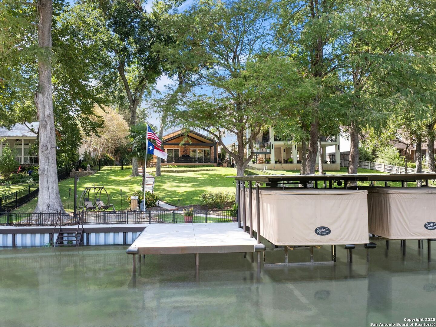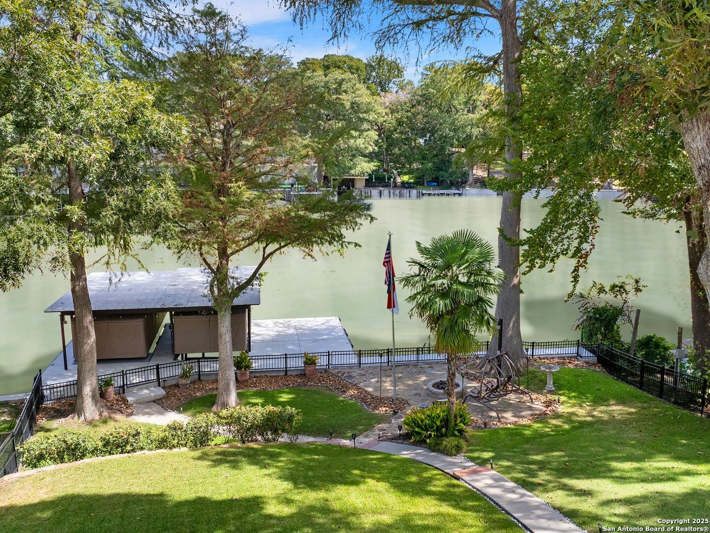 Welcome to a luxurious Lake McQueeney retreat, where timeless elegance meets relaxed waterfront living. Nestled behind a fully fenced perimeter with an electronic gate, this thoughtfully designed home offers both beauty and functionality. Enjoy 83 feet of pristine Lake McQueeney frontage, a Dual-lift cover boat-shed , private dock, firepit, cozy tandem swing, and elegant outdoor lighting that sets a serene evening ambiance. Inside, panoramic lake views fill the home with natural light. A fireplace anchors the living room, while the kitchen features upgraded granite countertops , expansive kitchen / dinning space and bar seating. The primary suite offers a peaceful lounge area sitting area, grand walk-in closet, and dual vanity spa bath. This luxurious retreat is accompanied with solar panels, CCTV smart security systems and an oversized garage with half bath. this property blends comfort, sophistication, and lakeside tranquility. Lake McQueeney Dam Update: Per the August 21, 2025 Lake McQueeney WCID meeting, the spillgate replacement and dam armoring project remains on schedule for substantial completion by January 13, 2026.