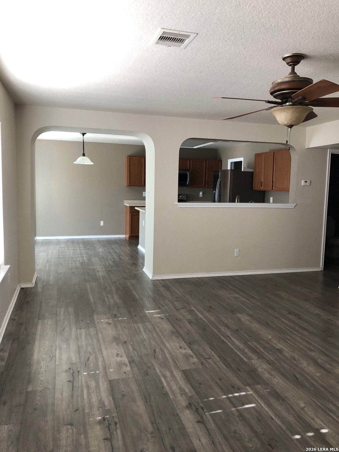 Open Concept Home Features Two Spacious Living Areas, Breakfast Area, Stainless Steel Appliances. Downstairs with Laminate Flooring. Upper area fully Carpeting. Home also features a Spacious Loft, could be used as a Game Room or an Office Area. Master Suite comes with a Garden Tub, separate Shower and Spacious Walk in closet. Second Bedroom comes with 2 walk in closets. Relax and enjoy the large Fenced Backyard. Water softener included in home. Two Car Garage.