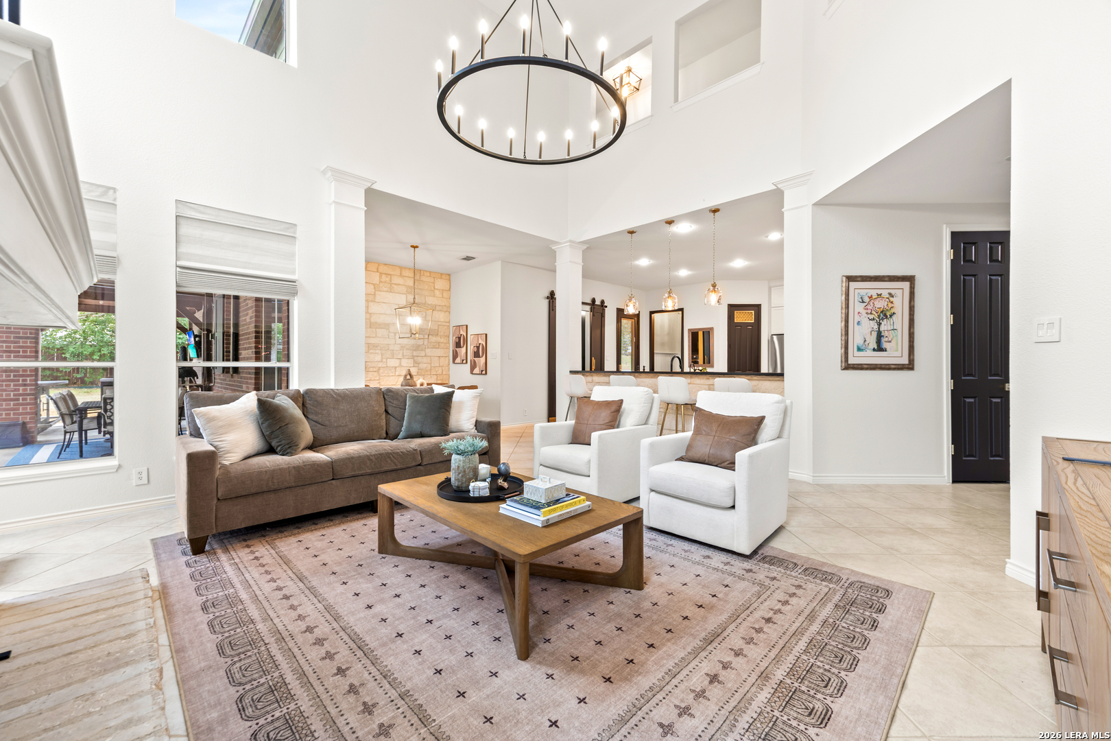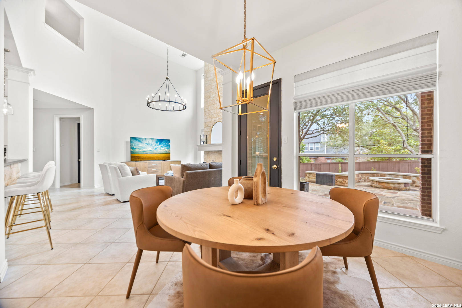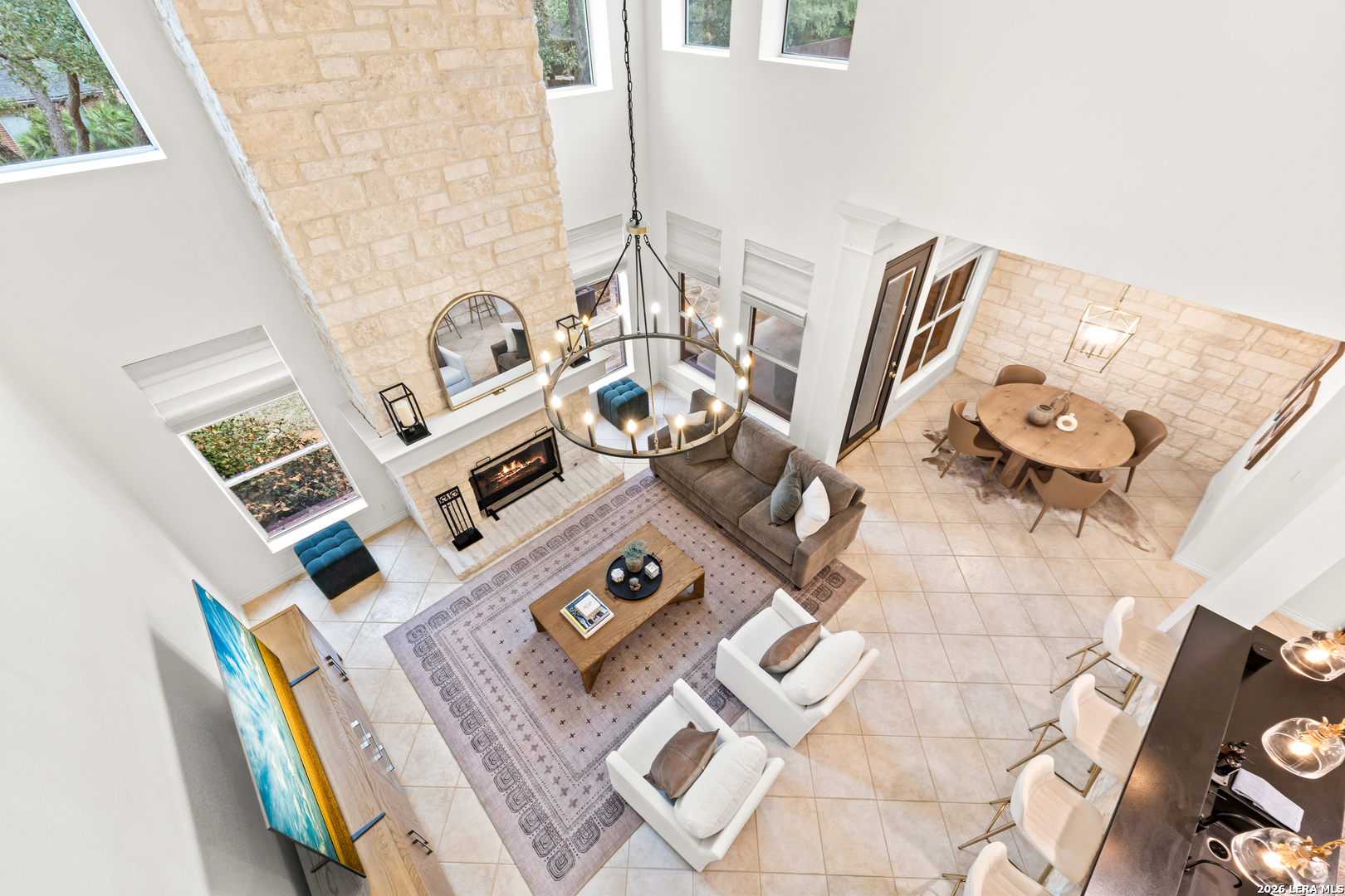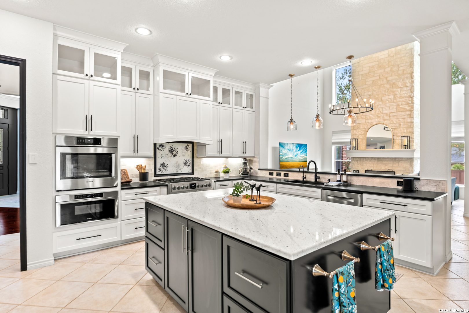 Nestled within the prestigious and tranquil community of The Woods at Fair Oaks Ranch, this impeccably maintained and thoughtfully updated residence offers a seamless blend of timeless elegance and modern luxury. Surrounded by mature trees and enhanced by classic plantation shutters, the home provides a private, welcoming retreat in one of the Hill Country's most desirable settings. At the heart of the home is a true chef's kitchen, beautifully designed for both everyday living and entertaining. Featuring ceiling-height custom cabinetry, a built-in coffee station with appliance garage, and premium Bosch appliances-including a microwave drawer, wall oven, dishwasher, refrigerator, and disposal-this space is as functional as it is stunning. A 36" six-burner Fulgor Milano range anchors the kitchen, complemented by an expansive granite island with pop-up electrical outlets and oversized storage drawers. Granite countertops and a marble backsplash extend into the butler's pantry, while a Kohler filtration system and walk-in pantry add convenience and thoughtful detail. Adjacent to the kitchen, the eat-in dining area is accented by a striking stone feature wall, creating warmth and architectural interest. Designed for effortless entertaining, the open-concept layout flows seamlessly into the main living areas. The living room showcases a dramatic stone fireplace, serving as a refined focal point. Brazilian cherry wood flooring enriches the study and formal dining area, currently styled as a sophisticated lounge. Additional enhancements include remote-controlled shades, Bali Roman shades, and a walk-in attic offering generous storage. The owner's suite is a serene sanctuary, highlighted by a spa-inspired bath with luxurious marble flooring. Upstairs, three spacious bedrooms, a built-in desk with bookshelves, a game room, and beautifully updated bathrooms provide ample space for work, relaxation, and play. Step outside to a private backyard oasis designed for year-round enjoyment. A brand-new heated pool, expansive covered patio, and newly constructed pergola create the ultimate outdoor entertaining space, complete with a built-in Paradise grill, TV, and refrigerator. Thoughtfully placed landscape lighting illuminates the mature trees and architectural elements, setting a stunning evening ambiance. Additional features include a third garage bay currently utilized as a mini gym and secondary home office (easily convertible back), a water softener, under-stair storage, and a full sprinkler system with drip irrigation for flower beds. A detailed list of recent upgrades-including new AC units, roof replacement, and more-is available in the additional documents. Ideally located in Fair Oaks Ranch, this home offers the best of Hill Country living with convenient access to upscale shopping, dining, and entertainment in Boerne and San Antonio. Residents enjoy scenic landscapes, miles of hiking trails, beautiful parks, top-rated schools, and membership opportunities at the renowned Fair Oaks Ranch Golf & Country Club. This exceptional home offers a rare combination of sophistication, comfort, and extensive modern updates-an extraordinary opportunity that must be experienced in person.