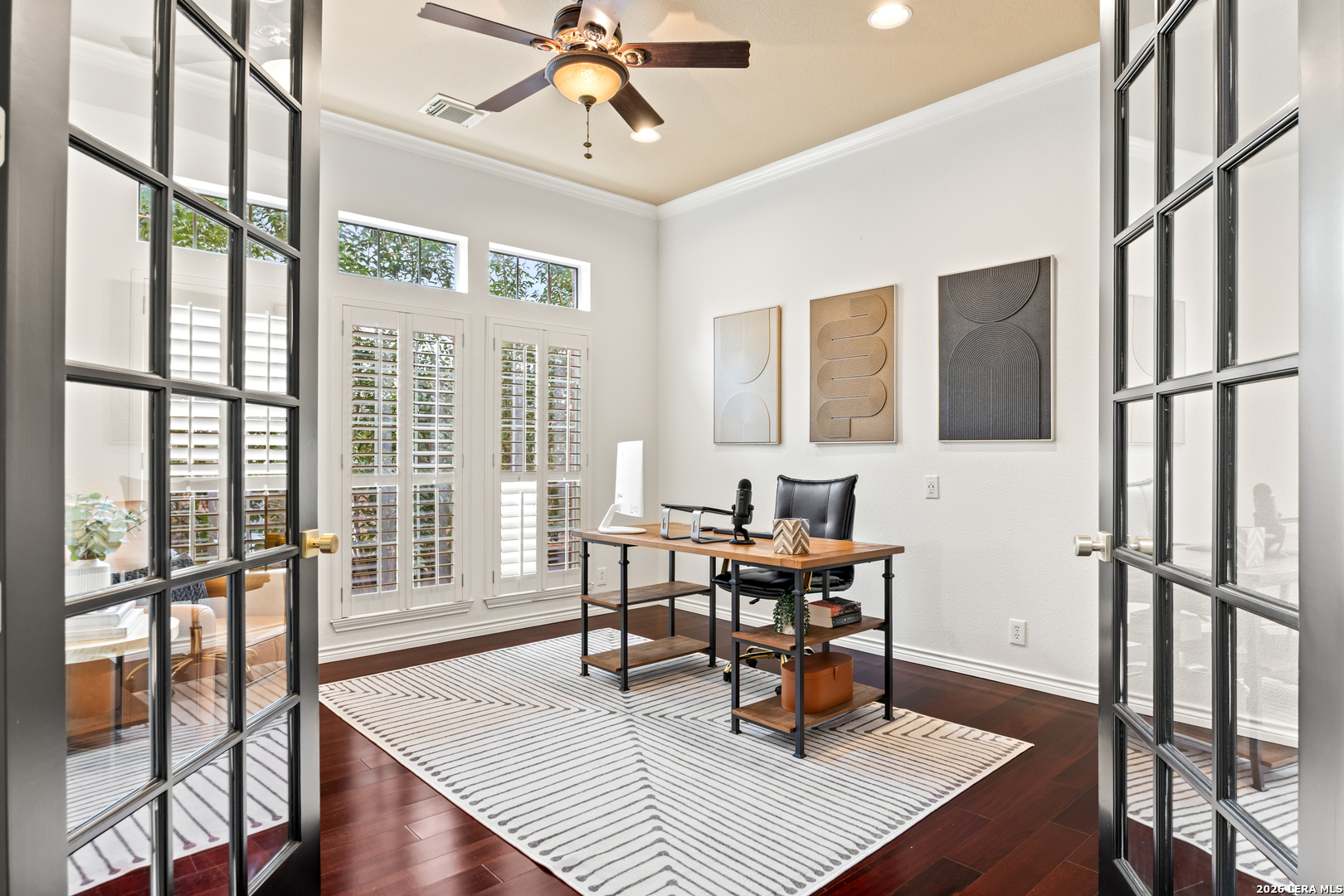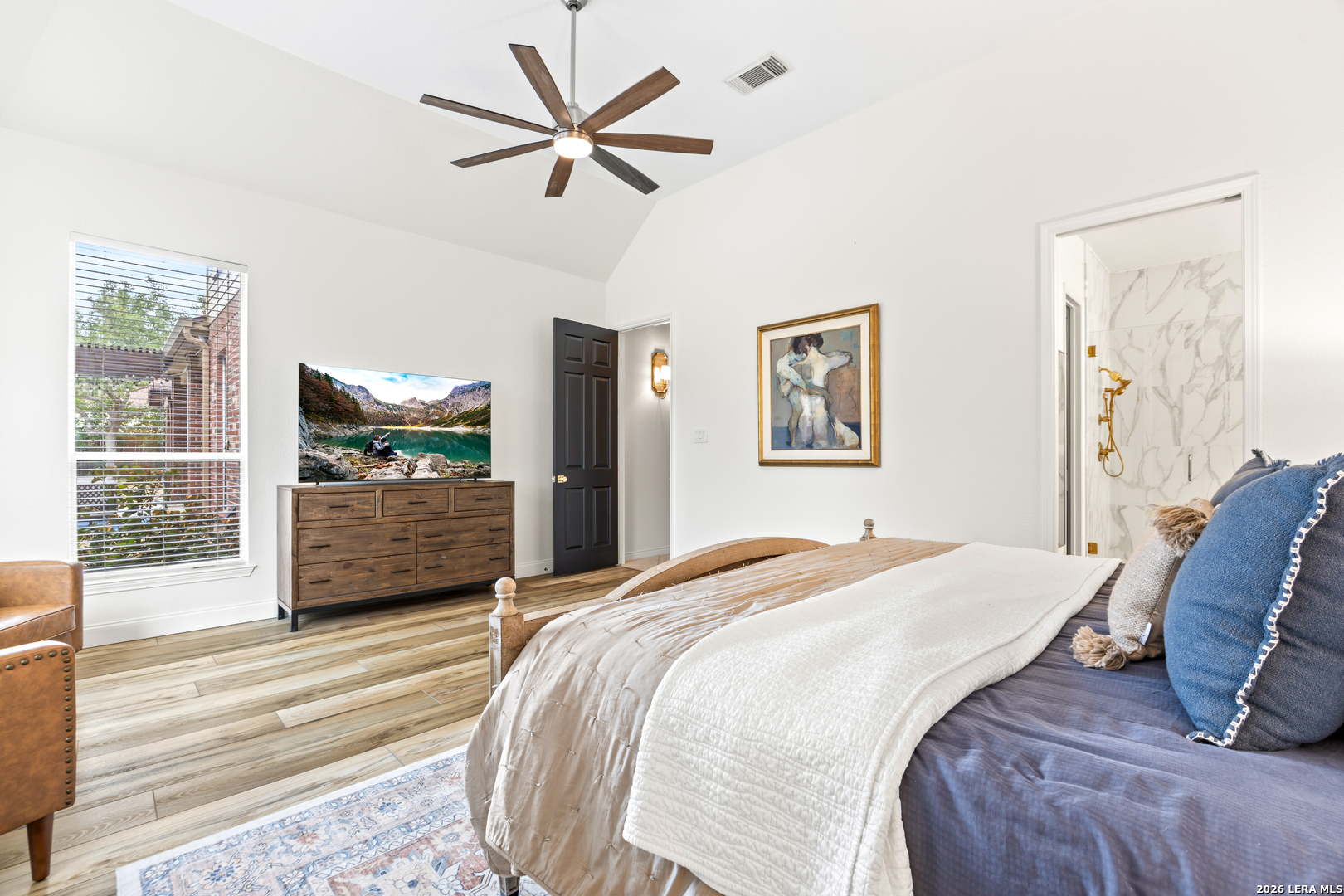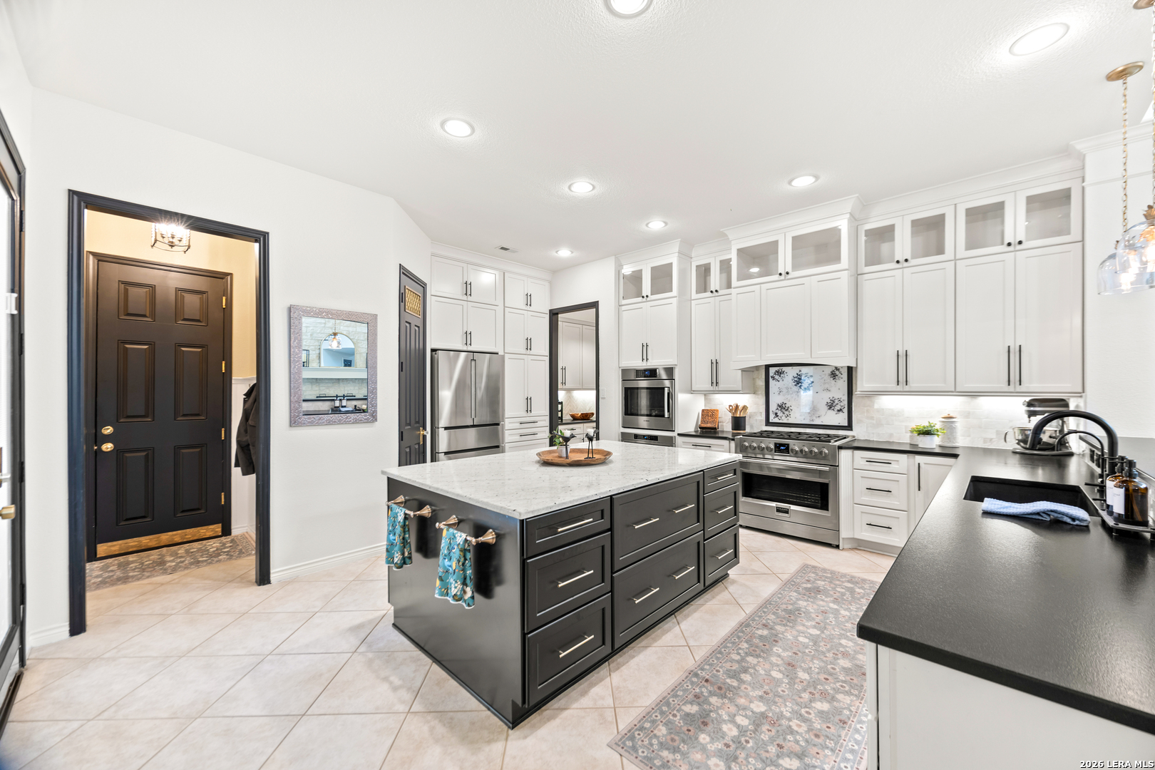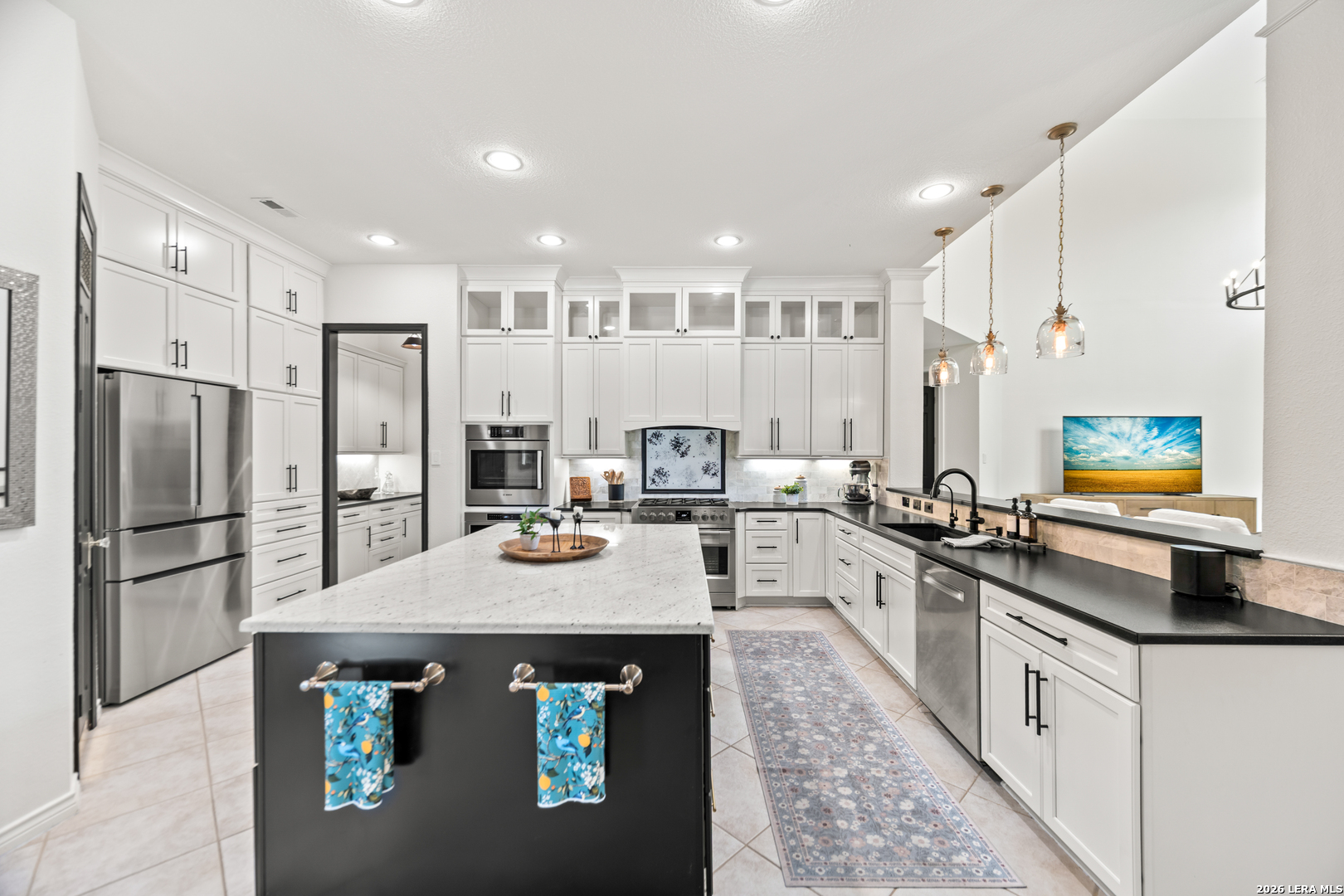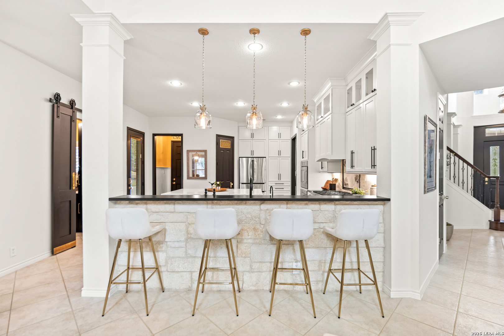 Nestled within the prestigious and tranquil community of The Woods at Fair Oaks Ranch, this impeccably maintained and thoughtfully updated residence offers a seamless blend of timeless elegance and modern luxury. Surrounded by mature trees and enhanced by classic plantation shutters, the home provides a private, welcoming retreat in one of the Hill Country's most desirable settings. At the heart of the home is a true chef's kitchen, beautifully designed for both everyday living and entertaining. Featuring ceiling-height custom cabinetry, a built-in coffee station with appliance garage, and premium Bosch appliances-including a microwave drawer, wall oven, dishwasher, refrigerator, and disposal-this space is as functional as it is stunning. A 36" six-burner Fulgor Milano range anchors the kitchen, complemented by an expansive granite island with pop-up electrical outlets and oversized storage drawers. Granite countertops and a marble backsplash extend into the butler's pantry, while a Kohler filtration system and walk-in pantry add convenience and thoughtful detail. Adjacent to the kitchen, the eat-in dining area is accented by a striking stone feature wall, creating warmth and architectural interest. Designed for effortless entertaining, the open-concept layout flows seamlessly into the main living areas. The living room showcases a dramatic stone fireplace, serving as a refined focal point. Brazilian cherry wood flooring enriches the study and formal dining area, currently styled as a sophisticated lounge. Additional enhancements include remote-controlled shades, Bali Roman shades, and a walk-in attic offering generous storage. The owner's suite is a serene sanctuary, highlighted by a spa-inspired bath with luxurious marble flooring. Upstairs, three spacious bedrooms, a built-in desk with bookshelves, a game room, and beautifully updated bathrooms provide ample space for work, relaxation, and play. Step outside to a private backyard oasis designed for year-round enjoyment. A brand-new heated pool, expansive covered patio, and newly constructed pergola create the ultimate outdoor entertaining space, complete with a built-in Paradise grill, TV, and refrigerator. Thoughtfully placed landscape lighting illuminates the mature trees and architectural elements, setting a stunning evening ambiance. Additional features include a third garage bay currently utilized as a mini gym and secondary home office (easily convertible back), a water softener, under-stair storage, and a full sprinkler system with drip irrigation for flower beds. A detailed list of recent upgrades-including new AC units, roof replacement, and more-is available in the additional documents. Ideally located in Fair Oaks Ranch, this home offers the best of Hill Country living with convenient access to upscale shopping, dining, and entertainment in Boerne and San Antonio. Residents enjoy scenic landscapes, miles of hiking trails, beautiful parks, top-rated schools, and membership opportunities at the renowned Fair Oaks Ranch Golf & Country Club. This exceptional home offers a rare combination of sophistication, comfort, and extensive modern updates-an extraordinary opportunity that must be experienced in person.
