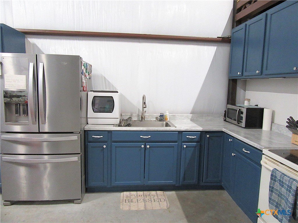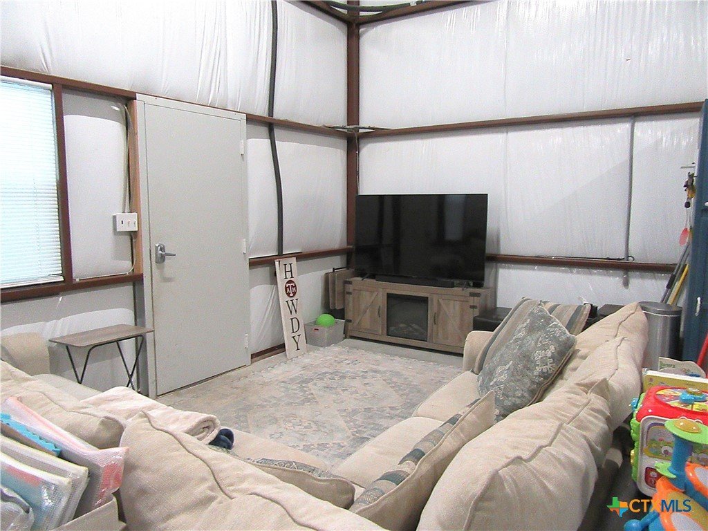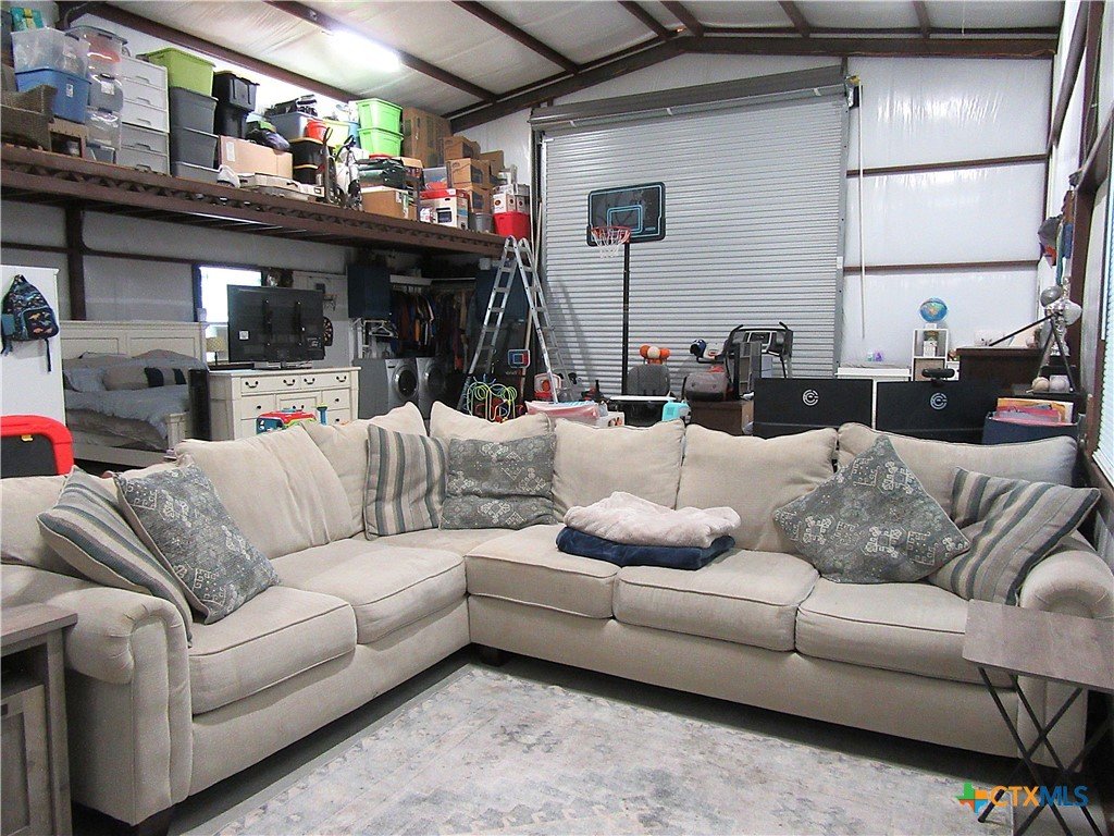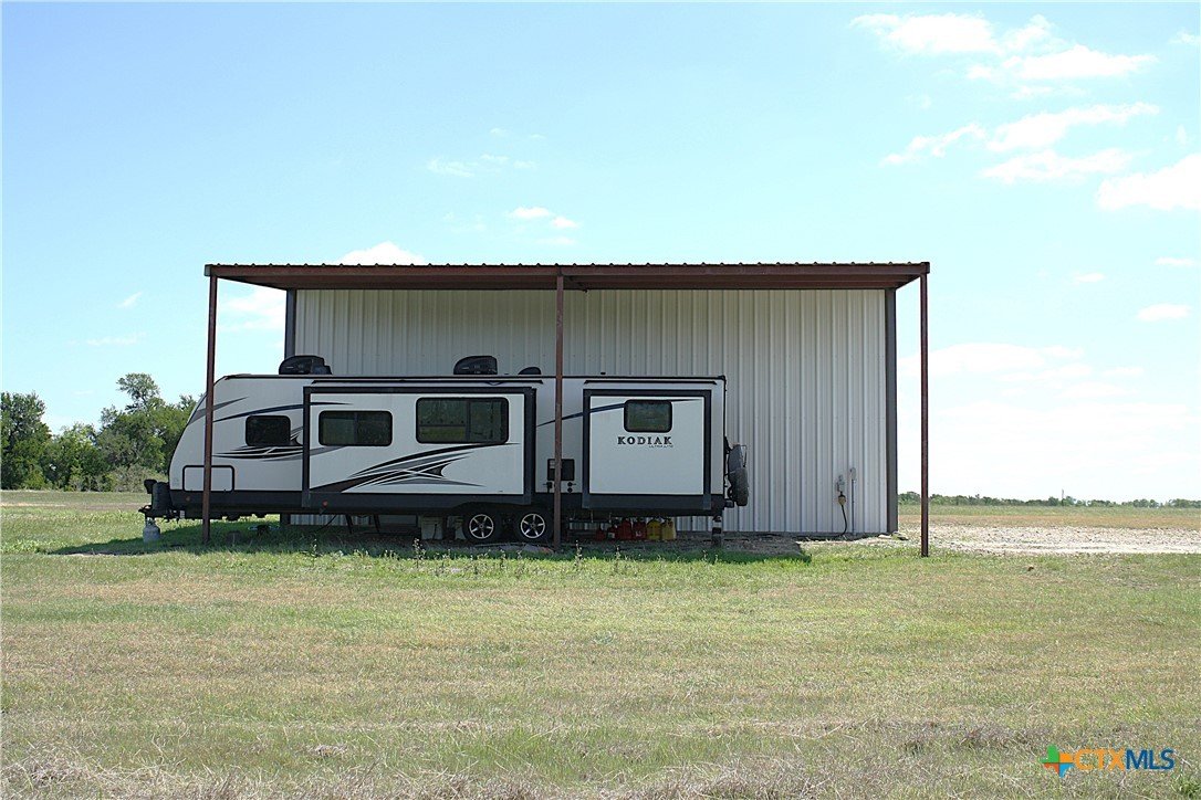 Escape the hustle and discover your own peaceful countryside retreat on 10.01 beautifully manicured acres with breathtaking views that stretch for miles. A long private driveway lined with crepe myrtles welcomes you home, setting the tone for this serene and secluded property. The 1,200 sq ft barndominium, built in 2023, offers comfortable and stylish living with a well-appointed kitchen, a stunning bathroom, and ample storage space. The home features three access points, including a 14-foot roll-up door for added convenience and versatility. On either side of the living space, you’ll find two 600 sq ft lean-tos. One is perfectly equipped for RV parking with a 50-amp hookup, while the other creates an ideal space for relaxing, grilling, and enjoying time with family and friends while taking in the scenic surroundings. The property also includes a matching metal shop on a slab foundation with a roll-up door, plus an additional lean-to for storing a boat, tractor, or equipment. The level acreage is perfect for outdoor activities such as 4-wheeling, and even includes a designated shooting berm. Whether you're seeking recreation, relaxation, or room to grow, this property delivers. Ag exemption currently in place for tax savings. Experience unforgettable sunrises and sunsets—your private slice of Texas countryside awaits.