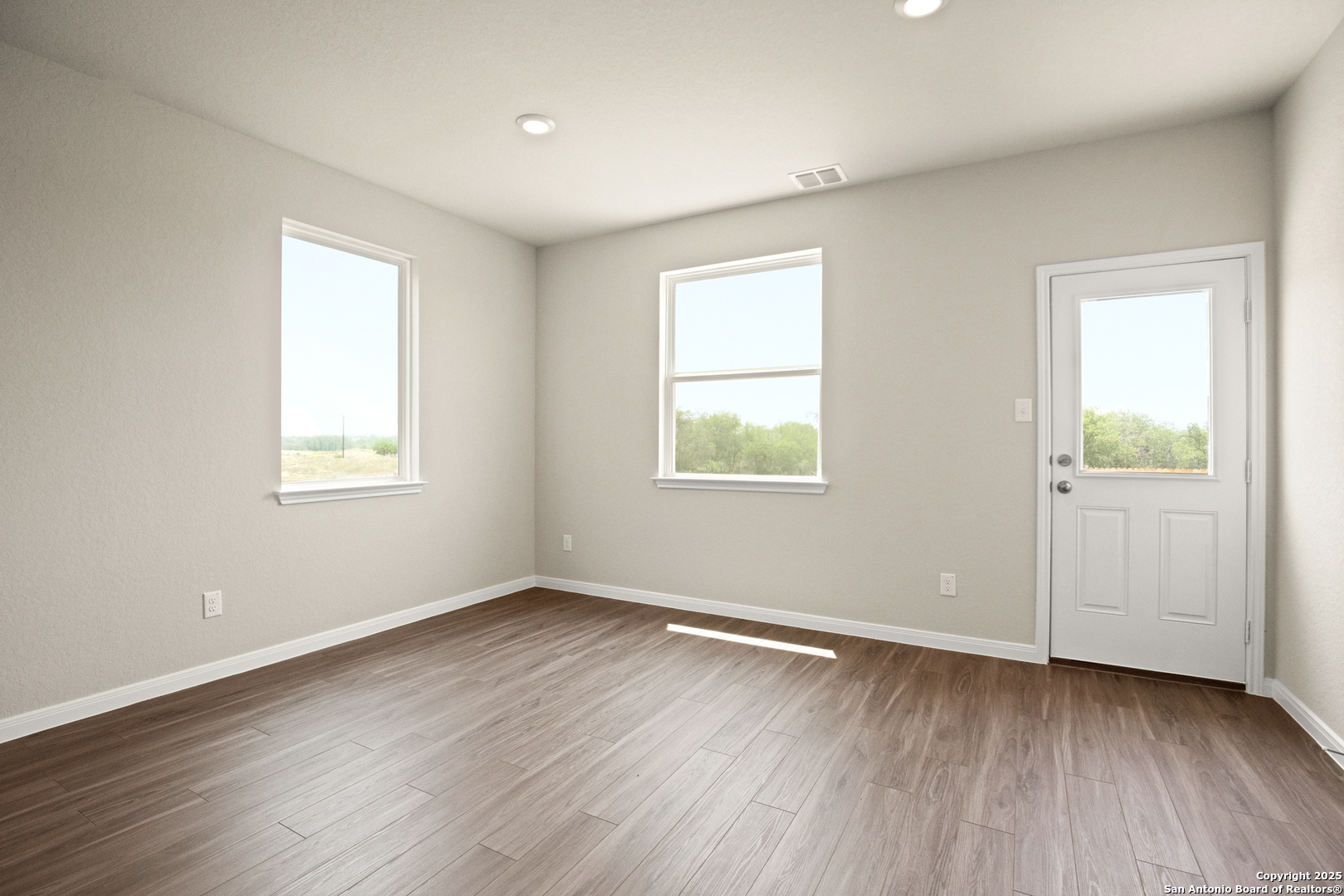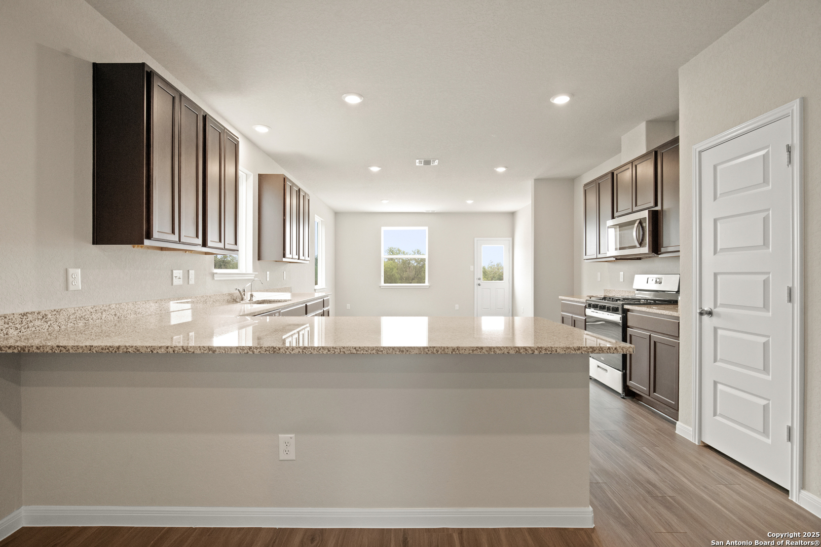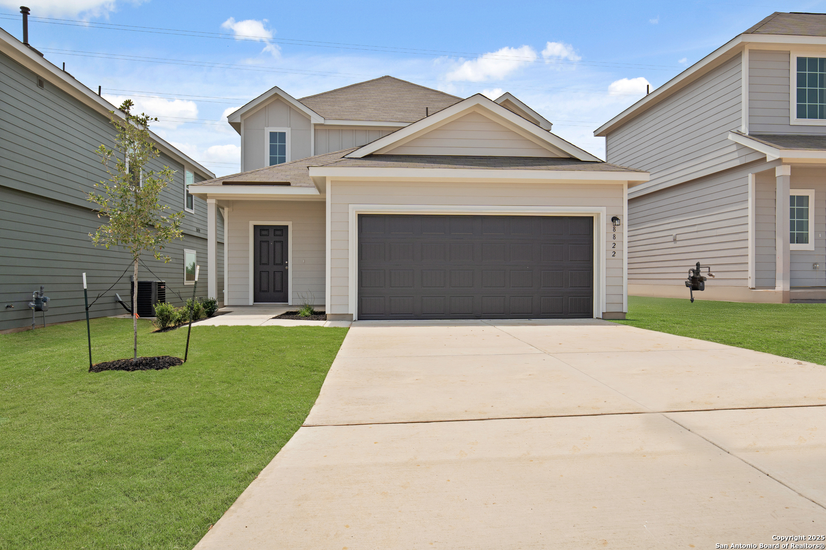 Love where you live in Hickory Ridge in Elmendorf, TX! The Redbud floor plan is a spacious two-story home with 4 bedrooms, 2.5 baths, a Texas-sized game room, and 2-car garage. The gourmet kitchen is sure to please with 42" cabinets, granite countertops, and stainless-steel appliances! Retreat to the first-floor Owner's Suite featuring granite countertops, a separate tub and shower, and a walk-in closet! Enjoy the great outdoors with full sod, a sprinkler system, and a covered patio! Don't miss your opportunity to call Hickory Ridge home, schedule a visit today!