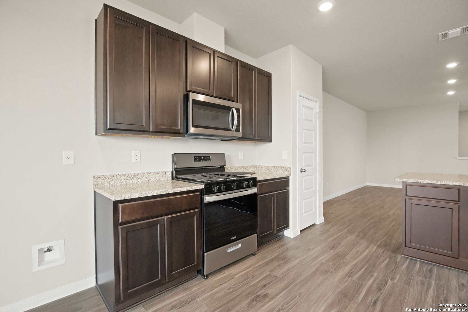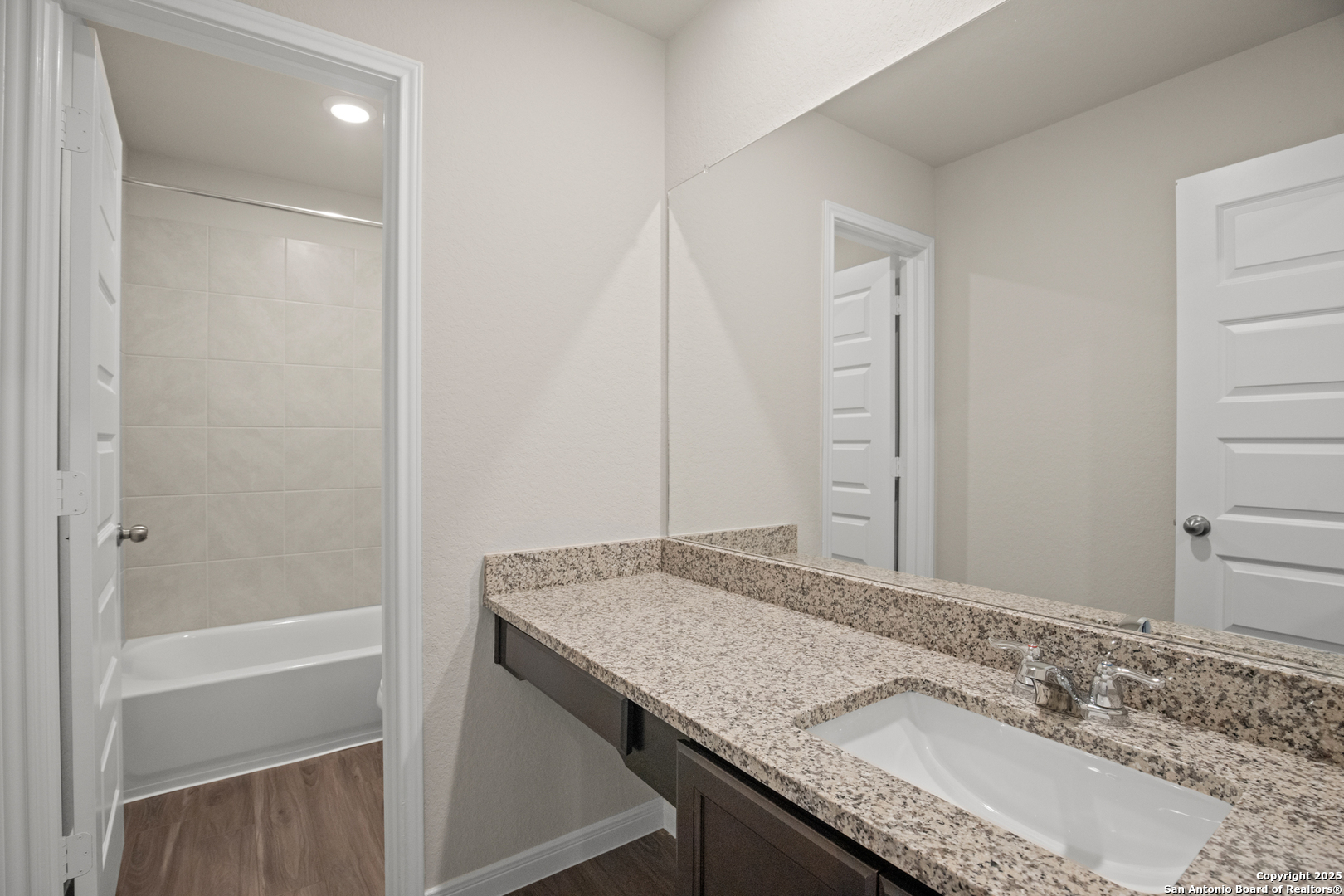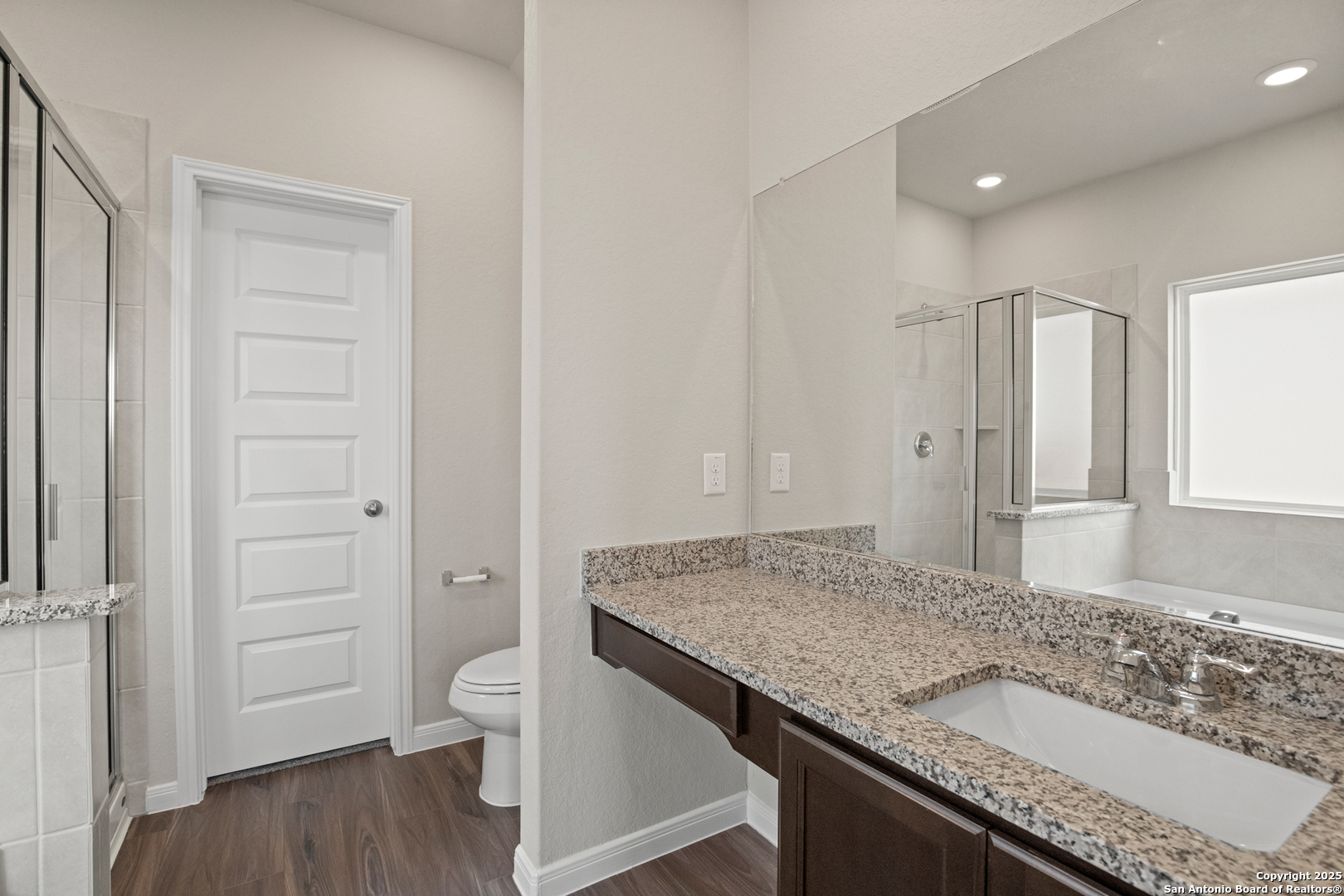 Love where you live in Hickory Ridge in Elmendorf, TX! The Redbud floor plan is a spacious two-story home with 4 bedrooms, 2.5 baths, a Texas-sized game room, and 2-car garage. The gourmet kitchen is sure to please with 42" cabinets, granite countertops, and stainless-steel appliances! Retreat to the first-floor Owner's Suite featuring granite countertops, a separate tub and shower, and a walk-in closet! Enjoy the great outdoors with full sod, a sprinkler system, and a covered patio! Don't miss your opportunity to call Hickory Ridge home, schedule a visit today!