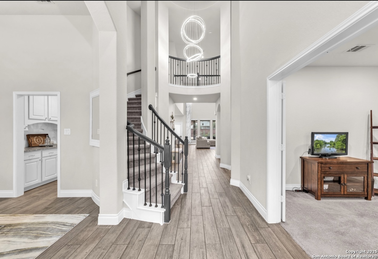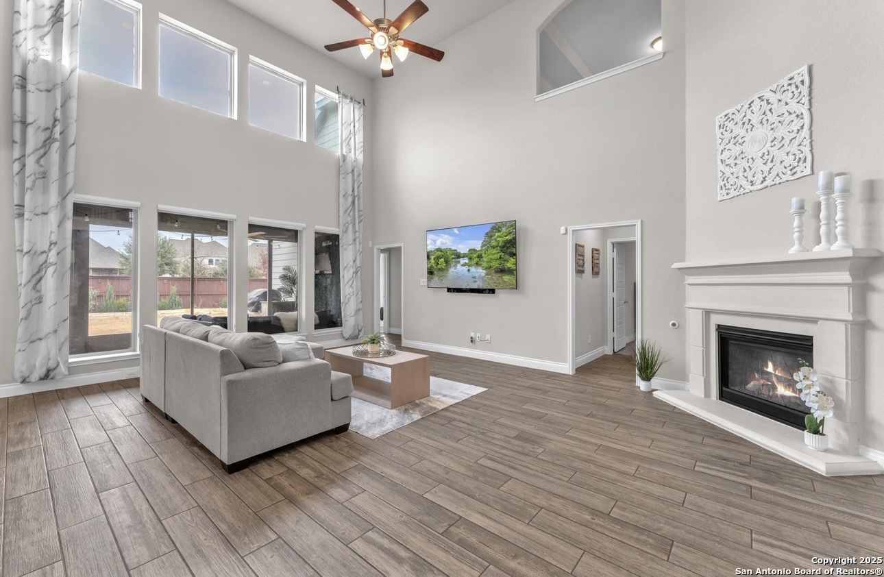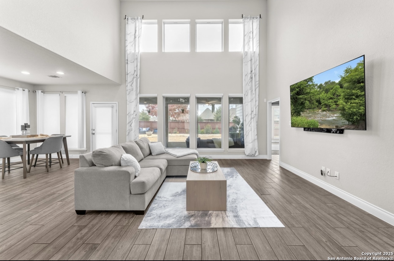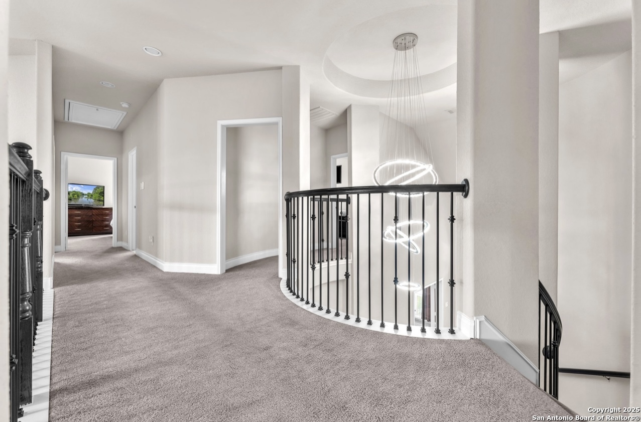 Don't Miss out on this Qualifying VA Assumable Loan at 4.62 rate ~Luxury meets functionality in this Gorgeous 5-bed, 4.5-bath home in sought-after Kallison Ranch. Featuring over $50K in upgrades and a rare 4-car garage, this home offers a gourmet kitchen w/ island, butler's pantry, formal dining, private office w/ French doors, and a grand 20-ft rotunda entry. Enjoy multiple living areas, including a game room, media room, and a spacious family room with cast stone fireplace. The private primary suite includes a spa-like bath, dual walk-in closets, and curved windows. Downstairs guest suite w/ full bath ideal for visitors or multigenerational living. Outdoor upgrades include a sunroom, screened-in patio, outdoor kitchen, and professional landscaping perfect for outdoor entertaining all year around. Extras: custom Drapes and blinds, chandeliers, recessed exterior lighting, whole-home water softener, and mudroom. Prime location near NISD schools, shopping, dining, and JBSA. Why build and have to put in all the extras when this one has it all ~ schedule an appointment today