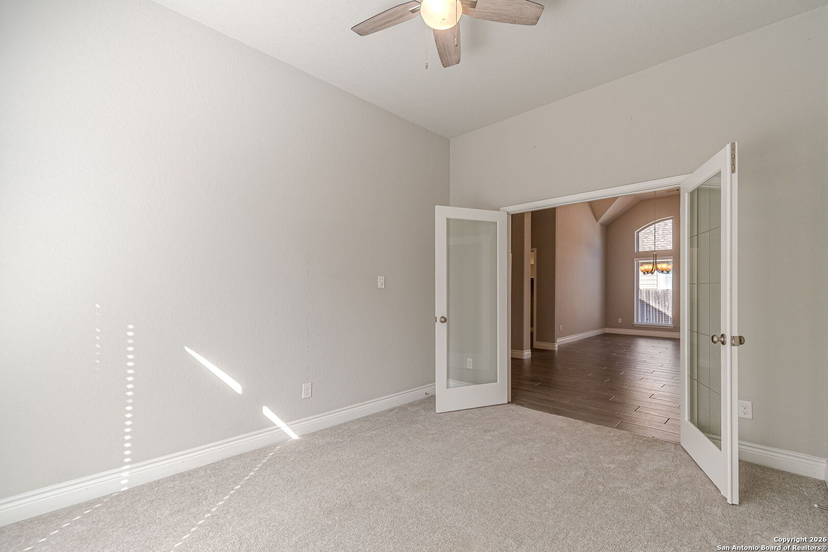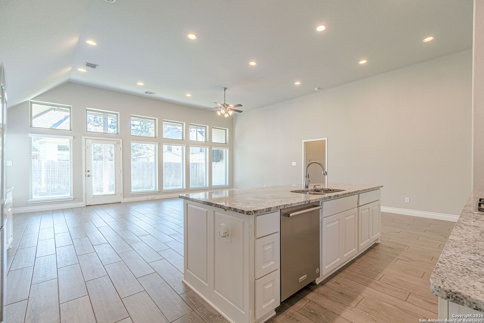 Welcome home to 8826 Haystack Rd, a beautifully maintained Perry Homes residence built in 2018, offering 4 bedrooms, 3 full bathrooms, and 2,709 sq ft of thoughtfully designed living space in one of Northwest San Antonio's most desirable communities. Just off the entry, a large private office with elegant French-style glass doors provides the perfect space for working from home, studying, or a quiet retreat-bright, stylish, and easily closed off for privacy. The home opens into a spacious living room featuring a dramatic wall of tall windows, filling the space with natural light and creating an inviting, open feel. The kitchen is the heart of the home, showcasing a large granite island, white cabinetry, stainless steel appliances, and an extended buffet-style counter, ideal for entertaining, hosting gatherings, or everyday living. The flexible floor plan offers generously sized bedrooms and ample storage throughout. Step outside to the backyard complete with a large storage shed, perfect for tools, hobbies, or outdoor equipment. Enjoy exceptional neighborhood amenities, including two community pools and a walking-distance catch-and-release fishing pond!!!! The location is unbeatable-less than a one-minute drive to H-E-B and Harlan High School, all within the highly sought-after Northside Independent School District. Adding even more value, this home features an assumable 5 interest rate, a rare opportunity in today's market. Spacious, light-filled, and ideally located-this home offers comfort, convenience, and long-term value in one incredible package. This is a nice one! You don't want to miss it!