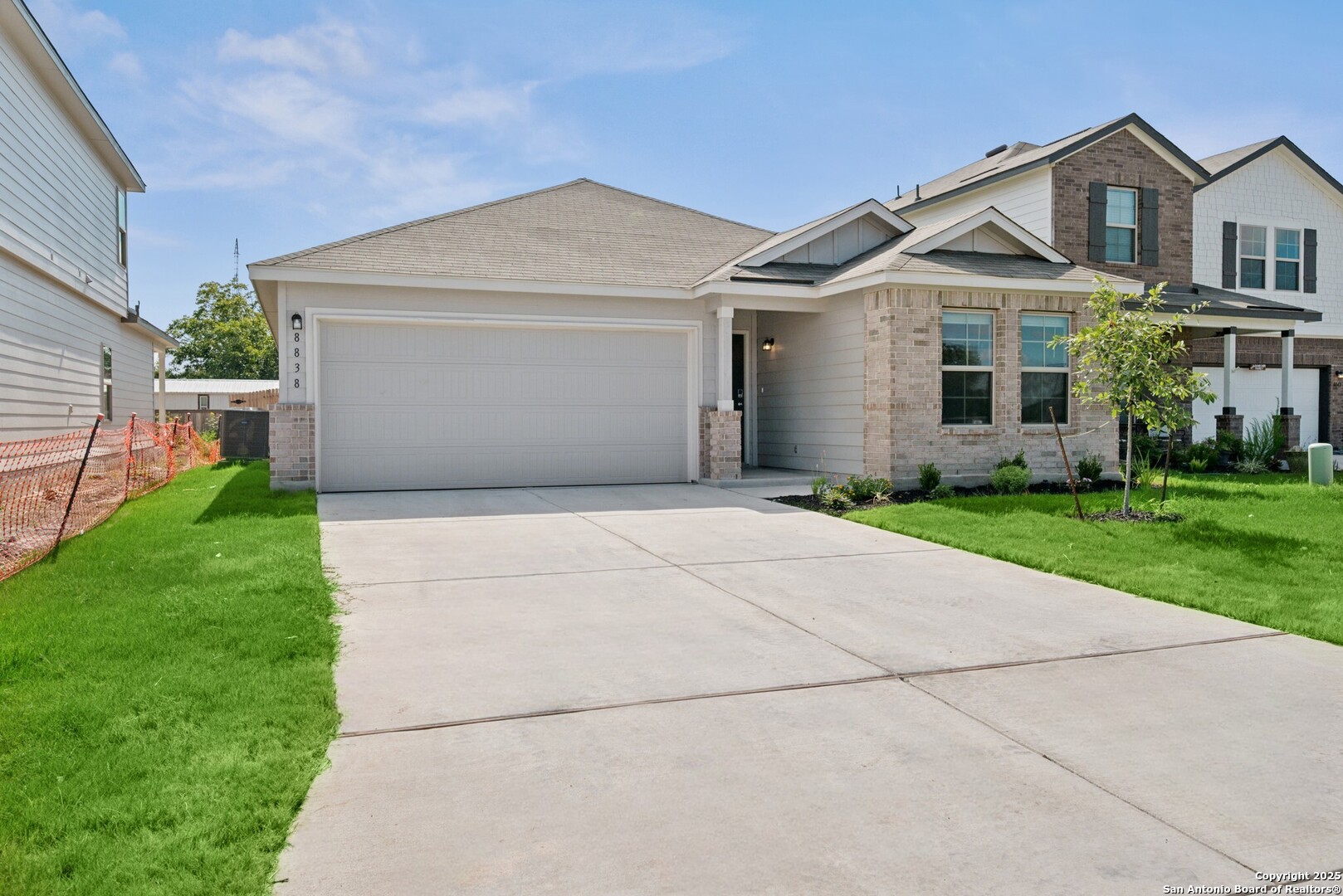 ***READY NOW***** Welcome to this charming 3-bedroom, 2-bathroom home located at 8838 Campacuas Trail in beautiful San Antonio, TX 78252. This home offers a fantastic opportunity for buyers seeking a cozy new construction home with modern amenities and a welcoming atmosphere. Your New Home Features Situated in a peaceful neighborhood, this 1-story house, built by M/I Homes, boasts a spacious 1,642 sqft layout that provides both comfort and functionality. Upon entering, you will be greeted by a well-designed open floorplan that seamlessly connects the kitchen, living area, and dining space, perfect for entertaining family and friends or simply relaxing after a long day. The kitchen in this home is a chef's dream, featuring sleek countertops, ample storage space, and high-quality appliances that make meal preparation a breeze. Whether you enjoy cooking gourmet meals or whipping up quick snacks, this kitchen has everything you need to unleash your culinary skills. Step outside to the covered patio and envision enjoying your morning coffee or evening drinks while taking in the fresh air and serene neighborhood views. The outdoor space offers a private retreat where you can unwind and create lasting memories with loved ones. With 3 cozy bedrooms, including a primary suite with an en-suite bathroom, this home provides a comfortable and inviting living environment for residents of all ages. The additional bathroom is conveniently located to serve the other bedrooms and guests, ensuring everyone's comfort and convenience. Parking will never be an issue with a 2-car garage. Whether you have multiple vehicles or enjoy hosting gatherings, this feature adds to the convenience and functionality of this property.
