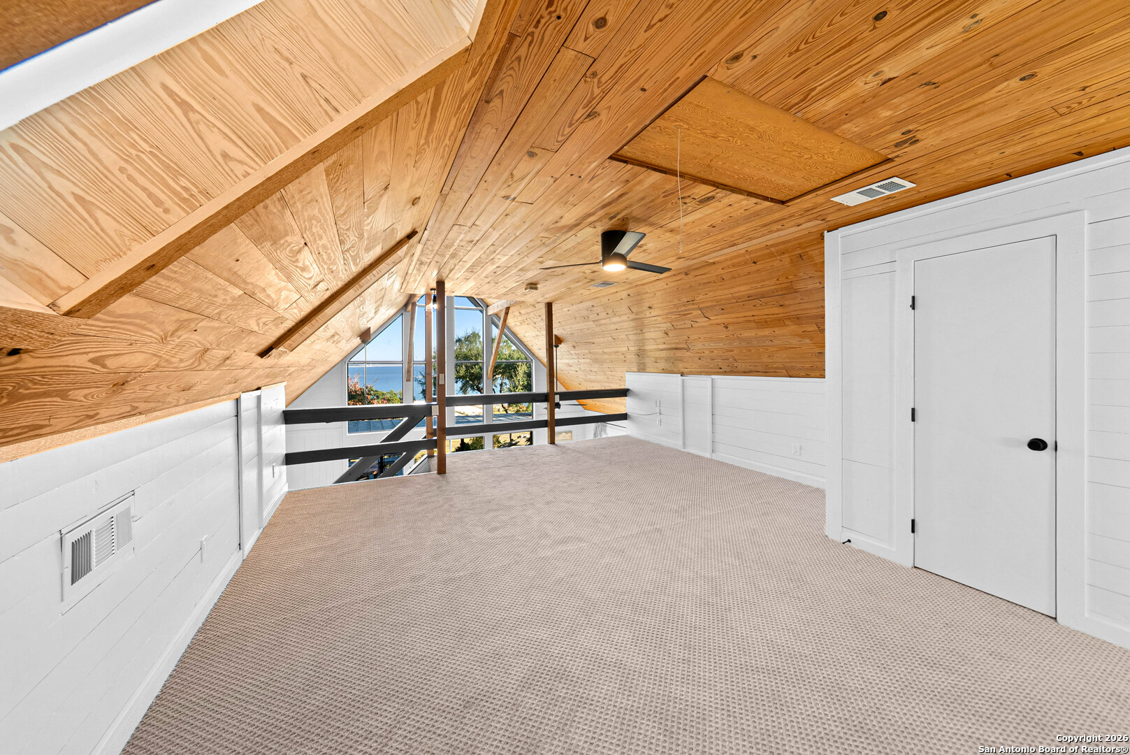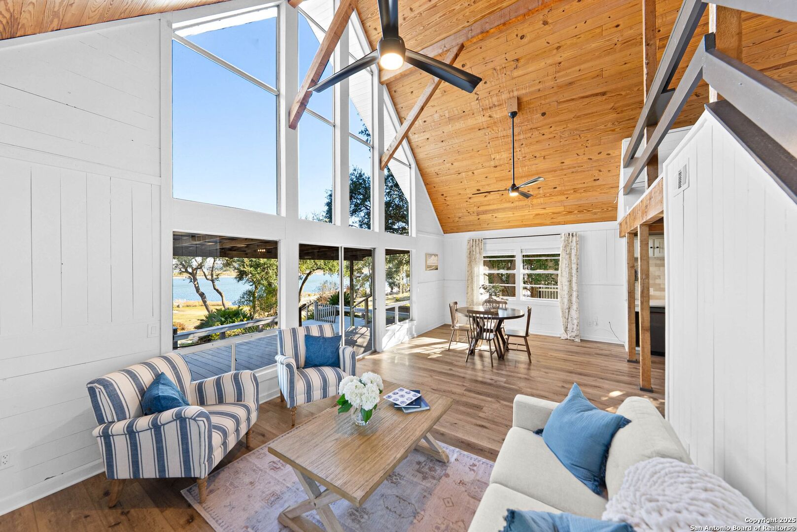 Welcome to your Canyon Lake retreat-an updated lakefront home with breathtaking water views and classic Hill Country character. Remodeled in 2025, this just-over 2,000 sqft home blends modern comfort with timeless charm, highlighted by cedar ceilings throughout and a stunning cathedral-vaulted living room. Designed for easy, all-ages living, the home features two bedrooms and the full kitchen on the main floor, along with expansive floor-to-ceiling windows showcasing the lake from the kitchen, living room, and upstairs loft. Enjoy peaceful wildlife visitors, boats on the water, and year-round views right from your own backyard. Upgrades include a new water heater, fresh interior finishes, and thoughtful enhancements that make this home move-in ready. With four total bedrooms, two baths, and bright open spaces, there's room for everyone whether you're looking for a primary residence, weekend getaway, or a short-term rental investment. Located on the south side of Canyon Lake, the home sits on a quiet street just minutes from Startzville, and an easy drive to Bulverde, New Braunfels, shopping, dining, marinas, parks, and Hill Country attractions. This is the perfect blend of convenience, comfort, and classic lake house charm - offering the true Canyon Lake lifestyle.