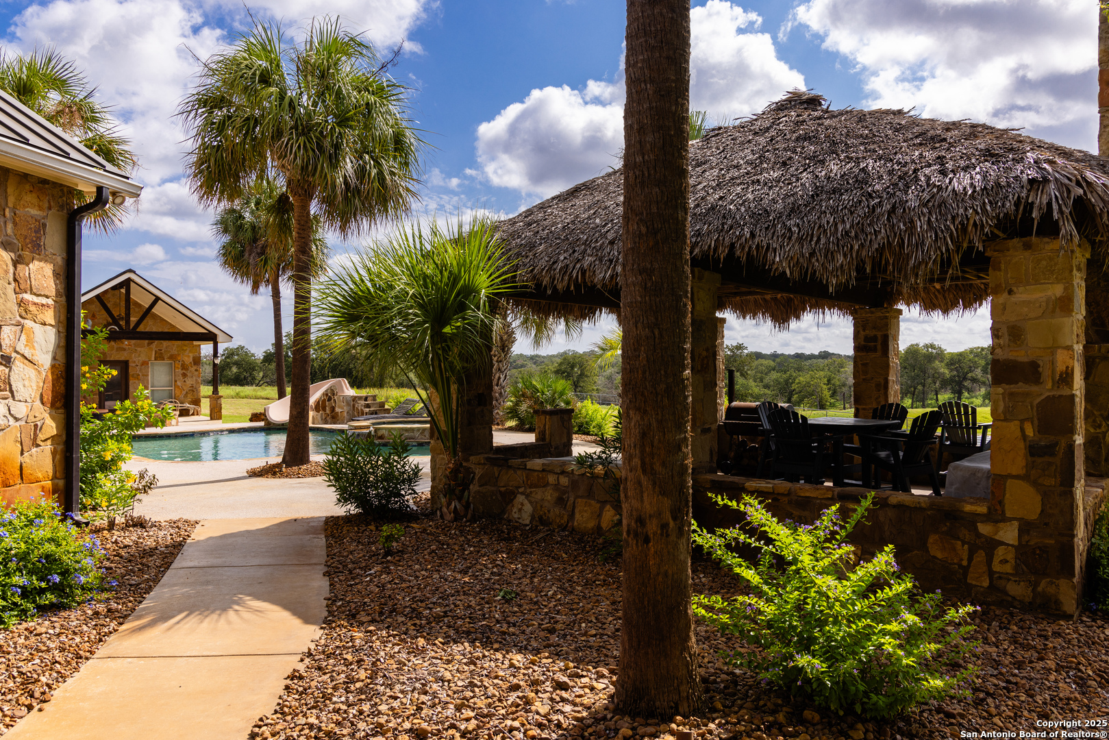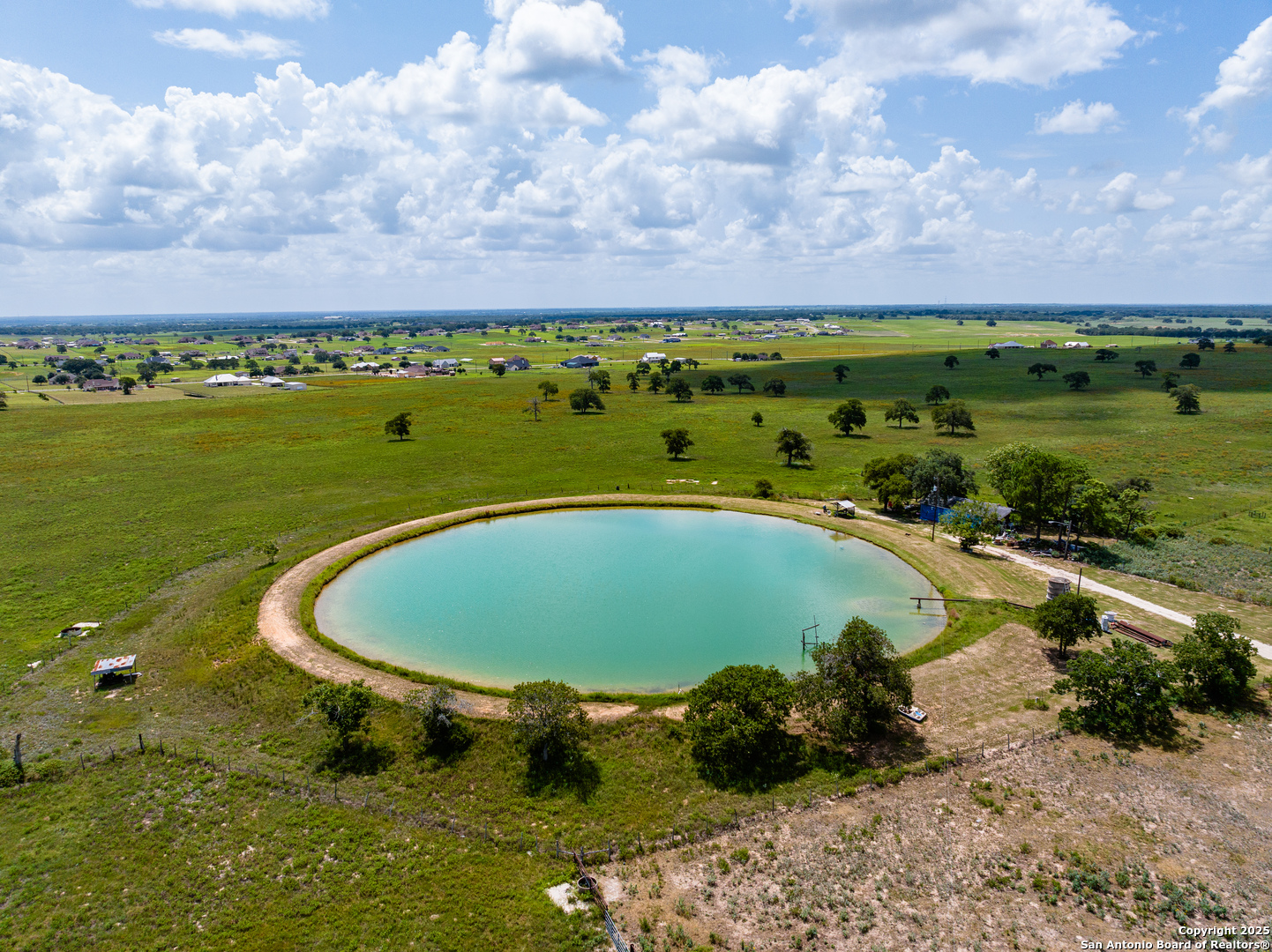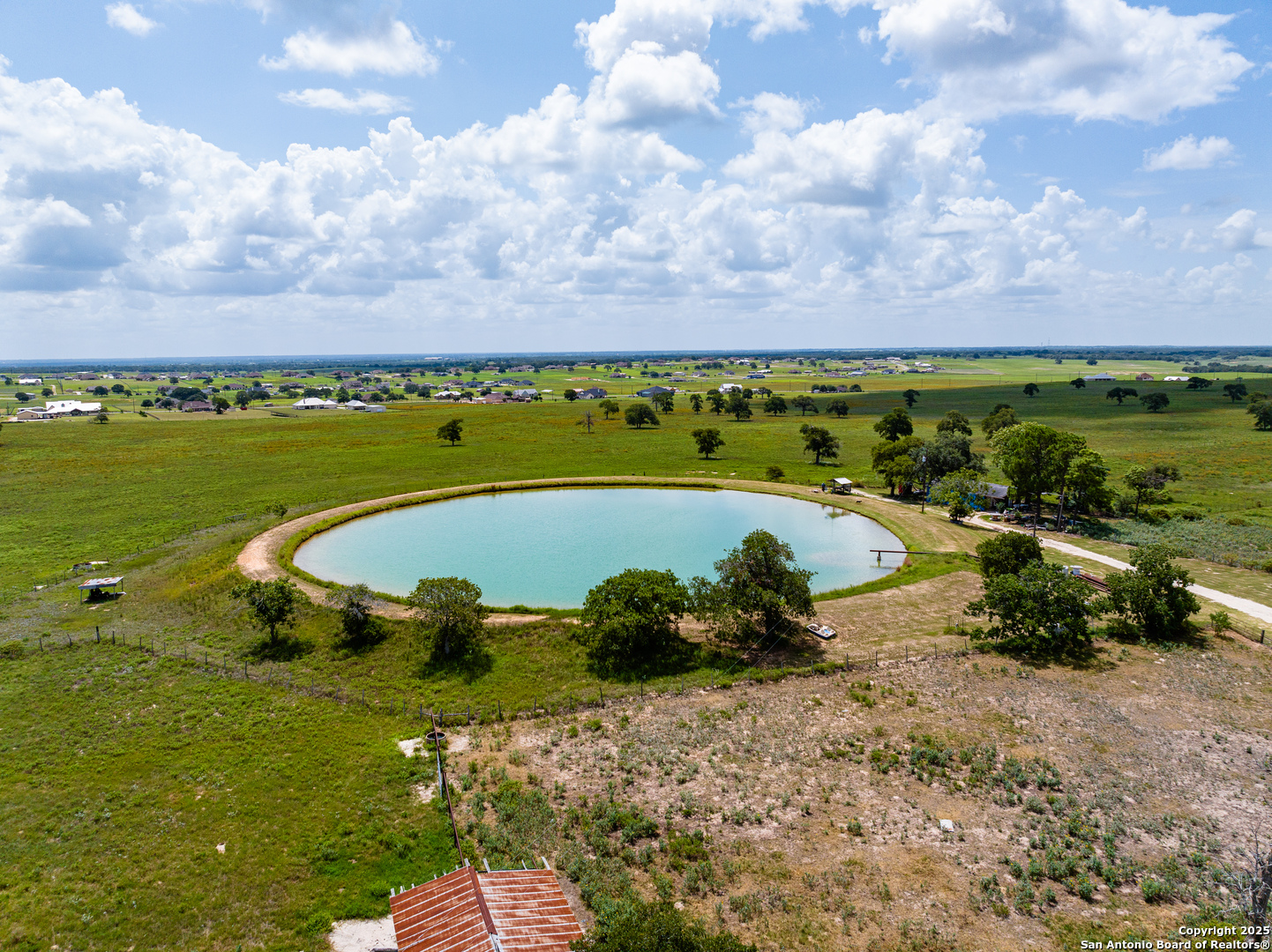 Discover 980 acres of exceptional premier land situated entirely within the coveted La Vernia Independent School District. Just 7 minutes from downtown La Vernia and a mere 20 minutes to the heart of San Antonio, this location combines convenience with tranquility. Property can be purchased with the homestead of 627 acres on FM 775, +/- 354 acres on CR 319 or together as 980 acres. Among its many notable features is a stunning 5,500 square foot residence that includes 3 bedrooms, 2 full bathrooms, and 2 half bathrooms. The home boasts a bar/trophy room, a pool house complete with a full bathroom and kitchen, as well as a cozy loft-perfect for entertaining and relaxation. Additional functional outbuildings and barns enhance the property's appeal. The ranch boasts a well-planned infrastructure, including miles of caliche roads, enhanced water crossings, high-quality fencing, and multiple access points. Animal enthusiasts will appreciate the first-class dog kennels and exotic pens located near the home, while water resources are plentiful with seven surface tanks and seven operational wells, alongside a public water supply. The land is decorated with thousands of magnificent large oak trees and approximately one mile of Kicaster Creek, creating a picturesque landscape. Wildlife flourishes, with a premier whitetail deer herd boasting exceptional genetics exceeding 250+, as well as a variety of exotic species, and the ideal turkey hunting grounds. This exceptional location is unmatched. Whether utilized as a working ranch, future development, or recreation, properties of this scale and quality are incredibly rare to find.