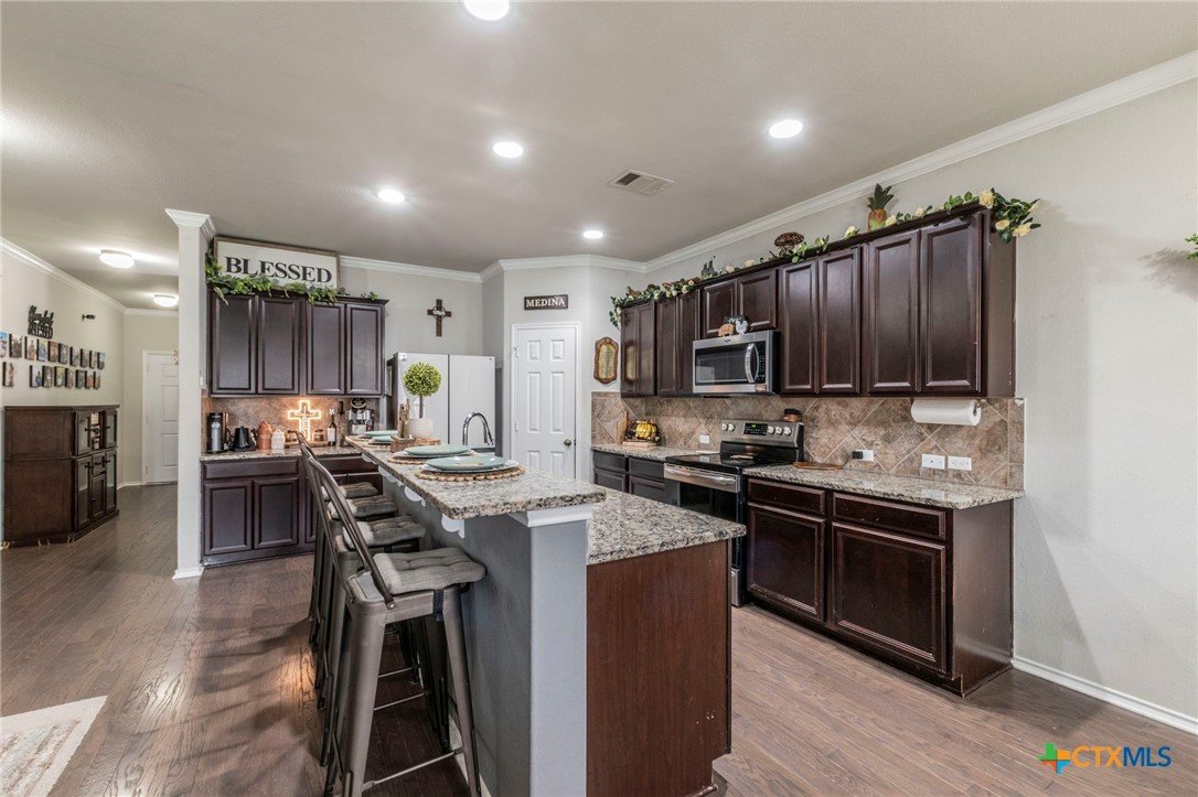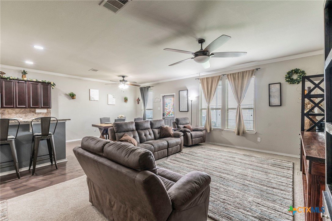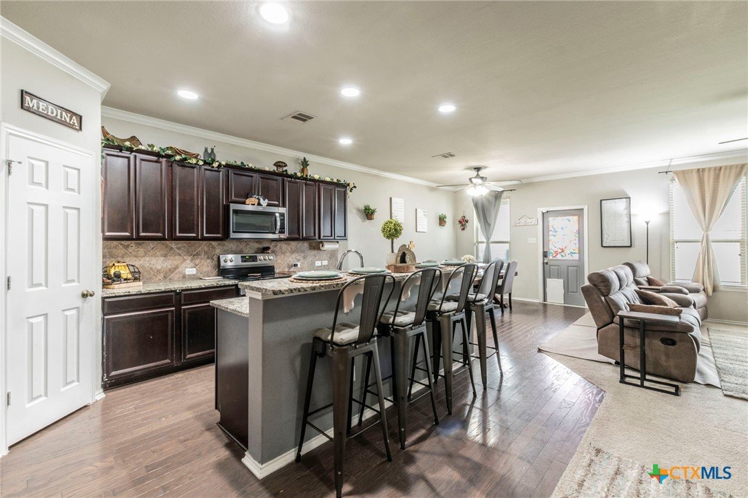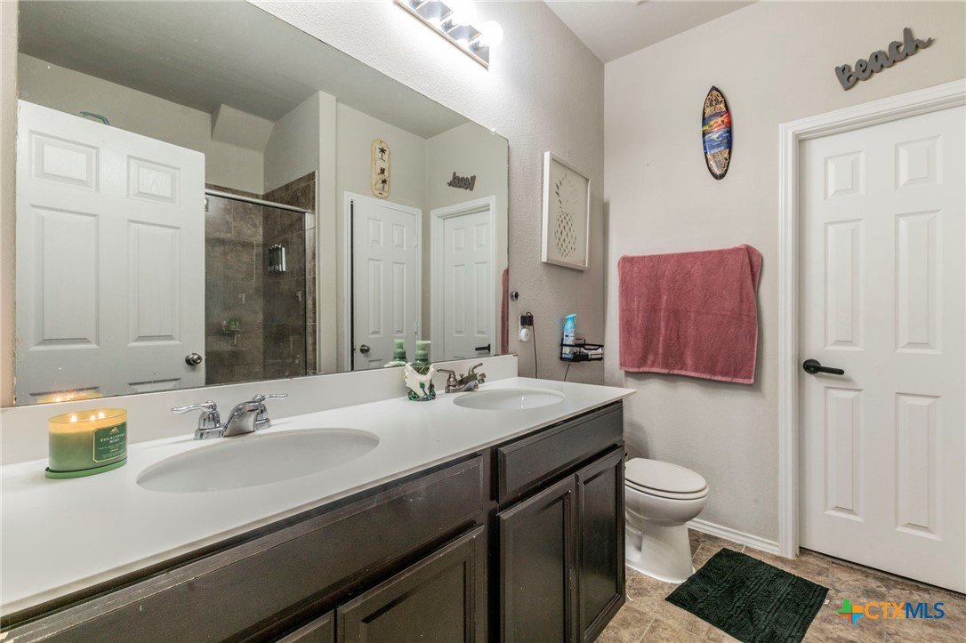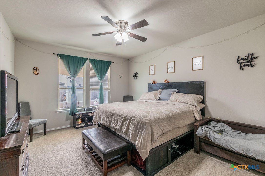 Welcome to 8907 Misty Pine Drive, a beautifully maintained two-story home in the Lake Pointe neighborhood of Temple, perfectly located in the Belton ISD. Built in 2017, this spacious residence delivers comfort, style, and functionality, ideal for families, professionals, or anyone who needs room to grow. Inside, you'll find 5 large bedrooms, 3.5 baths, and 3,115 sq ft of living space. The open-concept layout features a modern kitchen with a center island and ample counter and cabinet space, flowing seamlessly into family and dining areas, great for entertaining. The primary suite on the main level provides privacy and convenience, while an upstairs secondary living area offers flexibility for a media room, game room, or home retreat. A dedicated home office adds versatility for remote work or study. Step outside to enjoy the backyard with a privacy fence and an oversized patio, perfect for outdoor dining, relaxing, or play. Amenities in Lake Pointe include community features like playgrounds, walking paths, a pool, and street lighting, creating a comfortable, family-friendly environment. Just minutes from H-E-B Plus, Walmart, Cross Roads Park and Baylor Scott & White Hospital. Enjoy quick access to all the shopping and dinning West Temple has to offer!