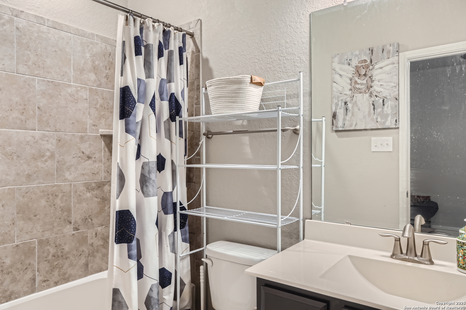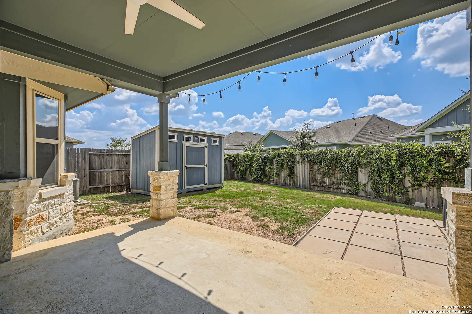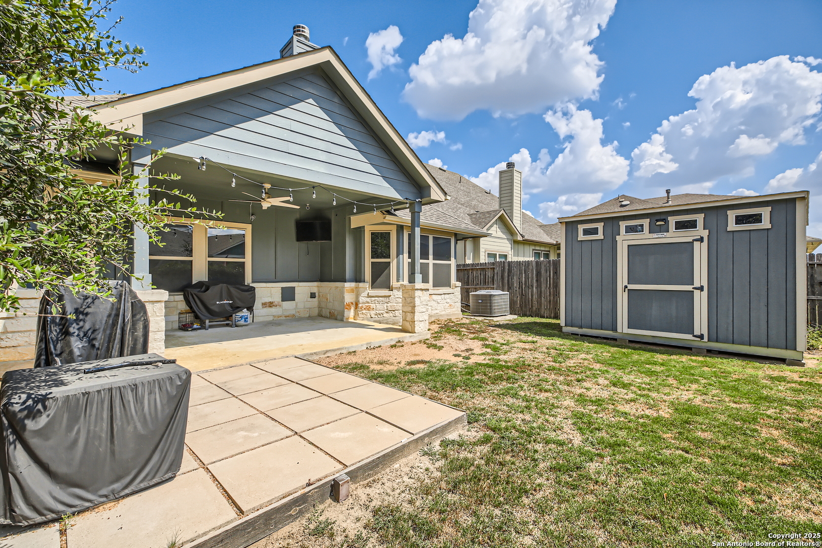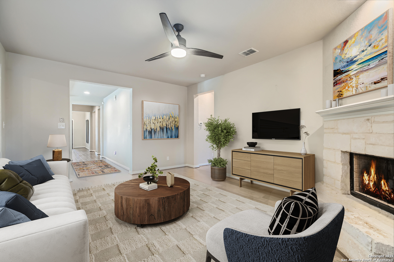 Incredible Opportunity! This beautiful single-story home in The Crossvine features a VA assumable loan with a rare 2.75% interest rate-and you don't need to be a veteran to assume it! Located on a premium corner lot in a quiet cul-de-sac, this 4-bedroom, 3-bathroom home offers a thoughtful layout. The family room features a a wood-burning fireplace, perfect for fall and winter gatherings. The kitchen boasts quartz countertops, a glass tile backsplash, and a large island-ideal for cooking and entertaining.The spacious primary suite includes an en-suite bath with double vanities, a soaking tub, separate shower, and a generous walk-in closet. The second bedroom serves as a mini-suite, complete with its own private bathroom and walk-in closet-perfect for guests or multi-generational living. Additional upgrades include remote-controlled ceiling fans, a water softener, air-filtration system, and a garden shed. The refrigerator, water softener, and shed all convey. Enjoy the covered patio with plenty of backyard space. Located in a top-rated school district, The Crossvine community offers two pools, a pavilion, and year-round HOA-hosted events. Conveniently close to Randolph Air Force Base, IKEA, H-E-B, The Forum Shopping Center, and with an easy commute to downtown San Antonio, Fort Sam Houston, and BAMC. Don't miss this rare find-schedule your tour today!