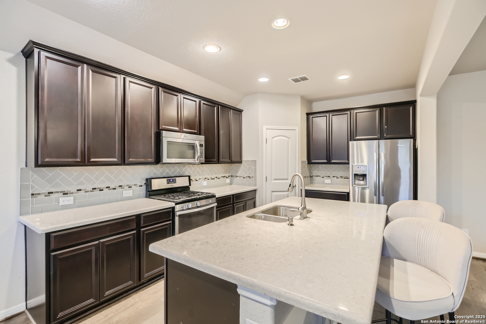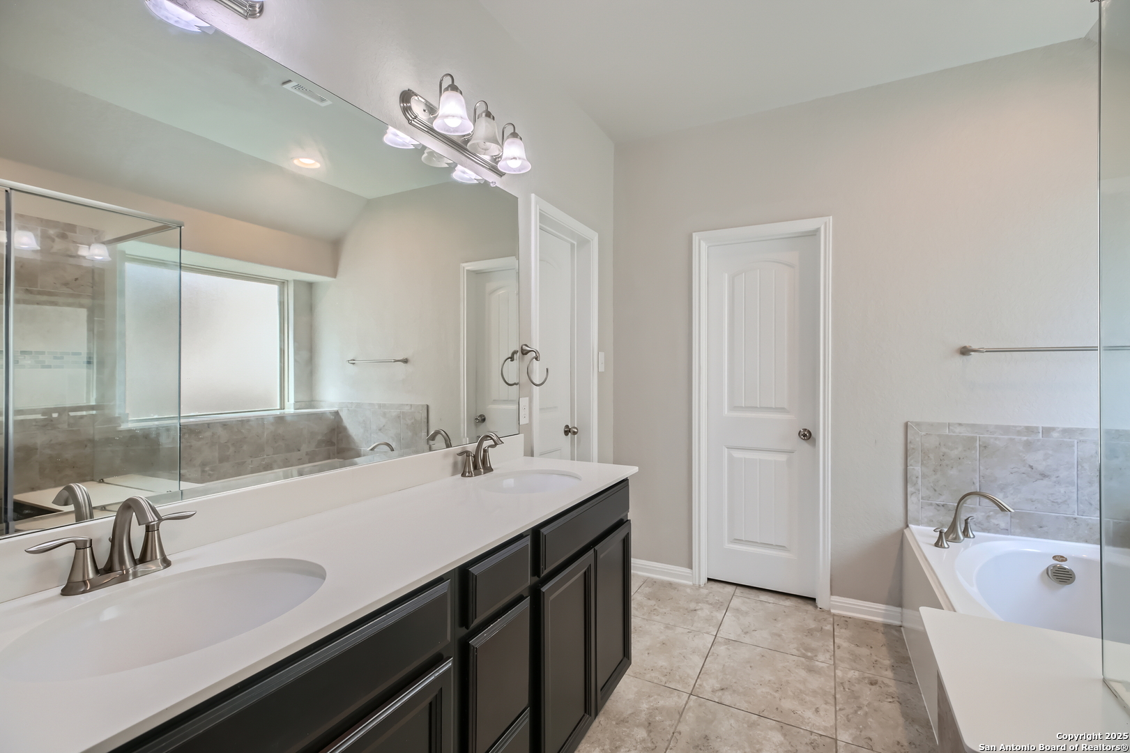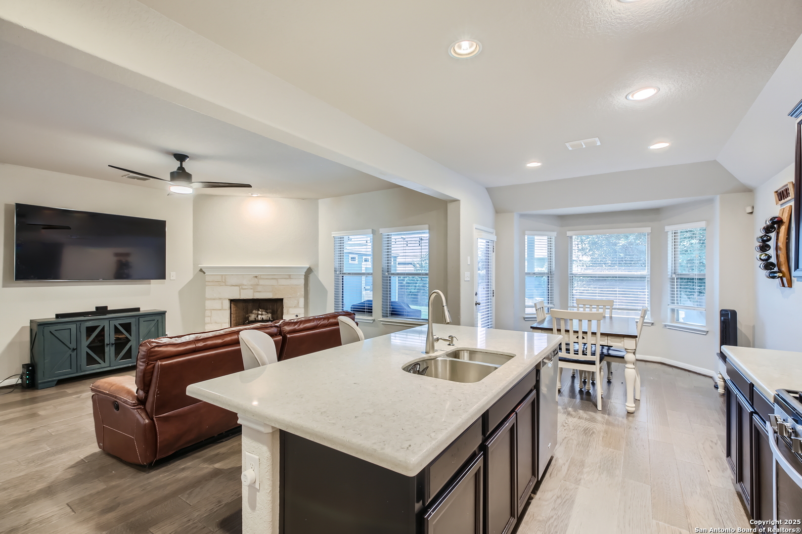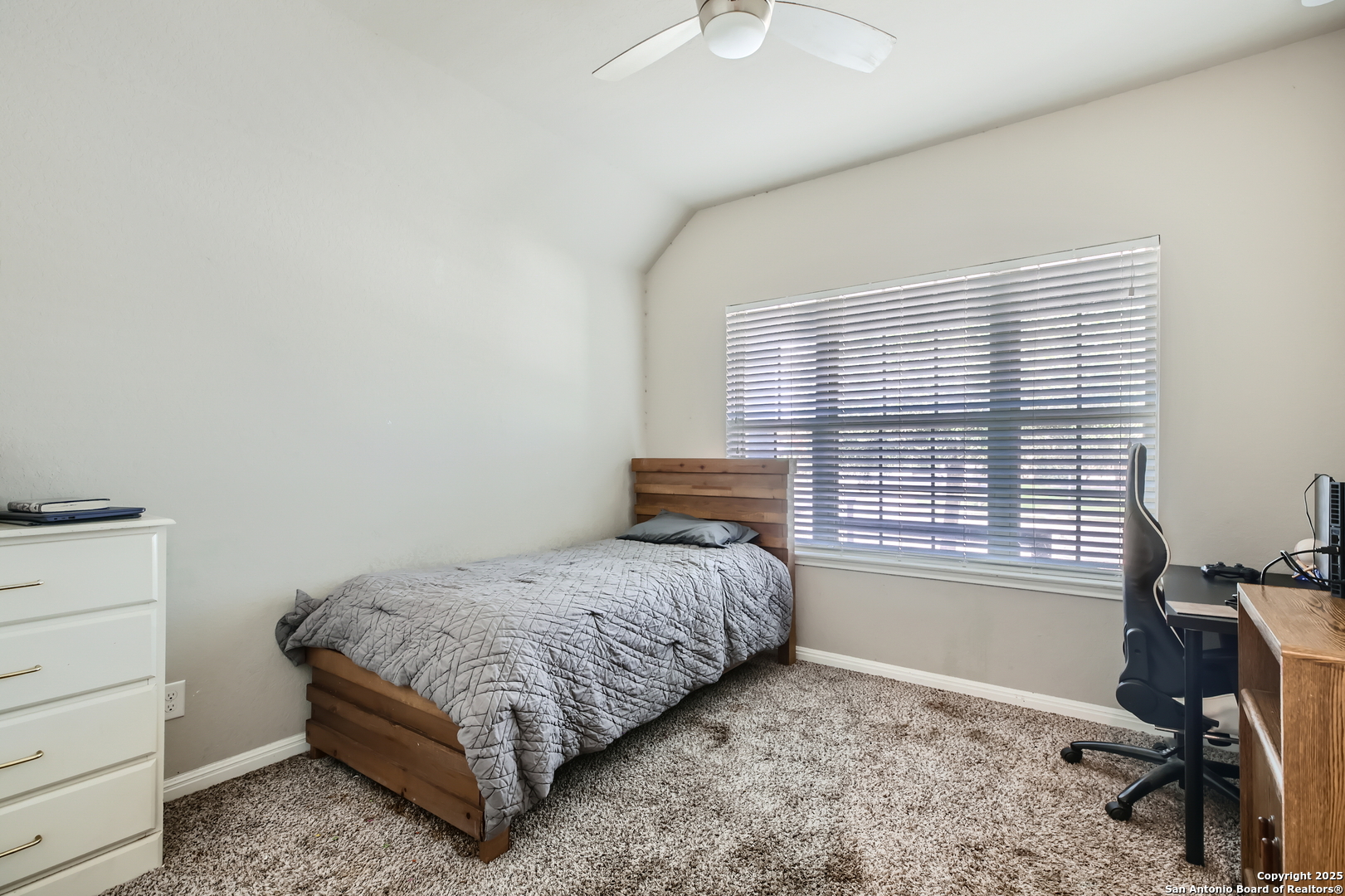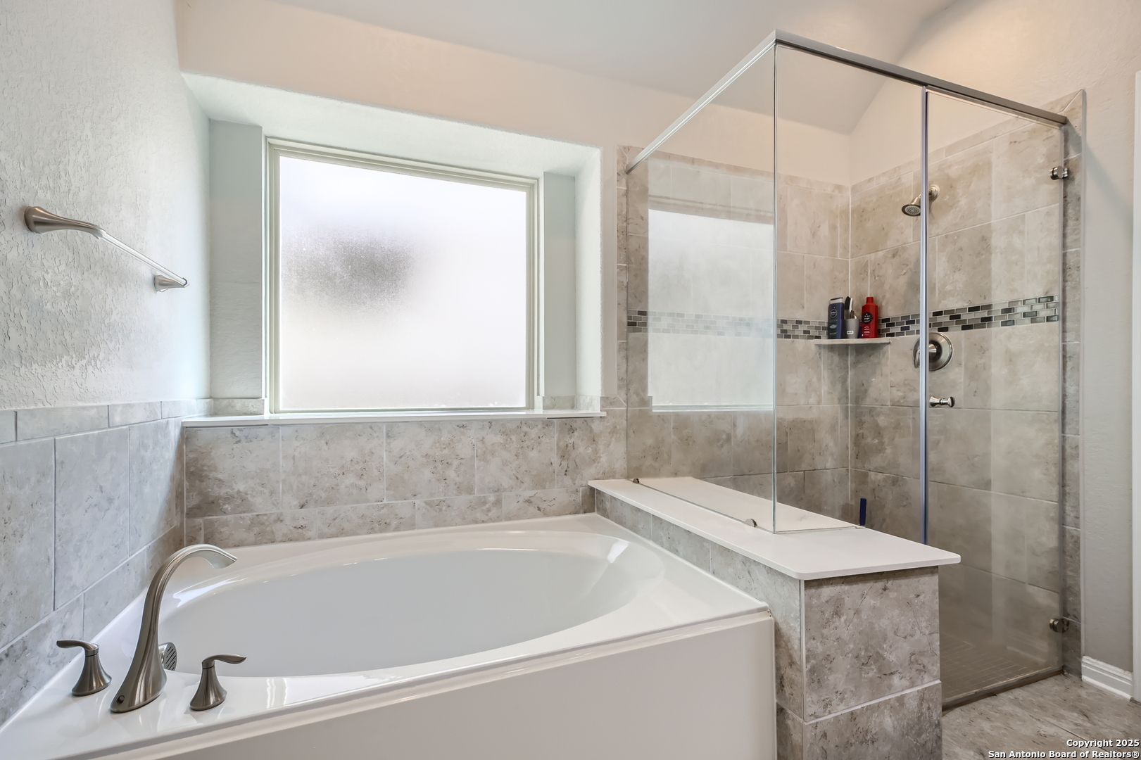 Incredible Opportunity! This beautiful single-story home in The Crossvine features a VA assumable loan with a rare 2.75% interest rate-and you don't need to be a veteran to assume it! Located on a premium corner lot in a quiet cul-de-sac, this 4-bedroom, 3-bathroom home offers a thoughtful layout. The family room features a a wood-burning fireplace, perfect for fall and winter gatherings. The kitchen boasts quartz countertops, a glass tile backsplash, and a large island-ideal for cooking and entertaining.The spacious primary suite includes an en-suite bath with double vanities, a soaking tub, separate shower, and a generous walk-in closet. The second bedroom serves as a mini-suite, complete with its own private bathroom and walk-in closet-perfect for guests or multi-generational living. Additional upgrades include remote-controlled ceiling fans, a water softener, air-filtration system, and a garden shed. The refrigerator, water softener, and shed all convey. Enjoy the covered patio with plenty of backyard space. Located in a top-rated school district, The Crossvine community offers two pools, a pavilion, and year-round HOA-hosted events. Conveniently close to Randolph Air Force Base, IKEA, H-E-B, The Forum Shopping Center, and with an easy commute to downtown San Antonio, Fort Sam Houston, and BAMC. Don't miss this rare find-schedule your tour today!