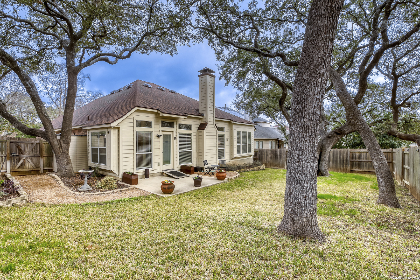Welcome to a wonderfully maintained single story 3-2-2 on a treed corner lot in the desired small gated community of Oakridge Pointe. Light and bright kitchen with gas cooking and granite counters opens to breakfast room overlooking the treed yard. Fireplace with gas logs in the living room for those chilly nights. Spacious primary suite with upgraded walk in tiled shower plus huge closet. generous sized secondary bedrooms. Great storage thru out the home. Garage floor has insulated door, high ceilings and there is a ramped entrance. Storage sheds convey. Neighborhood features park, playground and pool within walking distance of this home. Neighborhood has a gate to walk directly to elementary school too! Come see today!