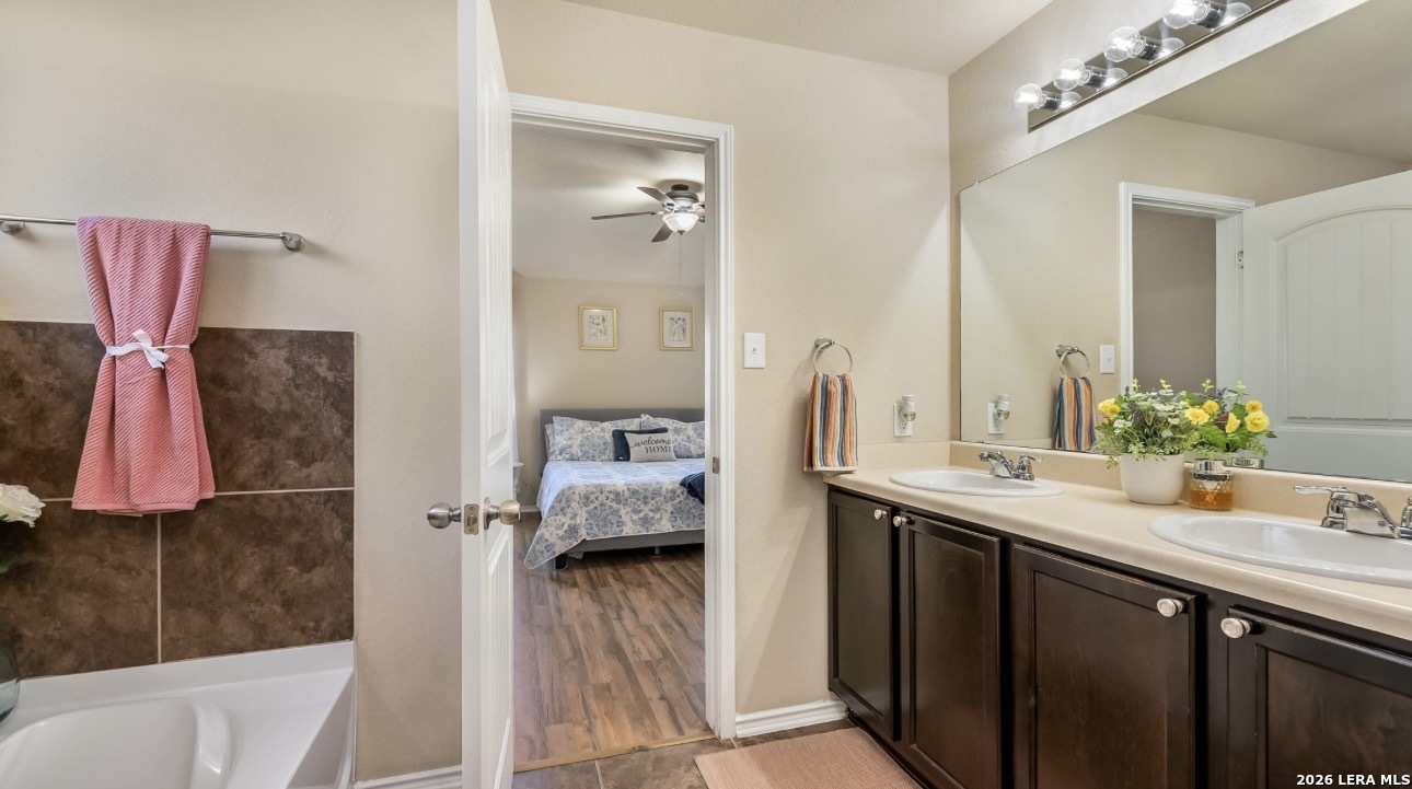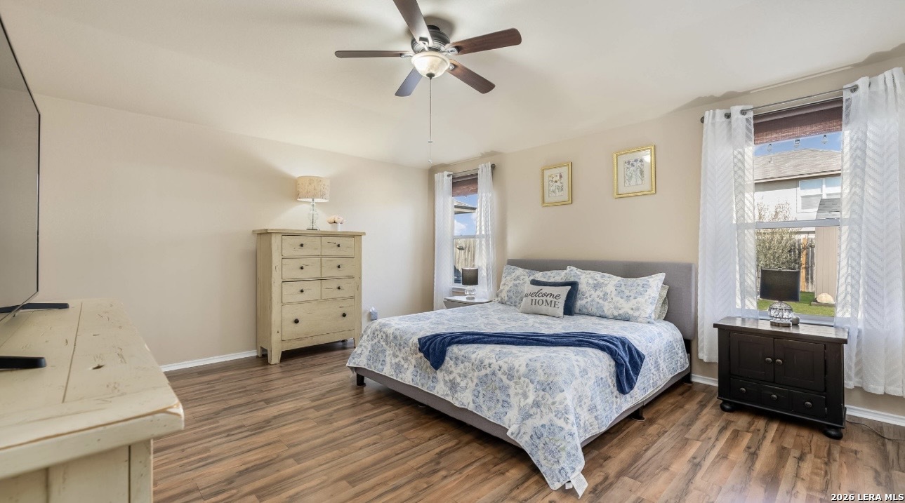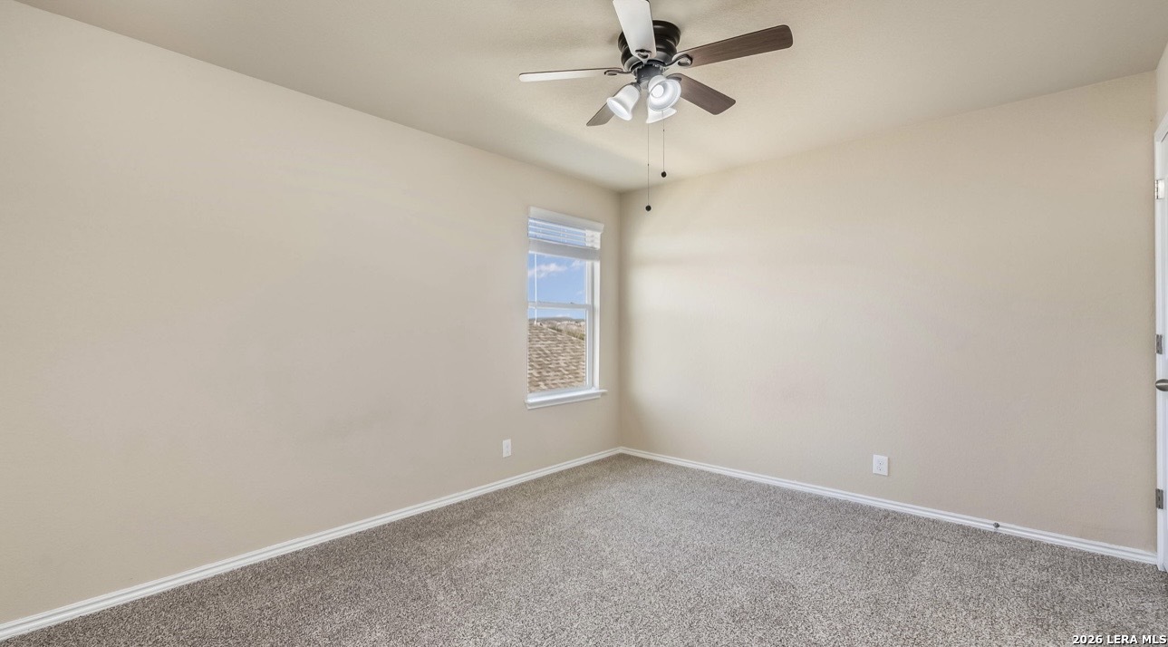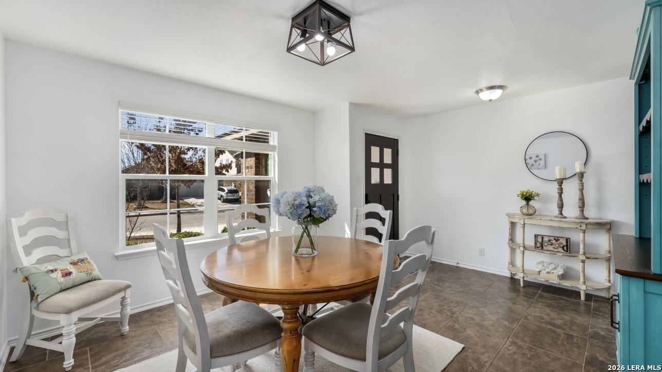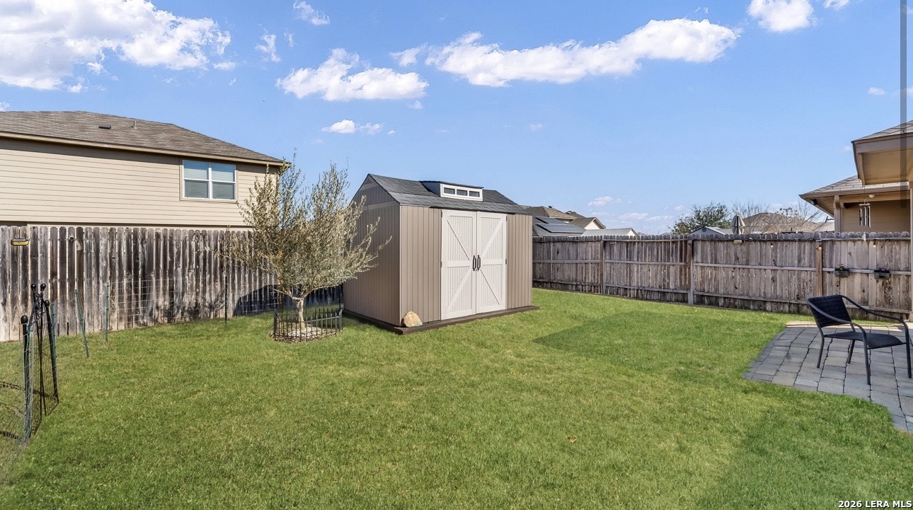 Upgrades, upgrades, and more upgrades! Featuring brand new carpet throughout and luxury vinyl plank flooring in the primary suite, this beautifully updated 5-bedroom, 2.5-bath home offers 2,537 square feet of thoughtfully designed living space. An inviting foyer welcomes you into a formal dining room, convenient powder bath, and an open-concept eat-in kitchen complete with granite countertops, stainless steel appliances, and a BRAND NEW dishwasher and microwave. The kitchen flows seamlessly into a spacious living room filled with natural light and opens to an extended covered patio perfect for entertaining or relaxing outdoors. The private main-floor primary suite serves as a peaceful retreat with a spacious en-suite bath and oversized walk-in closet. Upstairs, you'll find a huge game room, four additional generously sized bedrooms, and a full bath, providing flexibility for family, guests, or home office needs. Additional features include ceiling fans in every room (plus one on the patio), a dedicated generator hookup line, a storage shed, and solar panels for added energy efficiency. Located in a vibrant, amenity-rich community offering two pools, a 24-hour fitness center, playground, splash pad, basketball and tennis courts, fishing pier, walking trails, and a pavilion, this home blends comfort, convenience, and lifestyle in one exceptional package.