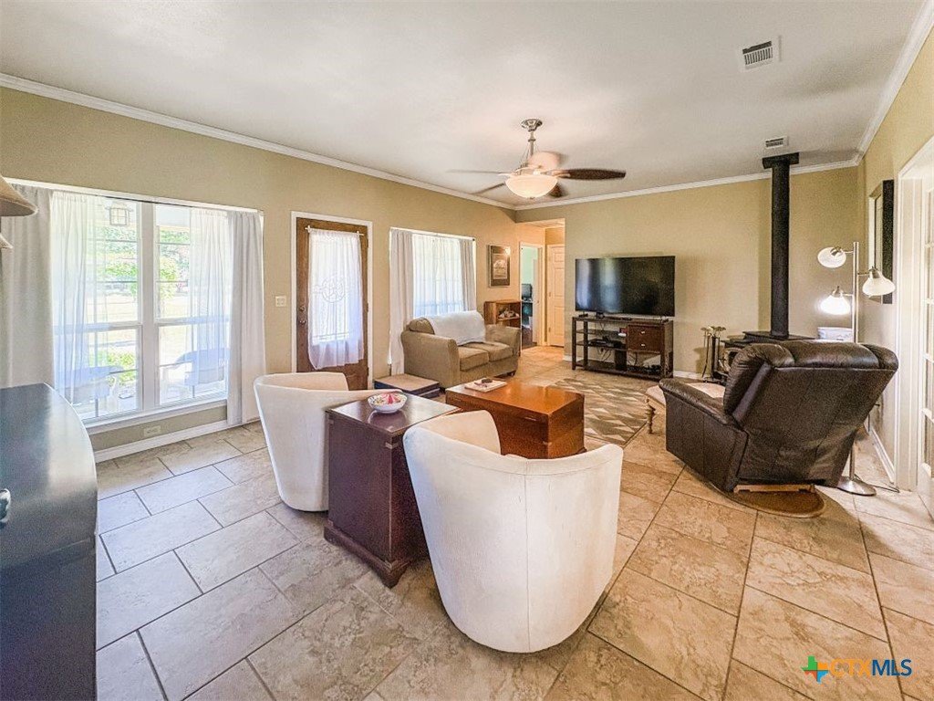 Welcome to a nature lover’s paradise! This meticulously cared-for home offers 3 bedrooms, 2 baths, and a versatile office/flex room within a 1,974sf floor plan. The split-bedroom layout provides privacy, while tile and laminate floors throughout make for easy upkeep—no carpet! A wood-burning stove adds charm and warmth, perfectly complementing the central heating and cooling system. Step outside to relax on the screened-in back porch or explore the many outdoor features that make this property truly special. Property features a pond, rainwater catch system, and thoughtfully designed flower garden to attract hummingbirds, butterflies, and birds. For those who enjoy projects, there’s a shop with lean-to and a separate building for hobbies or could be utilized as a storage building. Animal lovers will appreciate the fenced front yard for pets, along with perimeter fencing and cross-fencing that make the property ready for livestock or wildlife management. With a mix of 60% wooded and 40% open land, and a wildlife exemption already in place, you’ll enjoy both natural beauty and tax benefits. A private water well adds to the property’s self-sufficiency. This home combines comfort, practicality, and the serenity of country living—all in one beautiful setting.