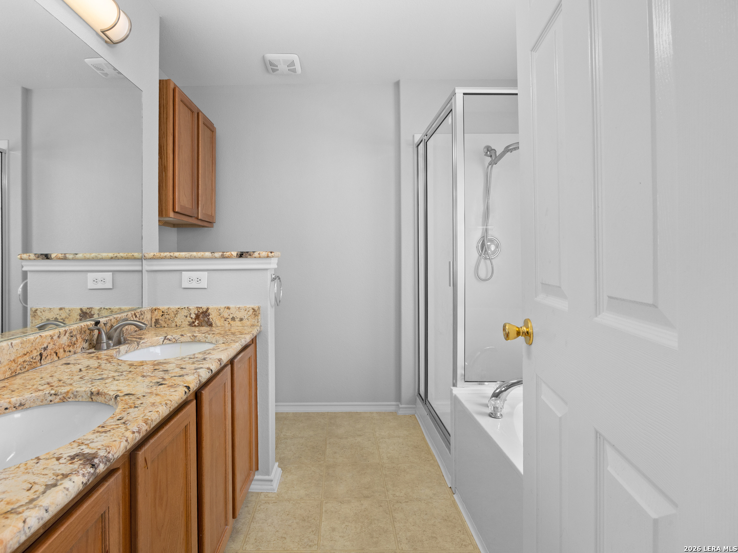 Looking for convenience on your commute AND a great home? This is the one, located just 5 miles from the Forum shopping center, 4 miles from Randolph Air Force base, and surrounded by schools. You'll love the gated neighborhood with 2 entry and exit points. The roads are wide with plenty of space to for 2 vehicles to drive simultaneously. There is a playground area for the kids as well. Home has venetian plaster on most walls which offers a unique take on traditional texture on the walls.