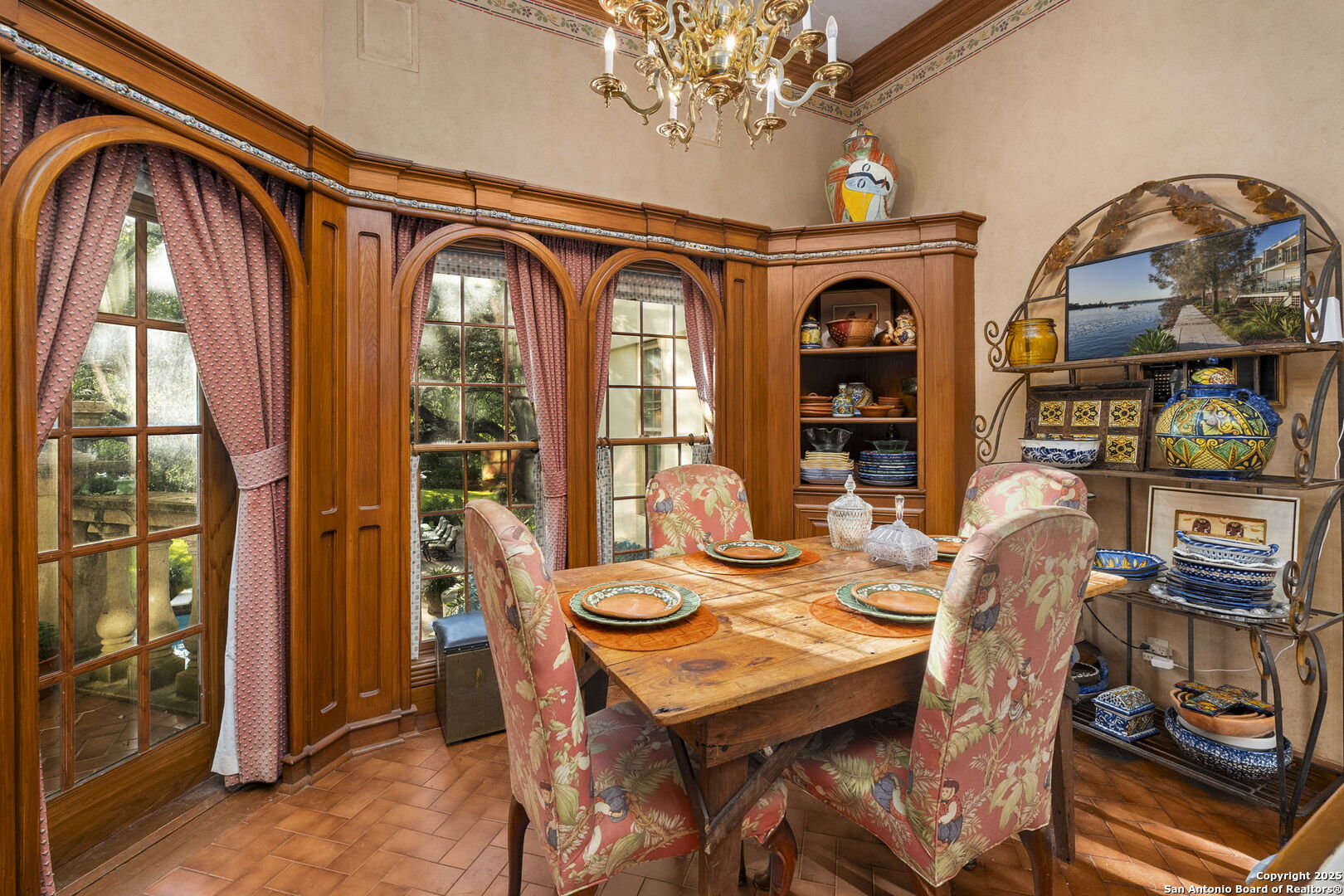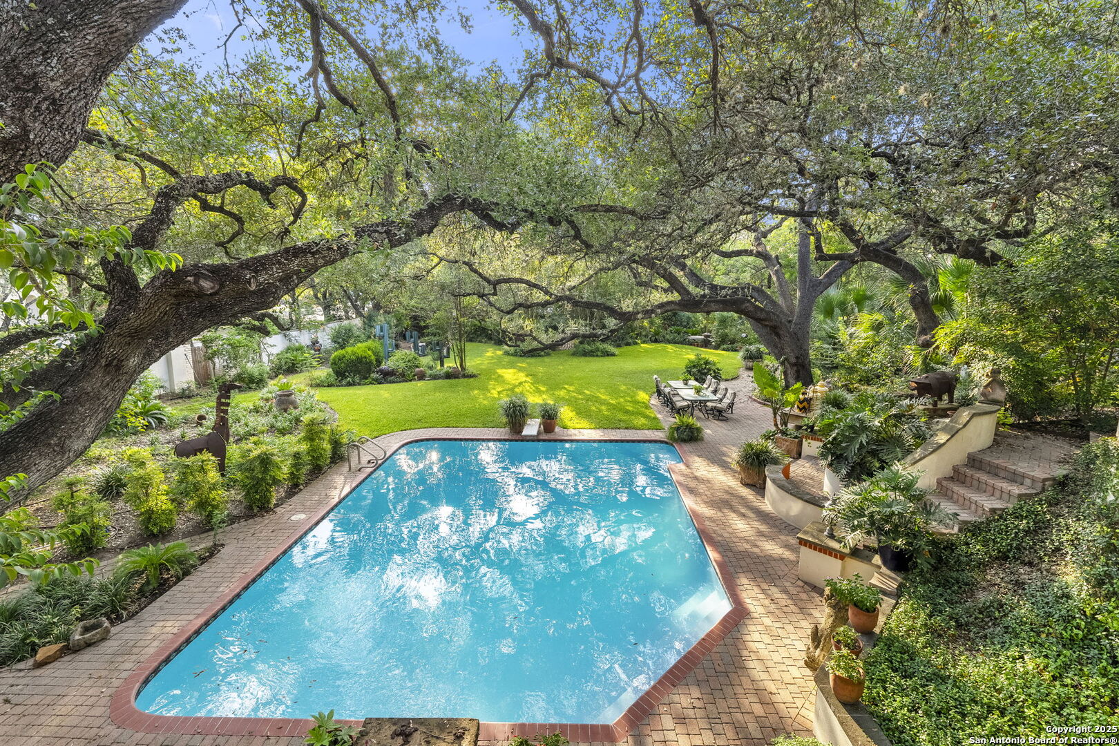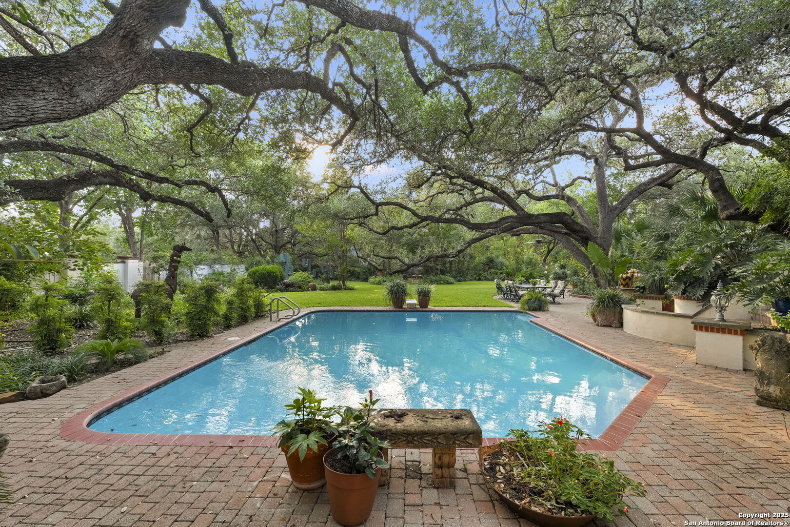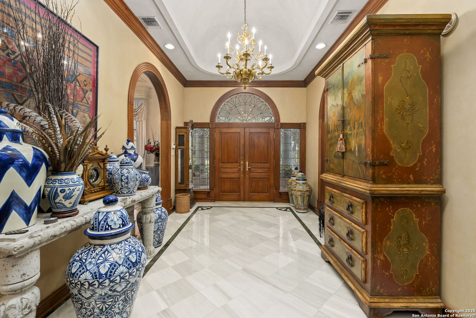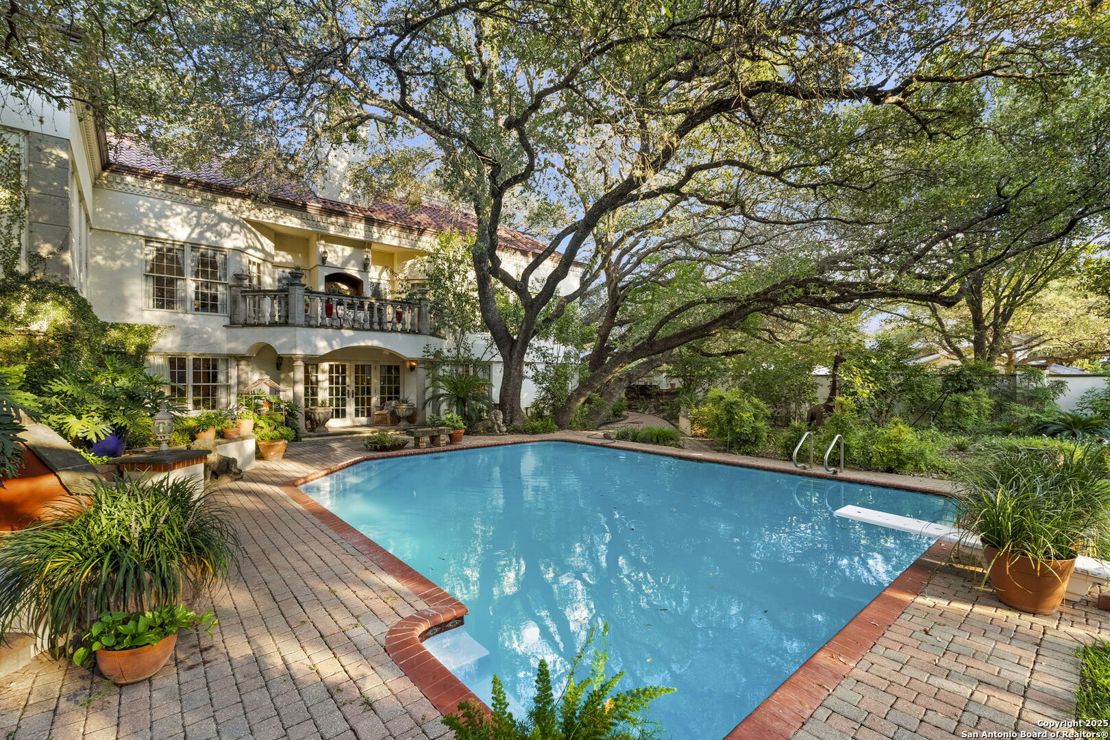 Welcome to a rare architectural gem nestled in the heart of the prestigious Marymont Subdivision. This distinguished estate blends timeless elegance with natural beauty, creating a tranquil retreat unlike any other. Set on an expansive 0.67-acre lot, this property offers unmatched privacy and a serene outdoor escape featuring lush landscaping, a sparkling pool, and a breathtaking four-tiered waterfall-your very own secluded oasis. Inside, the home is a showcase of sophisticated craftsmanship and old-world charm. From rich Italian marble flooring to handcrafted woodwork and vibrant Talavera tile throughout, every detail has been meticulously curated and maintained. Elegant Cantera columns frame the interiors, adding a touch of grandeur and warmth that elevates the living experience. The seamless indoor-outdoor connection is a standout feature. Whether you're enjoying a morning coffee from the kitchen, hosting from the den, or relaxing in the spacious Primary Suite, multiple access points to the balcony invite you to soak in the serene views and soft sounds of your private paradise. This fluid transition between interior and exterior living spaces enhances the home's charm and livability. Don't miss the opportunity to own this irreplaceable sanctuary that effortlessly blends refined luxury with natural beauty-where architecture and nature coexist in perfect harmony.