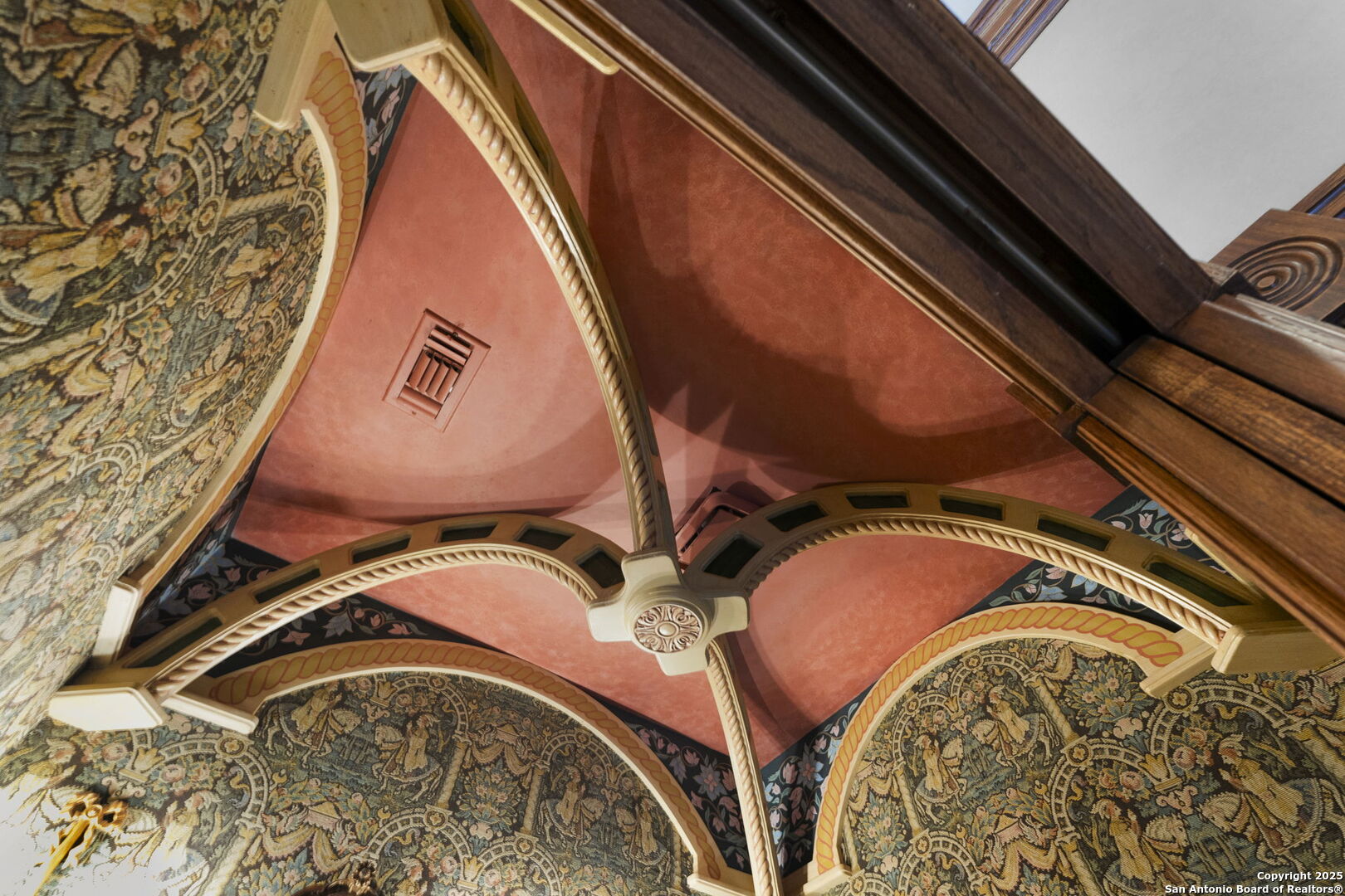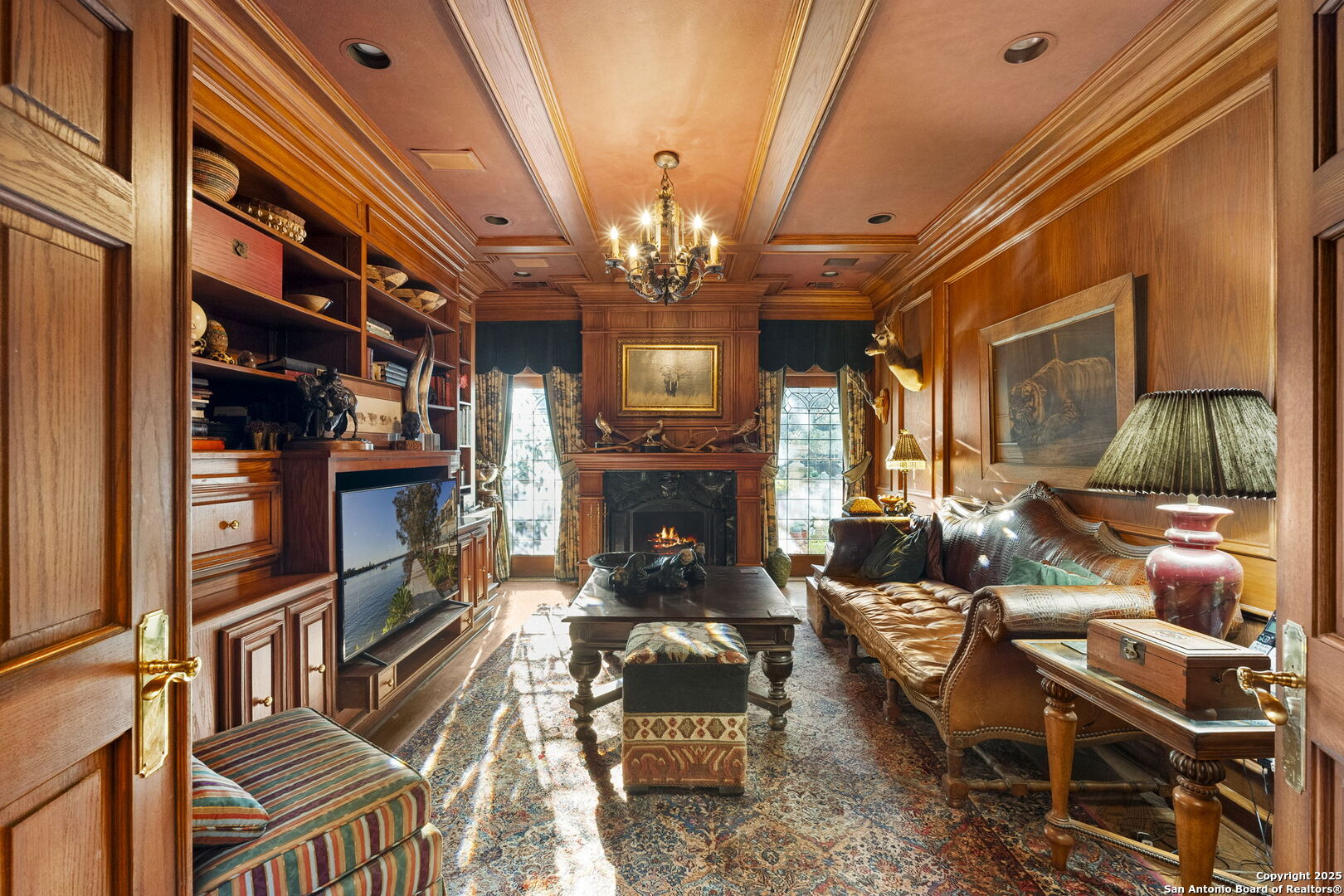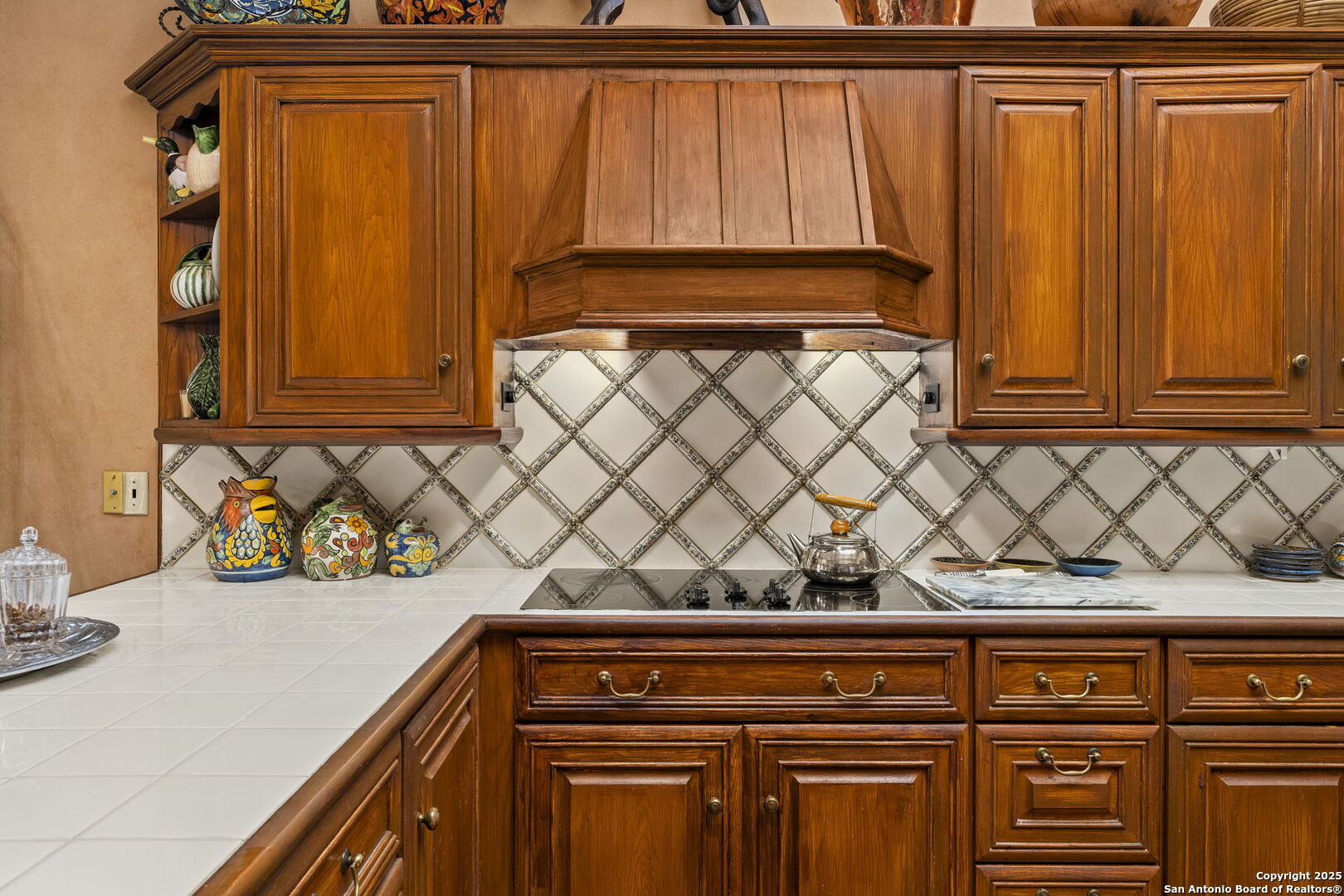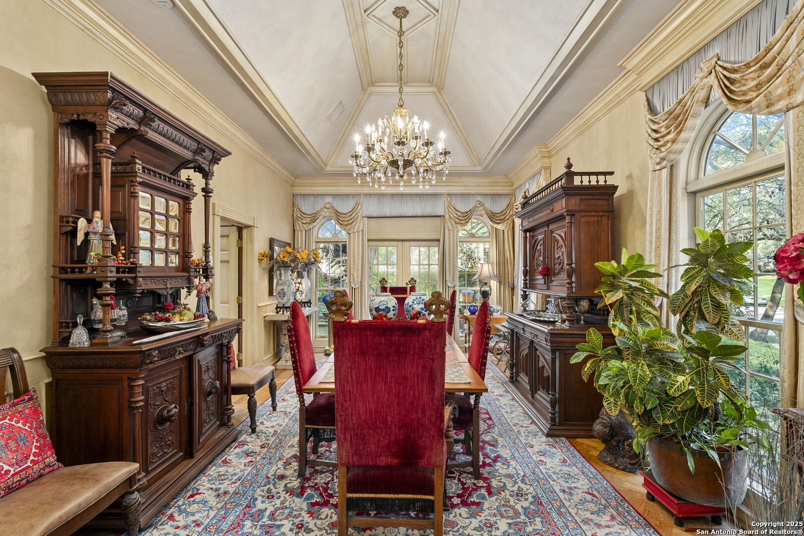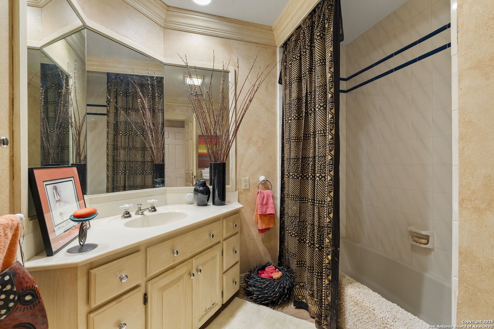 Welcome to a rare architectural gem nestled in the heart of the prestigious Marymont Subdivision. This distinguished estate blends timeless elegance with natural beauty, creating a tranquil retreat unlike any other. Set on an expansive 0.67-acre lot, this property offers unmatched privacy and a serene outdoor escape featuring lush landscaping, a sparkling pool, and a breathtaking four-tiered waterfall-your very own secluded oasis. Inside, the home is a showcase of sophisticated craftsmanship and old-world charm. From rich Italian marble flooring to handcrafted woodwork and vibrant Talavera tile throughout, every detail has been meticulously curated and maintained. Elegant Cantera columns frame the interiors, adding a touch of grandeur and warmth that elevates the living experience. The seamless indoor-outdoor connection is a standout feature. Whether you're enjoying a morning coffee from the kitchen, hosting from the den, or relaxing in the spacious Primary Suite, multiple access points to the balcony invite you to soak in the serene views and soft sounds of your private paradise. This fluid transition between interior and exterior living spaces enhances the home's charm and livability. Don't miss the opportunity to own this irreplaceable sanctuary that effortlessly blends refined luxury with natural beauty-where architecture and nature coexist in perfect harmony.