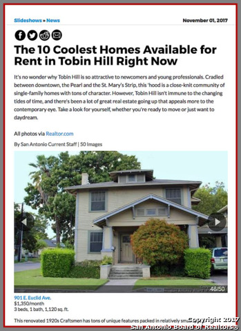 A charming, clean and cute 1920's Craftsman duplex apartment. A wonderful mix of yesterday and today. Spacious 3 bedroom, 1 bath downstairs apartment is 1,122 sqft with beautiful hardwood floors, built-in book shelf, original built-in gun cabinet and cute bench seats on either side of a fire place. Mud room off kitchen has washer and dryer. It is walking distance to the Pearl and the river walk as well as in close proximity to SACC, Fort Sam Houston, Methodist Metropolitan Hospital and downtown.