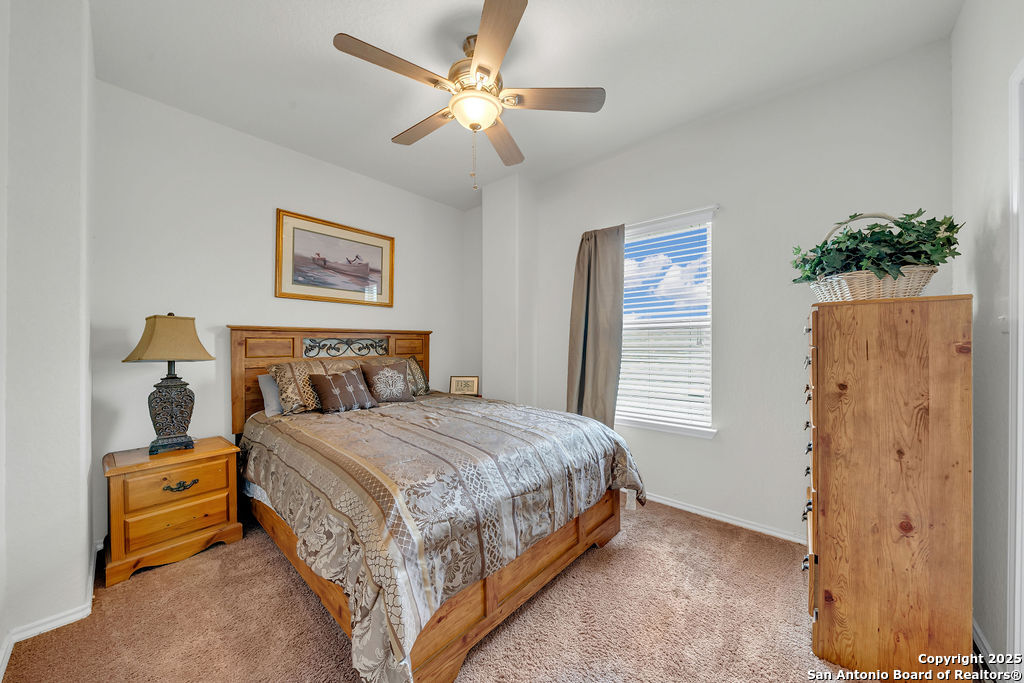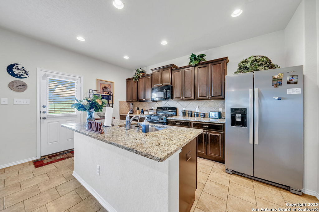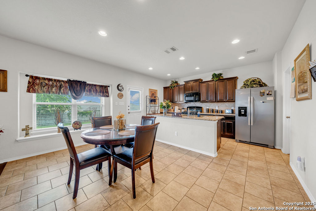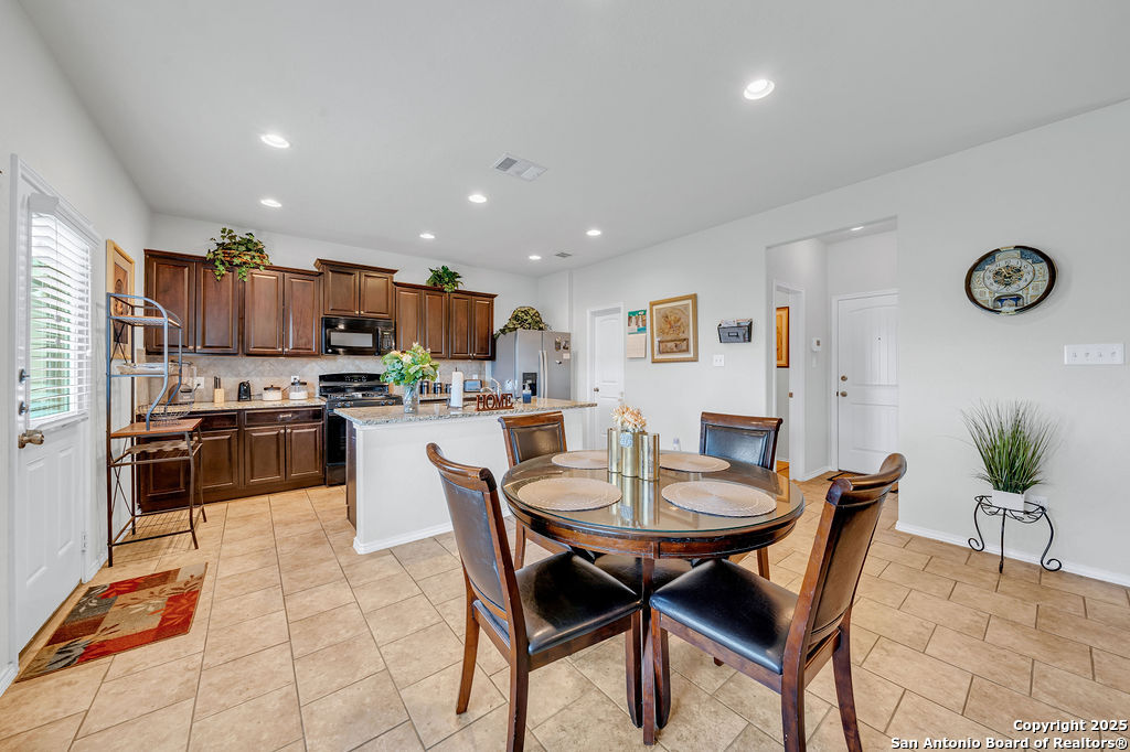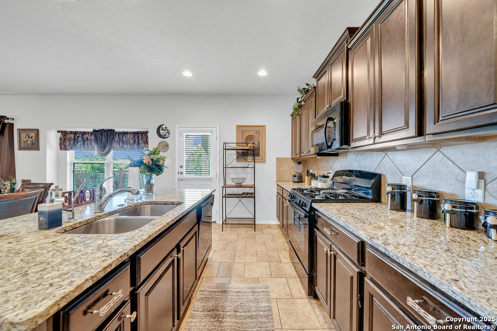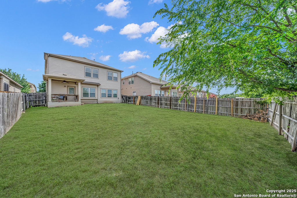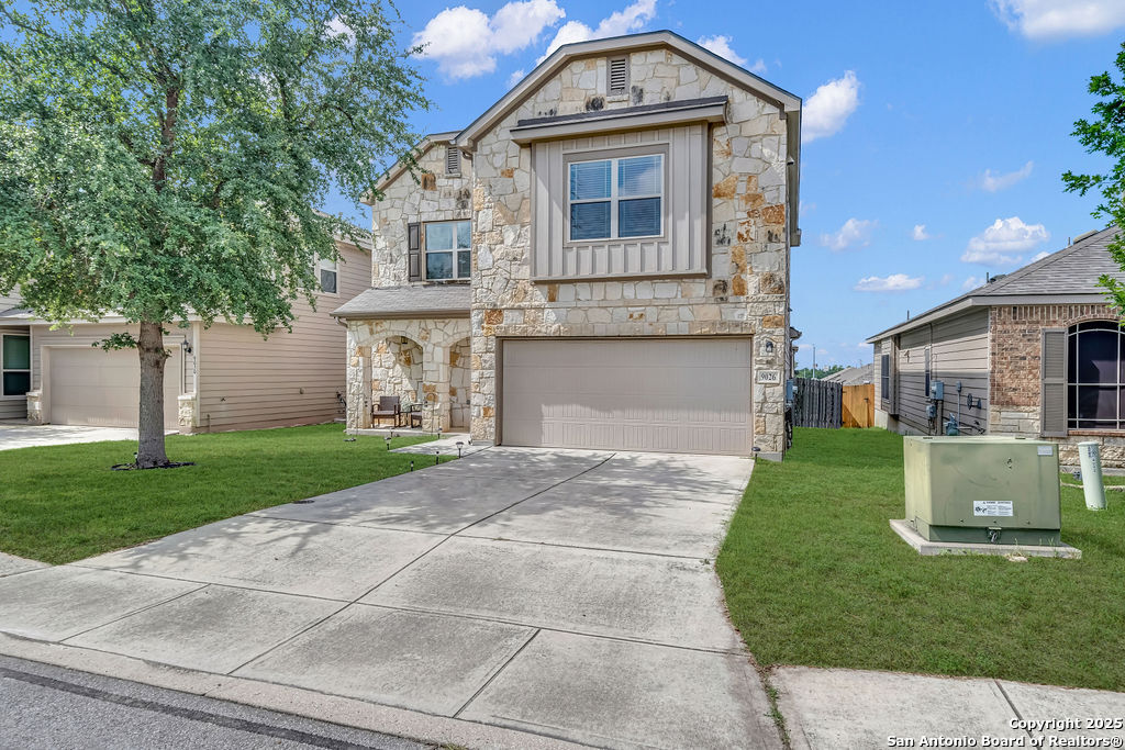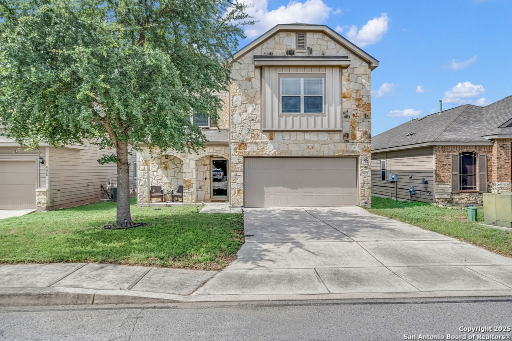 Don't miss the opportunity to tour this charming, spacious 3-bedroom, 2.5-bathroom home in the highly sought-after community of The Parc at Escondido. From the moment you enter, you'll appreciate the welcoming tile entryway that opens into a warm and inviting living and formal dining area, featuring elegant dark wood-look flooring. The heart of the home is the beautifully designed kitchen, complete with granite countertops, GE appliances, a gas stove, a walk-in pantry, and a center island with a breakfast bar perfect for casual meals and entertaining. Enjoy natural light streaming through the large window nook in the dining area, which overlooks a covered patio and an oversized backyard ideal for weekend gatherings or peaceful evenings. Upstairs, discover a thoughtfully designed layout including a versatile loft-style living space, a convenient upstairs laundry room, and spacious bedrooms with walk-in closets. The private primary suite features a spa-like bathroom with dual vanities, a garden tub, a separate shower, and an oversized walk-in closet. Additional upgrades include a water softener system, built-in alarm system, and a full-yard sprinkler system, offering comfort, security, and convenience. The Parc at Escondido offers fantastic amenities such as a community pool, pavilion, tennis court, and basketball court all just steps from your door. Located just 15 minutes from Fort Sam Houston and Randolph Air Force Base, this home is ideal for military and government personnel. Plus, with easy access to I-10, Loop 1604, shopping, and top-rated schools, this home truly has it all.