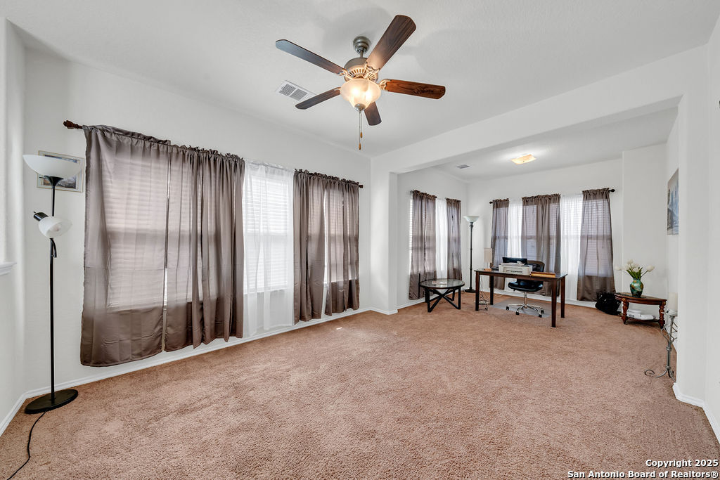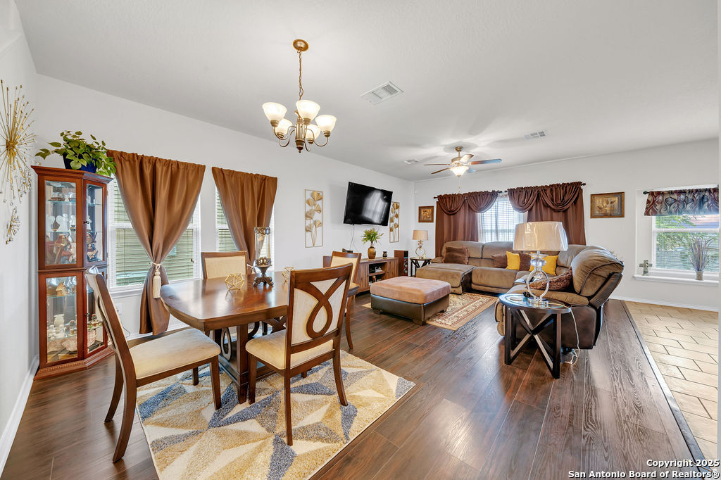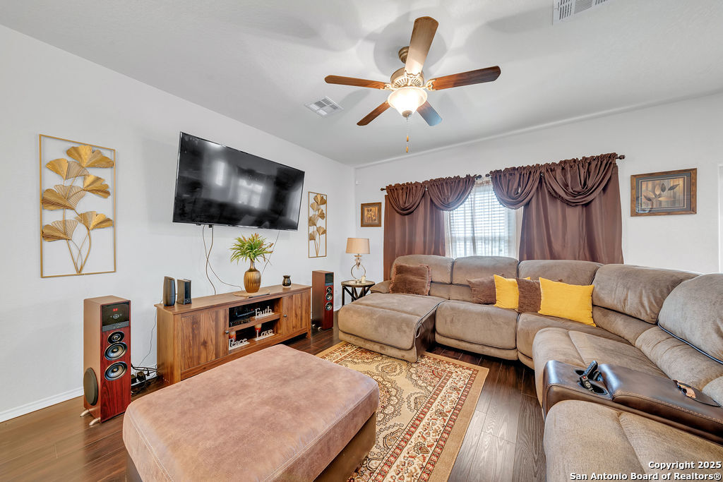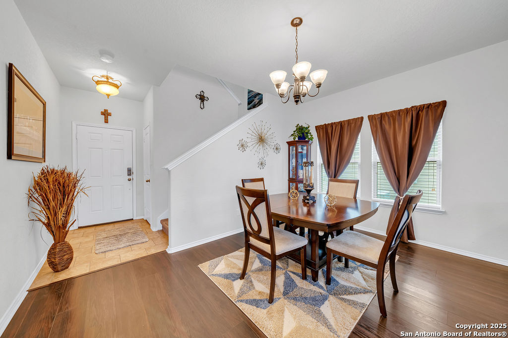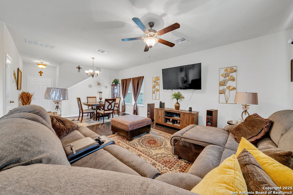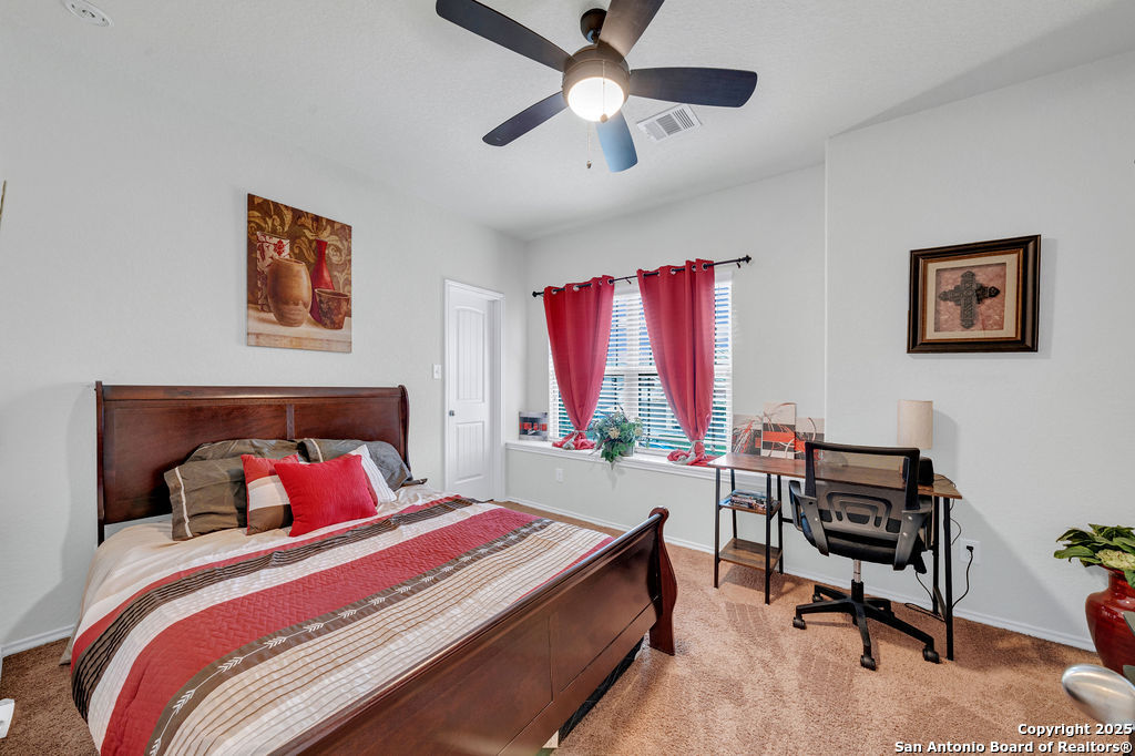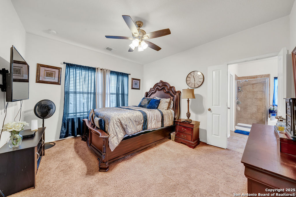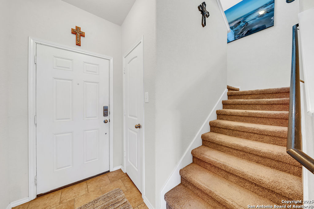 Don't miss the opportunity to tour this charming, spacious 3-bedroom, 2.5-bathroom home in the highly sought-after community of The Parc at Escondido. From the moment you enter, you'll appreciate the welcoming tile entryway that opens into a warm and inviting living and formal dining area, featuring elegant dark wood-look flooring. The heart of the home is the beautifully designed kitchen, complete with granite countertops, GE appliances, a gas stove, a walk-in pantry, and a center island with a breakfast bar perfect for casual meals and entertaining. Enjoy natural light streaming through the large window nook in the dining area, which overlooks a covered patio and an oversized backyard ideal for weekend gatherings or peaceful evenings. Upstairs, discover a thoughtfully designed layout including a versatile loft-style living space, a convenient upstairs laundry room, and spacious bedrooms with walk-in closets. The private primary suite features a spa-like bathroom with dual vanities, a garden tub, a separate shower, and an oversized walk-in closet. Additional upgrades include a water softener system, built-in alarm system, and a full-yard sprinkler system, offering comfort, security, and convenience. The Parc at Escondido offers fantastic amenities such as a community pool, pavilion, tennis court, and basketball court all just steps from your door. Located just 15 minutes from Fort Sam Houston and Randolph Air Force Base, this home is ideal for military and government personnel. Plus, with easy access to I-10, Loop 1604, shopping, and top-rated schools, this home truly has it all.
