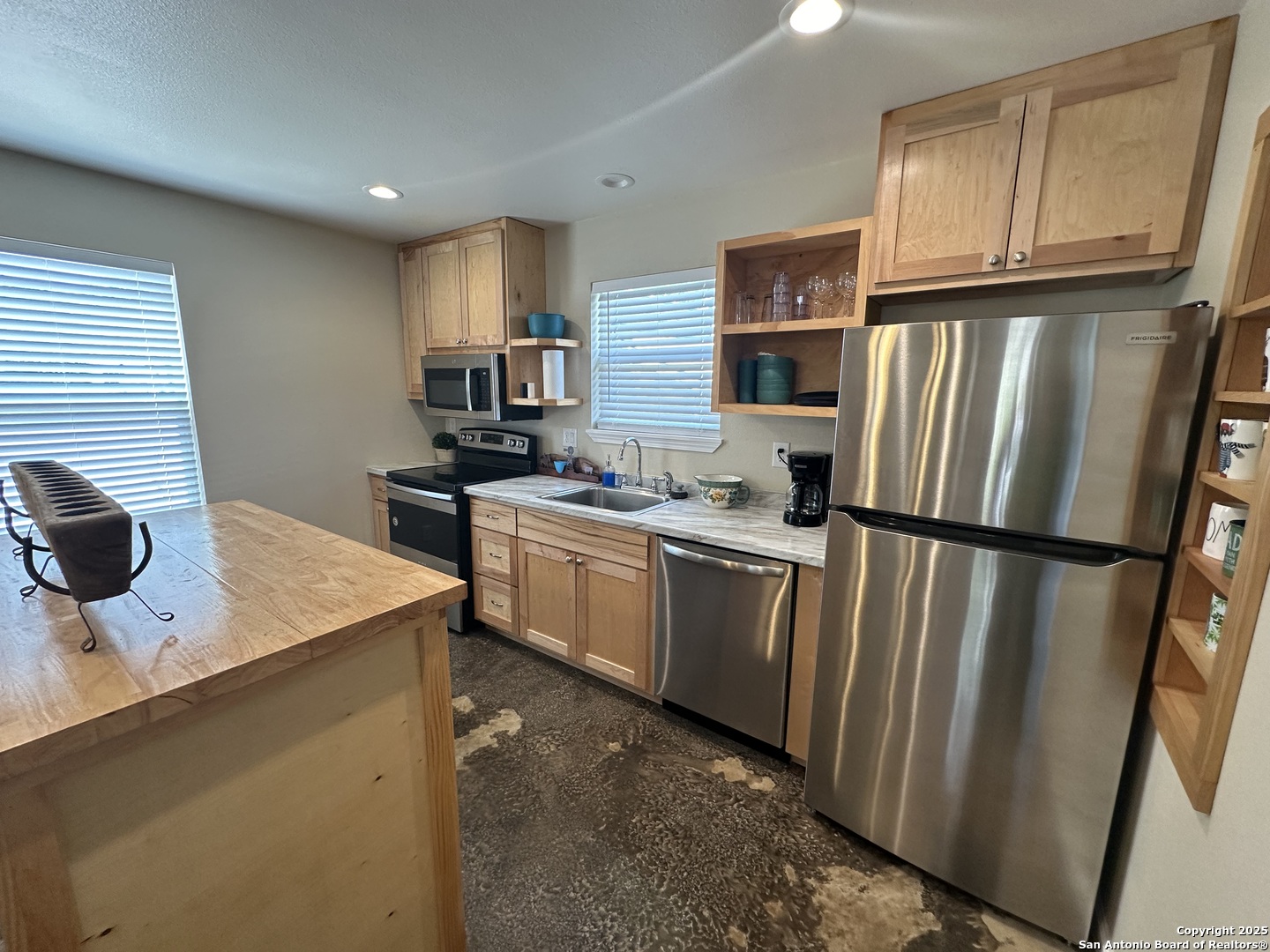 Newly remodeled 2-bedroom 2 bathroom duplex rental. Nice stained concrete floors, updated kitchen. Great location in Bandera city limits - includes water and trash and has washer and dryer in unit.