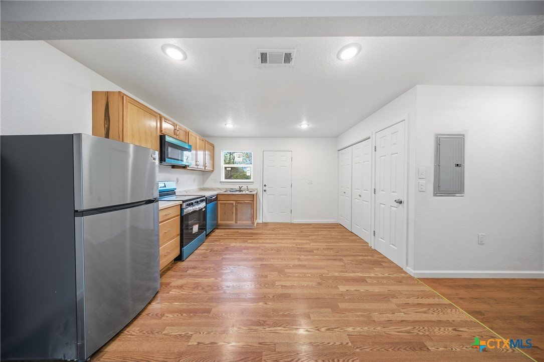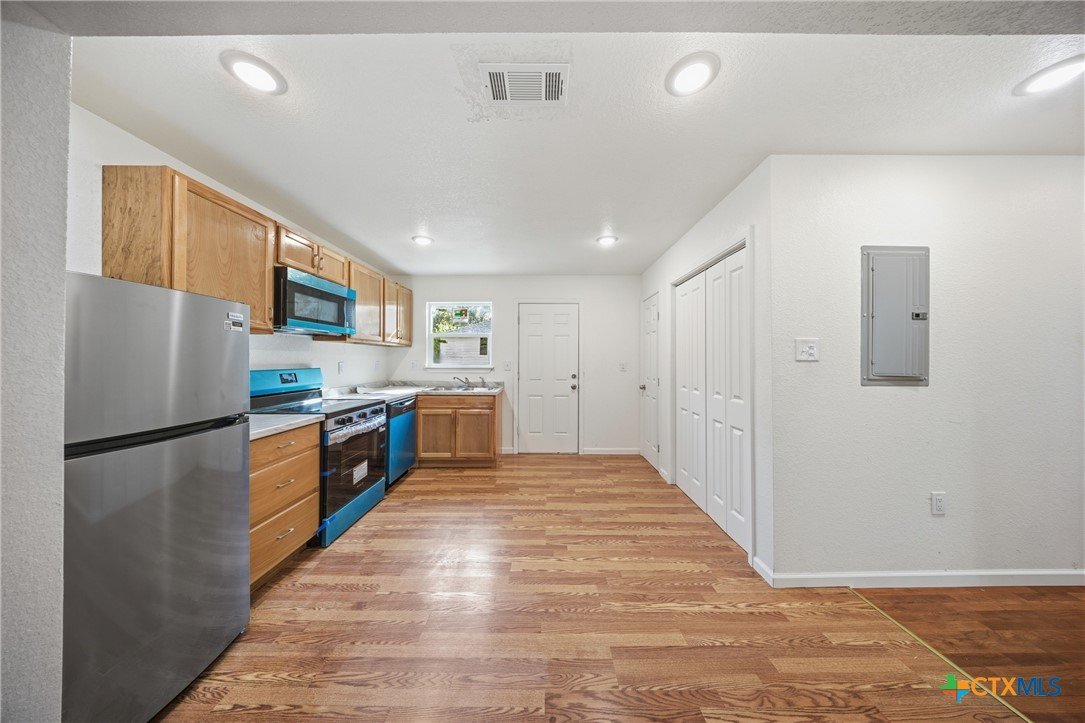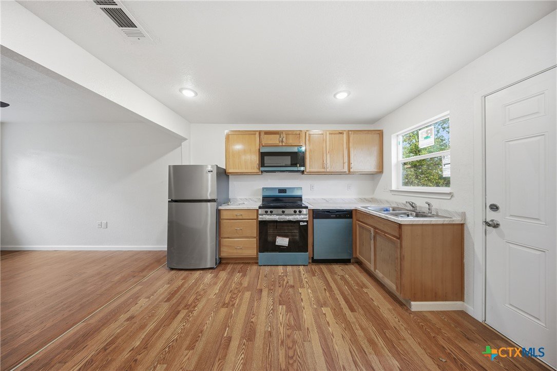 Discover an incredible investment opportunity with this cute duplex, with updates and priced to sell. Whether you’re looking to live on one side and rent out the other, rent both units for strong monthly income, or occupy both sides for multi-generational living, this property offers unmatched flexibility and long-term value. Each side features a spacious 3-bedroom, 2-bath layout with beautifully refreshed interiors. The kitchens have been upgraded with brand-new cabinets, new stainless steel appliances, and the refrigerator conveys. New luxury vinyl plank flooring enhances the kitchen spaces, while the remaining rooms highlight restored wood flooring that adds character and warmth. Additional improvements include updated light fixtures, new vanities, a modern walk-in shower in each primary suite, and a newly installed shower/tub combo in each secondary bathroom. Fresh interior and exterior paint provide a clean, move-in-ready finish. Located in a convenient Killeen area, this duplex places you near everyday necessities such as shopping, dining, entertainment, parks, and schools. Commuters will appreciate the easy access to major roads and the close proximity to Fort Cavazos, making it a desirable rental location for military tenants and civilians alike. Whether you are an investor seeking steady returns or a buyer looking for an affordable way to offset your mortgage, this remodeled duplex is an outstanding opportunity with endless possibilities.