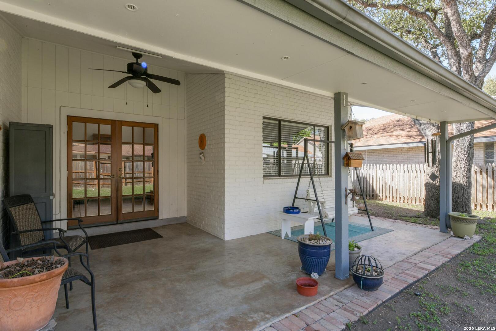 Charming 4-bedroom, 2-bath single-story home in the sought-after Hidden Forest community! Conveniently located near the airport, downtown, shopping & major highways, this home offers both comfort & accessibility. A welcoming front courtyard creates great curb appeal. Inside, you'll find a spacious dining area that can also function as a combined living and dining space. The family room features a corner rounded brick fireplace, built-in cabinetry, vaulted ceiling, and French doors that open to the covered patio. The kitchen is well-appointed with granite countertops, built-in microwave, double ovens, abundant cabinet and counter space, breakfast bar, built-in buffet and a window above the kitchen sink. The spacious breakfast nook adds even more room for everyday dining. The primary suite offers separate vanities, relaxing tub, separate shower, & multiple closets for excellent storage. Parital sprinkler system - backyard only.
