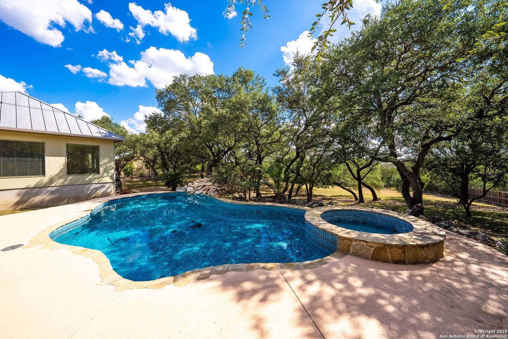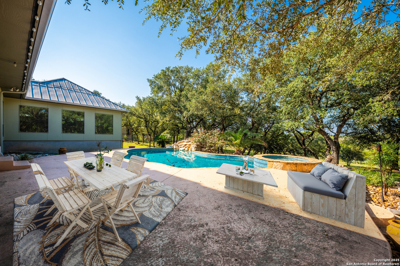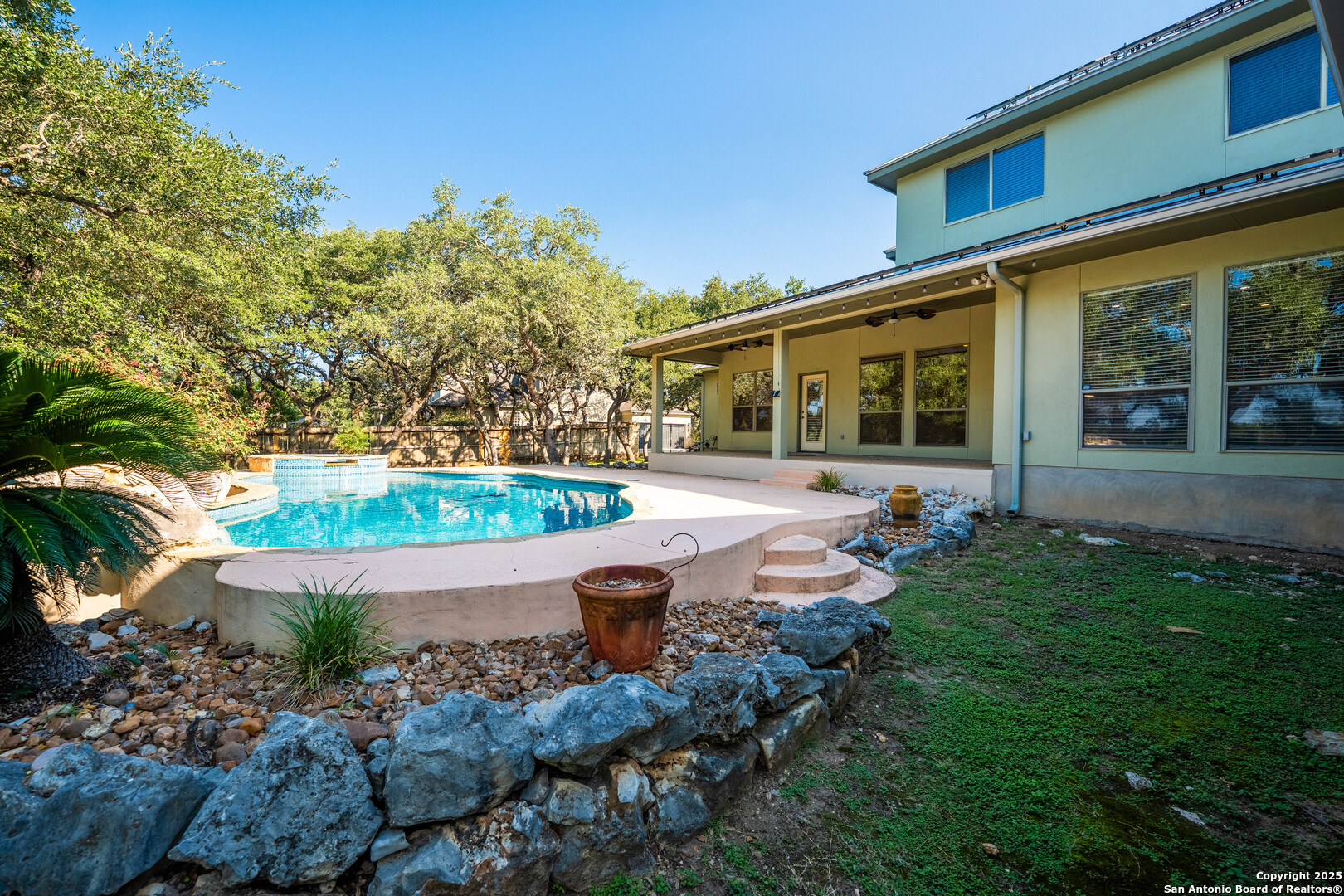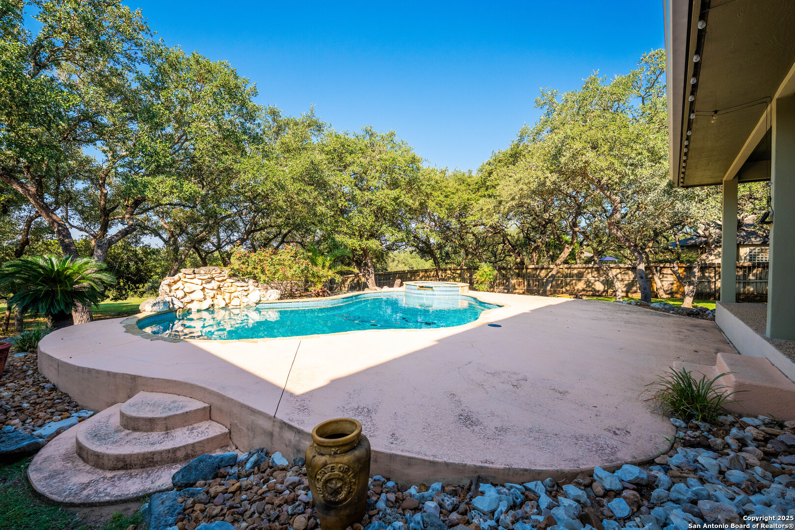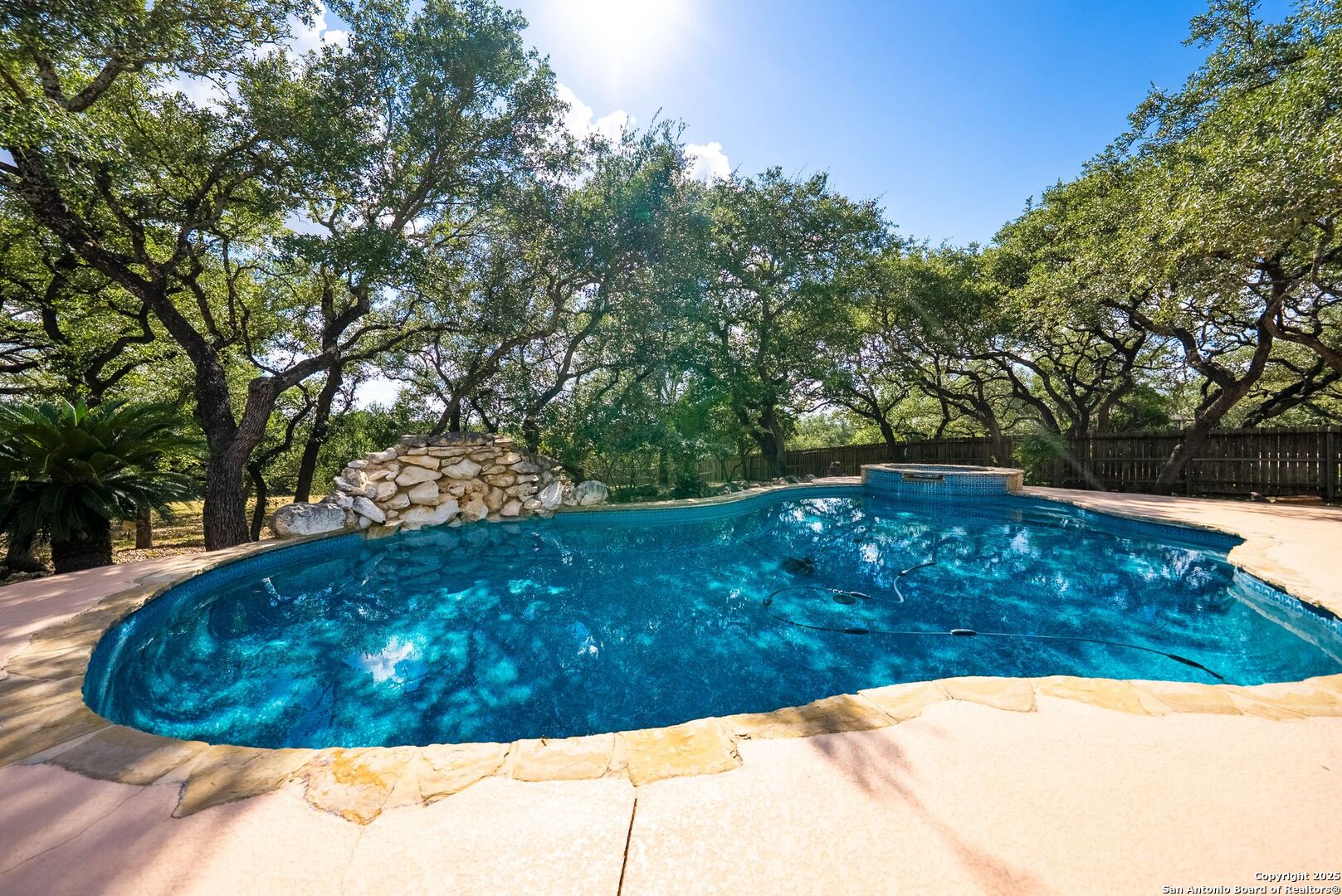 Custom home by Mann Custom Homes. Located in The Forest of Stone Oak sitting on .86 acres which backs up to a dense wooded area. The outdoor area is a true paradise with a pool and spa surrounded by mature trees. The interior, features an open concept where the kitchen opens to a reading area with a fireplace, breakfast area, and family room all of which features slate tile flooring. The flooring in the remainder of the home is Hand-scraped & Distressed Hickory-hardwood. As you enter the home you are located in second living room looking through oversized windows which overlook a parklike, outdoor paradise. The home is roughly 4272 s.f., and features 4 bedrooms, 3.5 bath, a Study, 2 Living rooms, 2 Game rooms-1 upstairs, along with 3 bedrooms. The kitchen offers custom cabinets, granite countertops, double ovens and SS appliances. This amazing space can accommodate a family of all sizes, is perfect for entertaining, and Work-from-Home space for a number of people. Enjoy the privacy of this home yet minutes from school, shopping, and outdoors adventures and entertainment. In addition, you are only 30 minutes from downtown where you find yourself strolling the Historic areas of San Antonio and the Riverwalk.