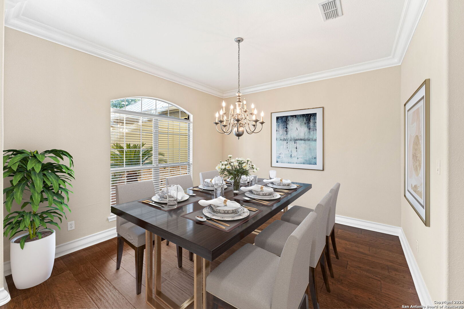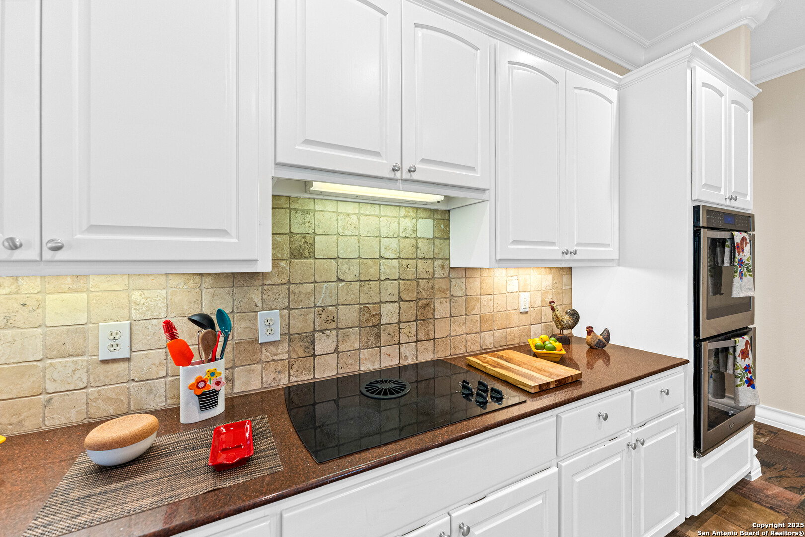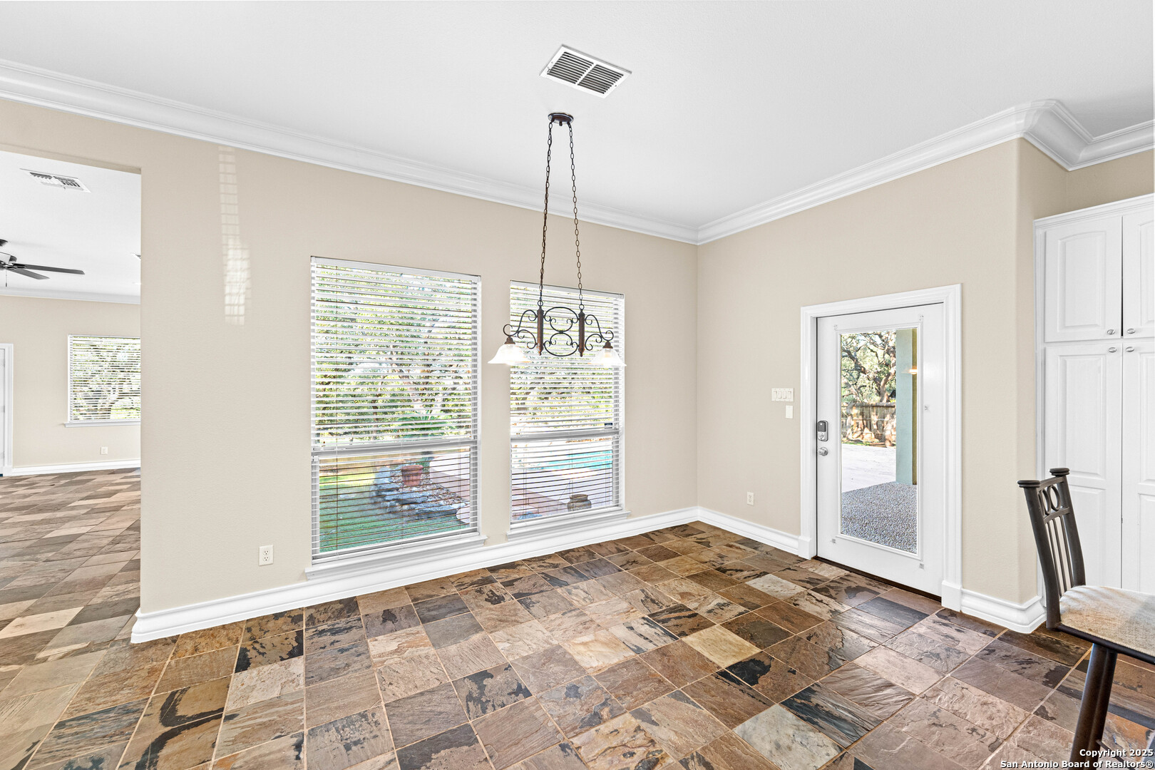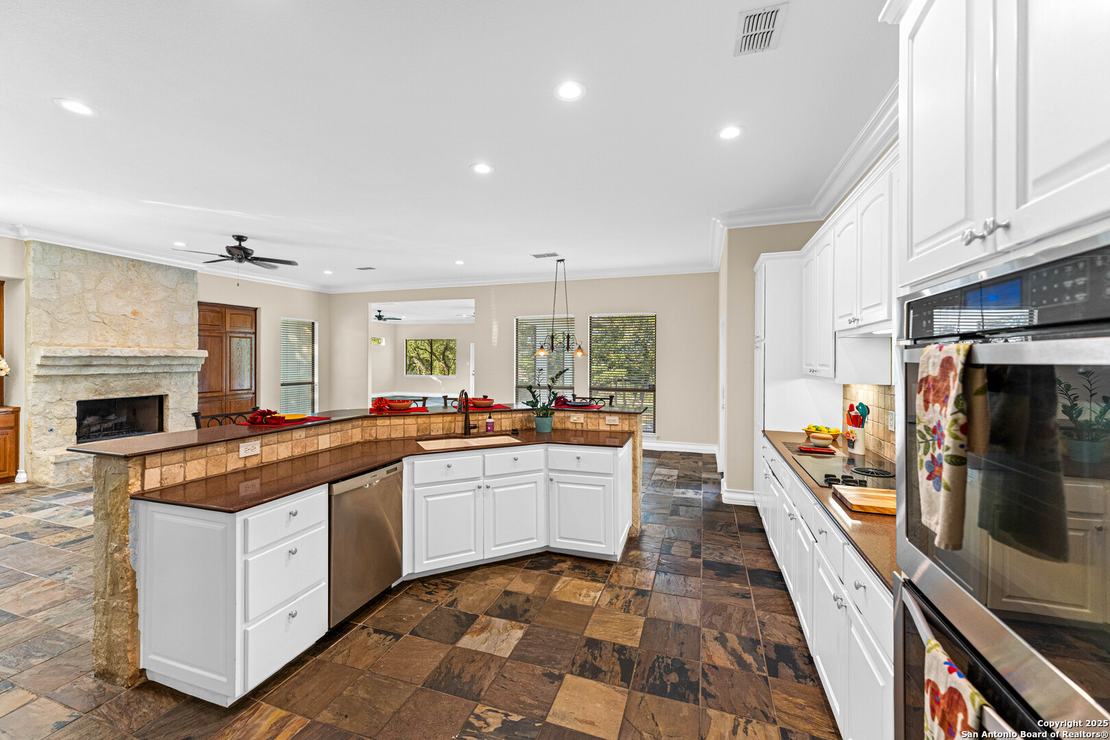 Custom home by Mann Custom Homes. Located in The Forest of Stone Oak sitting on .86 acres which backs up to a dense wooded area. The outdoor area is a true paradise with a pool and spa surrounded by mature trees. The interior, features an open concept where the kitchen opens to a reading area with a fireplace, breakfast area, and family room all of which features slate tile flooring. The flooring in the remainder of the home is Hand-scraped & Distressed Hickory-hardwood. As you enter the home you are located in second living room looking through oversized windows which overlook a parklike, outdoor paradise. The home is roughly 4272 s.f., and features 4 bedrooms, 3.5 bath, a Study, 2 Living rooms, 2 Game rooms-1 upstairs, along with 3 bedrooms. The kitchen offers custom cabinets, granite countertops, double ovens and SS appliances. This amazing space can accommodate a family of all sizes, is perfect for entertaining, and Work-from-Home space for a number of people. Enjoy the privacy of this home yet minutes from school, shopping, and outdoors adventures and entertainment. In addition, you are only 30 minutes from downtown where you find yourself strolling the Historic areas of San Antonio and the Riverwalk.