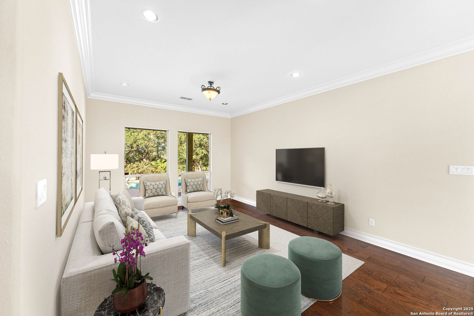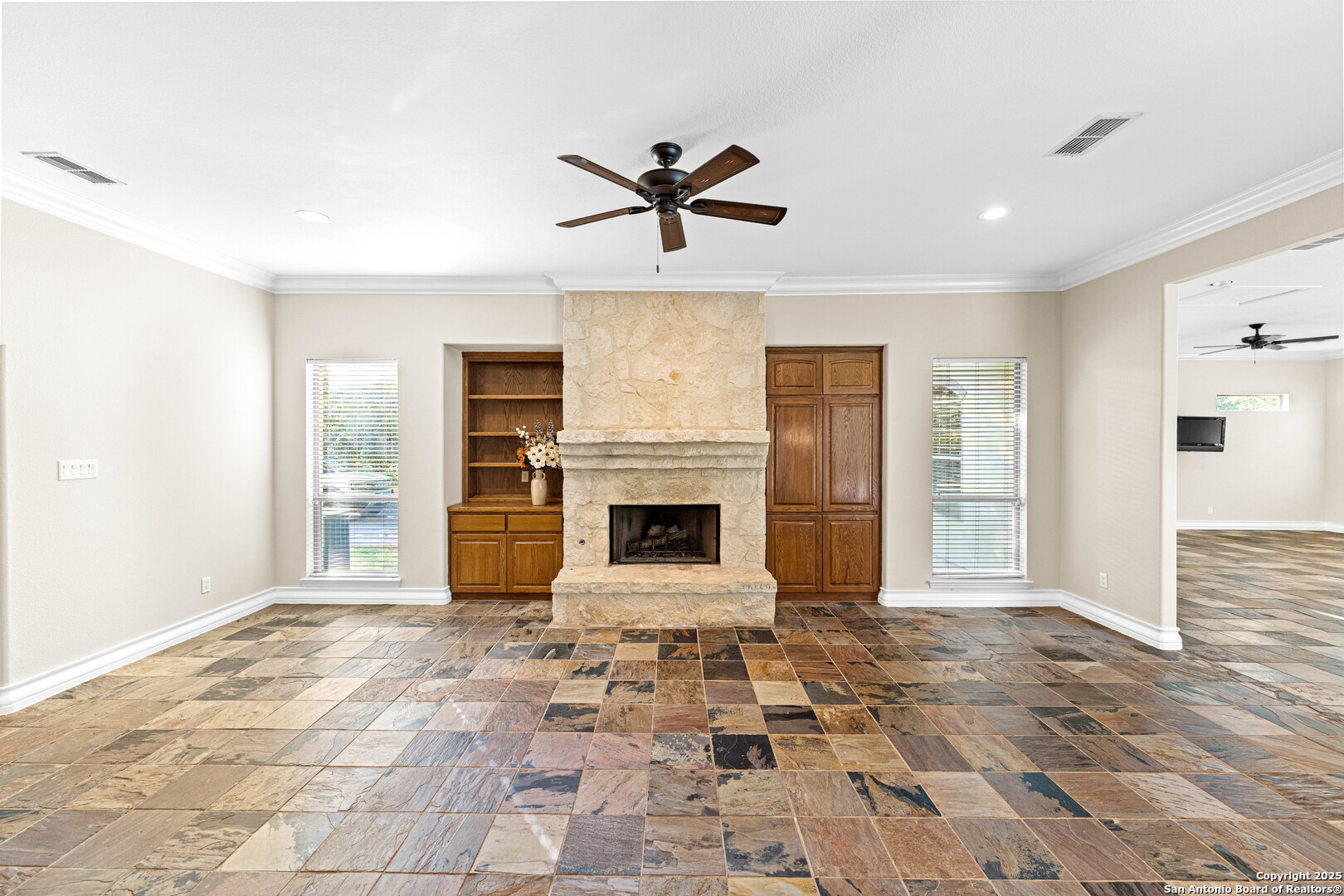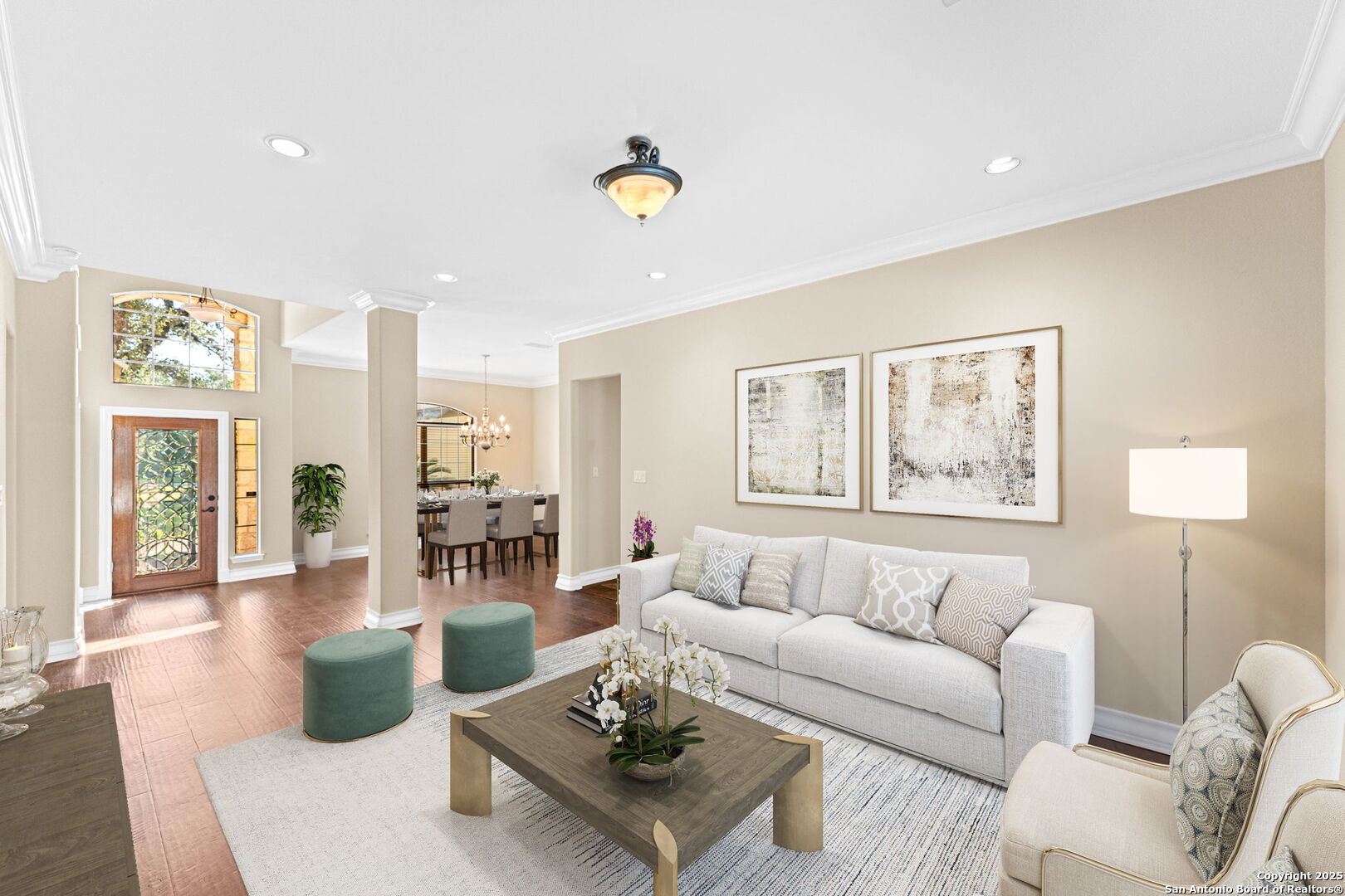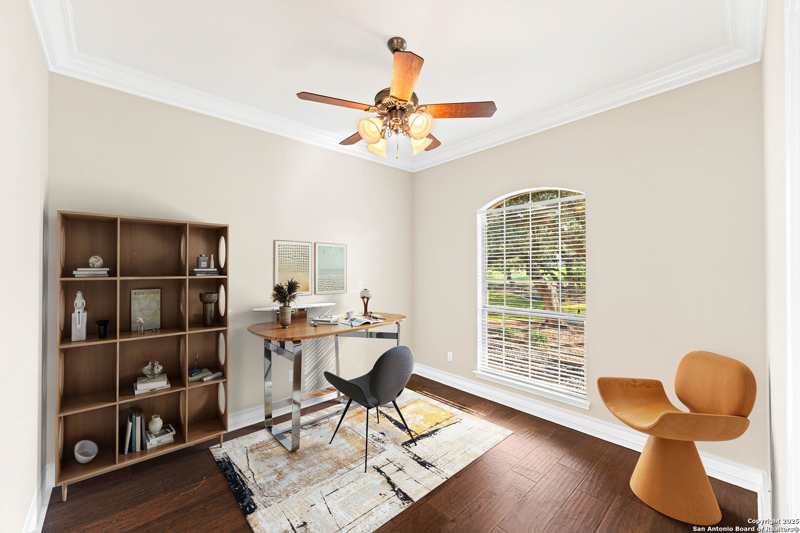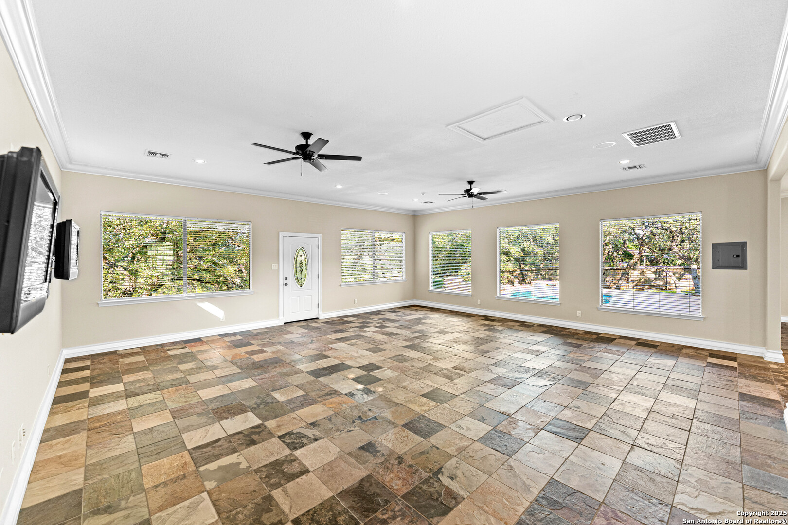 Custom home by Mann Custom Homes. Located in The Forest of Stone Oak sitting on .86 acres which backs up to a dense wooded area. The outdoor area is a true paradise with a pool and spa surrounded by mature trees. The interior, features an open concept where the kitchen opens to a reading area with a fireplace, breakfast area, and family room all of which features slate tile flooring. The flooring in the remainder of the home is Hand-scraped & Distressed Hickory-hardwood. As you enter the home you are located in second living room looking through oversized windows which overlook a parklike, outdoor paradise. The home is roughly 4272 s.f., and features 4 bedrooms, 3.5 bath, a Study, 2 Living rooms, 2 Game rooms-1 upstairs, along with 3 bedrooms. The kitchen offers custom cabinets, granite countertops, double ovens and SS appliances. This amazing space can accommodate a family of all sizes, is perfect for entertaining, and Work-from-Home space for a number of people. Enjoy the privacy of this home yet minutes from school, shopping, and outdoors adventures and entertainment. In addition, you are only 30 minutes from downtown where you find yourself strolling the Historic areas of San Antonio and the Riverwalk.