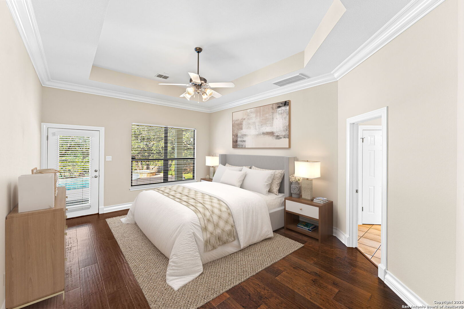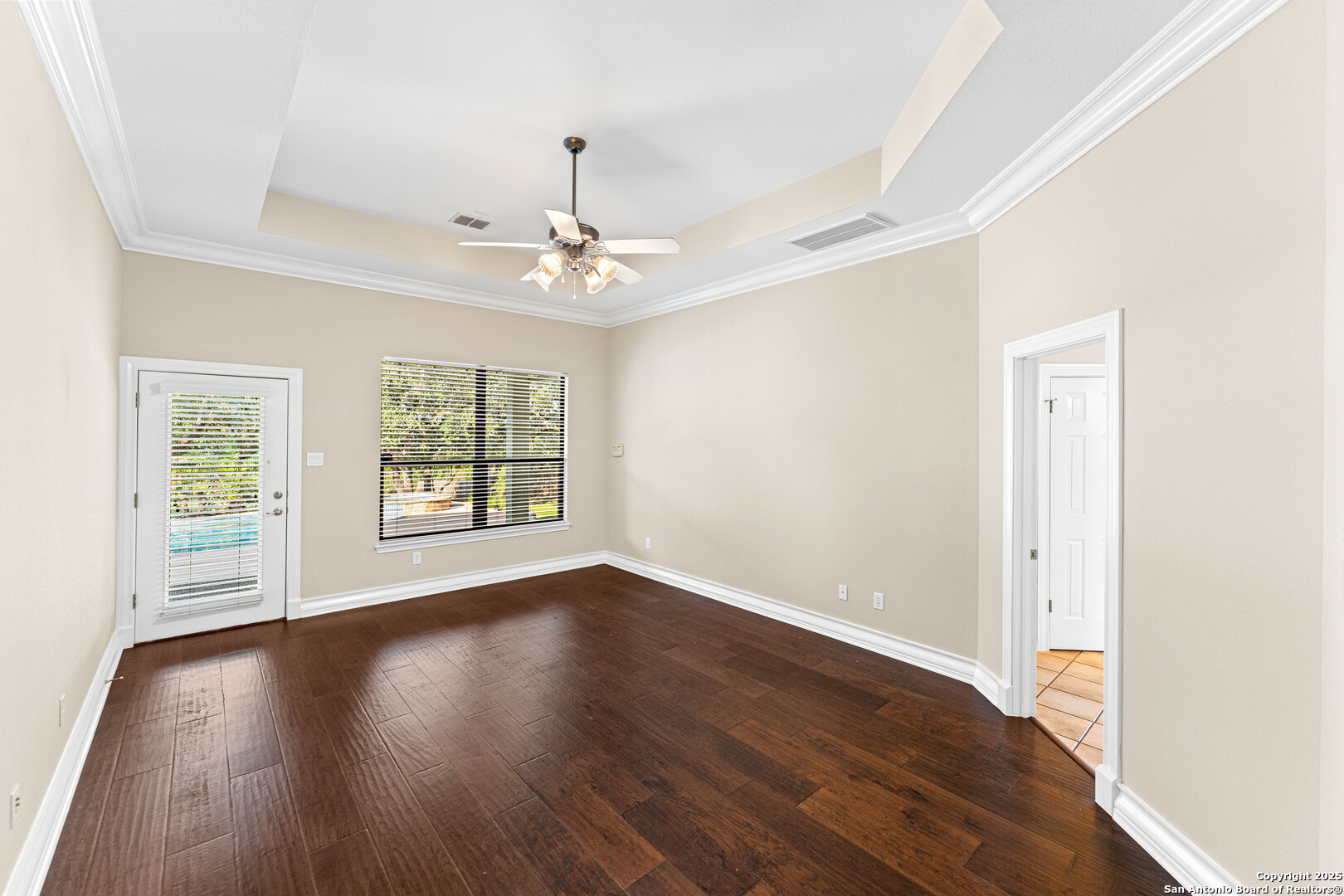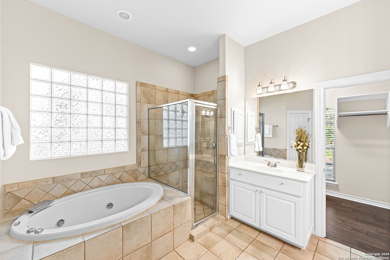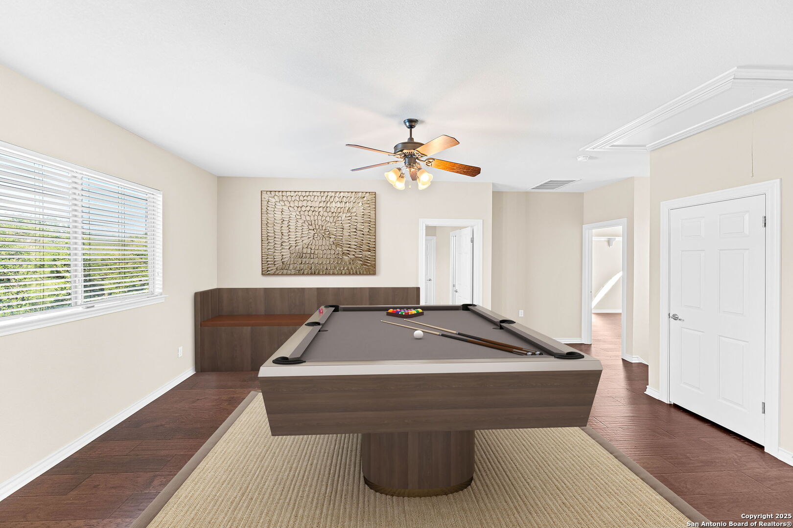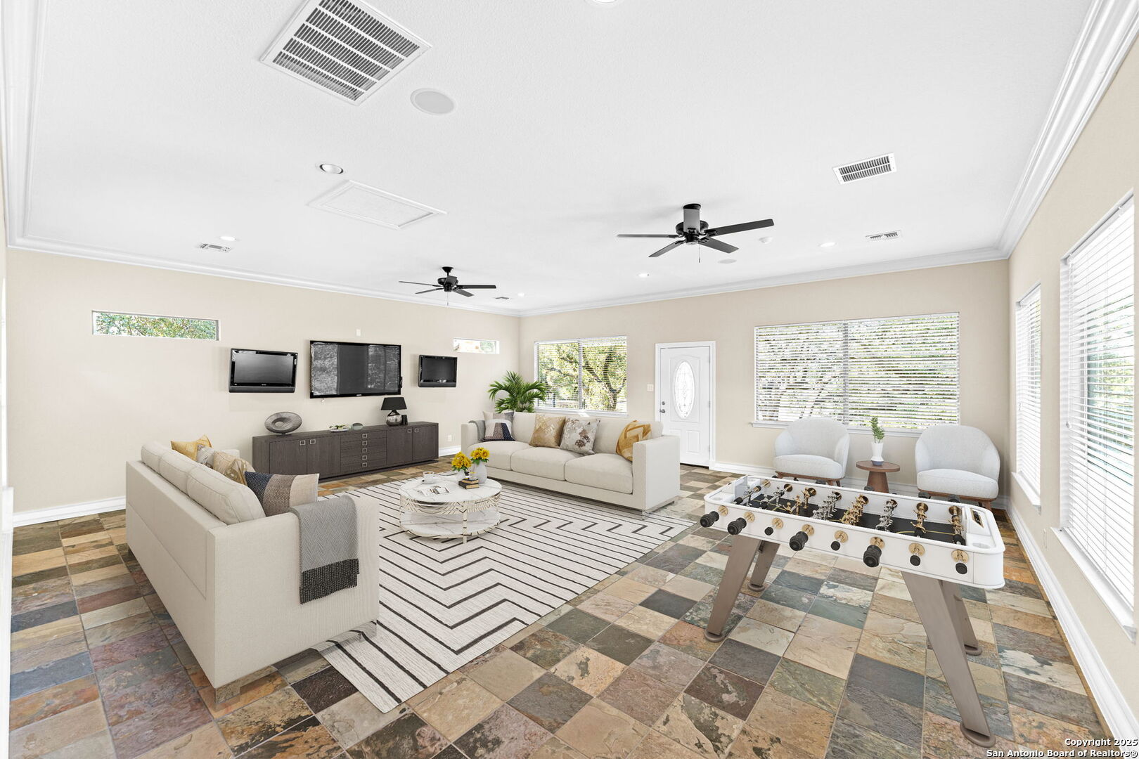 Custom home by Mann Custom Homes. Located in The Forest of Stone Oak sitting on .86 acres which backs up to a dense wooded area. The outdoor area is a true paradise with a pool and spa surrounded by mature trees. The interior, features an open concept where the kitchen opens to a reading area with a fireplace, breakfast area, and family room all of which features slate tile flooring. The flooring in the remainder of the home is Hand-scraped & Distressed Hickory-hardwood. As you enter the home you are located in second living room looking through oversized windows which overlook a parklike, outdoor paradise. The home is roughly 4272 s.f., and features 4 bedrooms, 3.5 bath, a Study, 2 Living rooms, 2 Game rooms-1 upstairs, along with 3 bedrooms. The kitchen offers custom cabinets, granite countertops, double ovens and SS appliances. This amazing space can accommodate a family of all sizes, is perfect for entertaining, and Work-from-Home space for a number of people. Enjoy the privacy of this home yet minutes from school, shopping, and outdoors adventures and entertainment. In addition, you are only 30 minutes from downtown where you find yourself strolling the Historic areas of San Antonio and the Riverwalk.