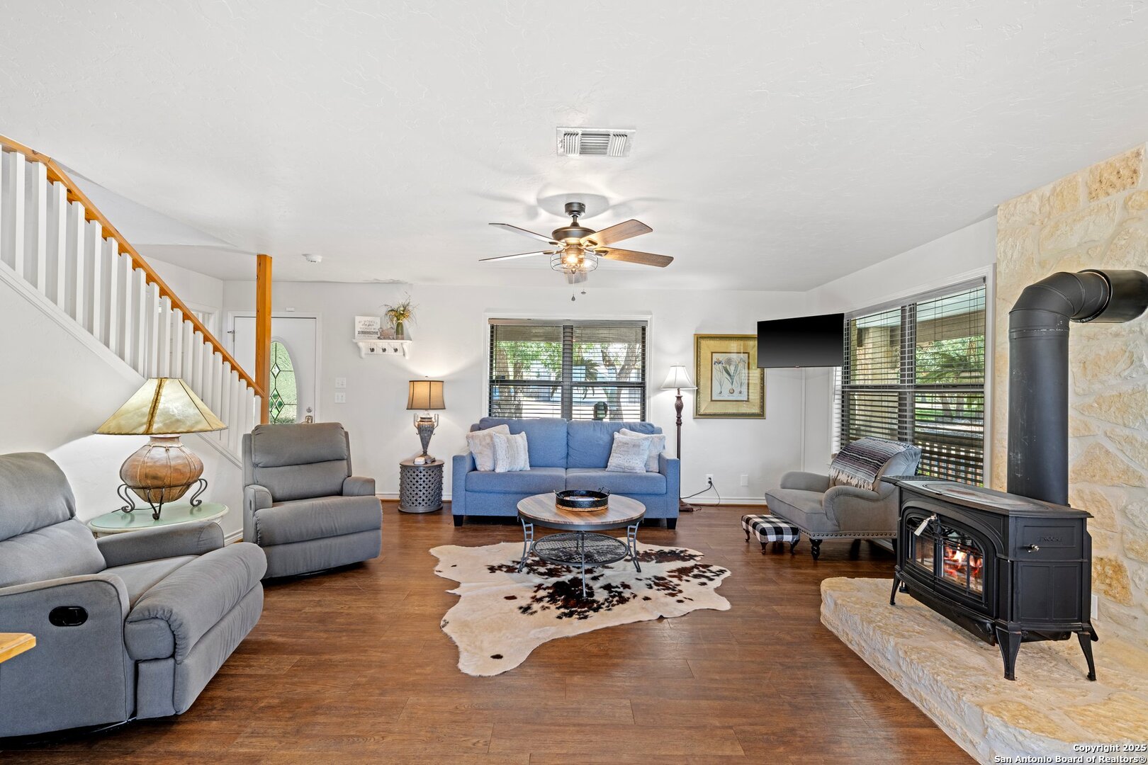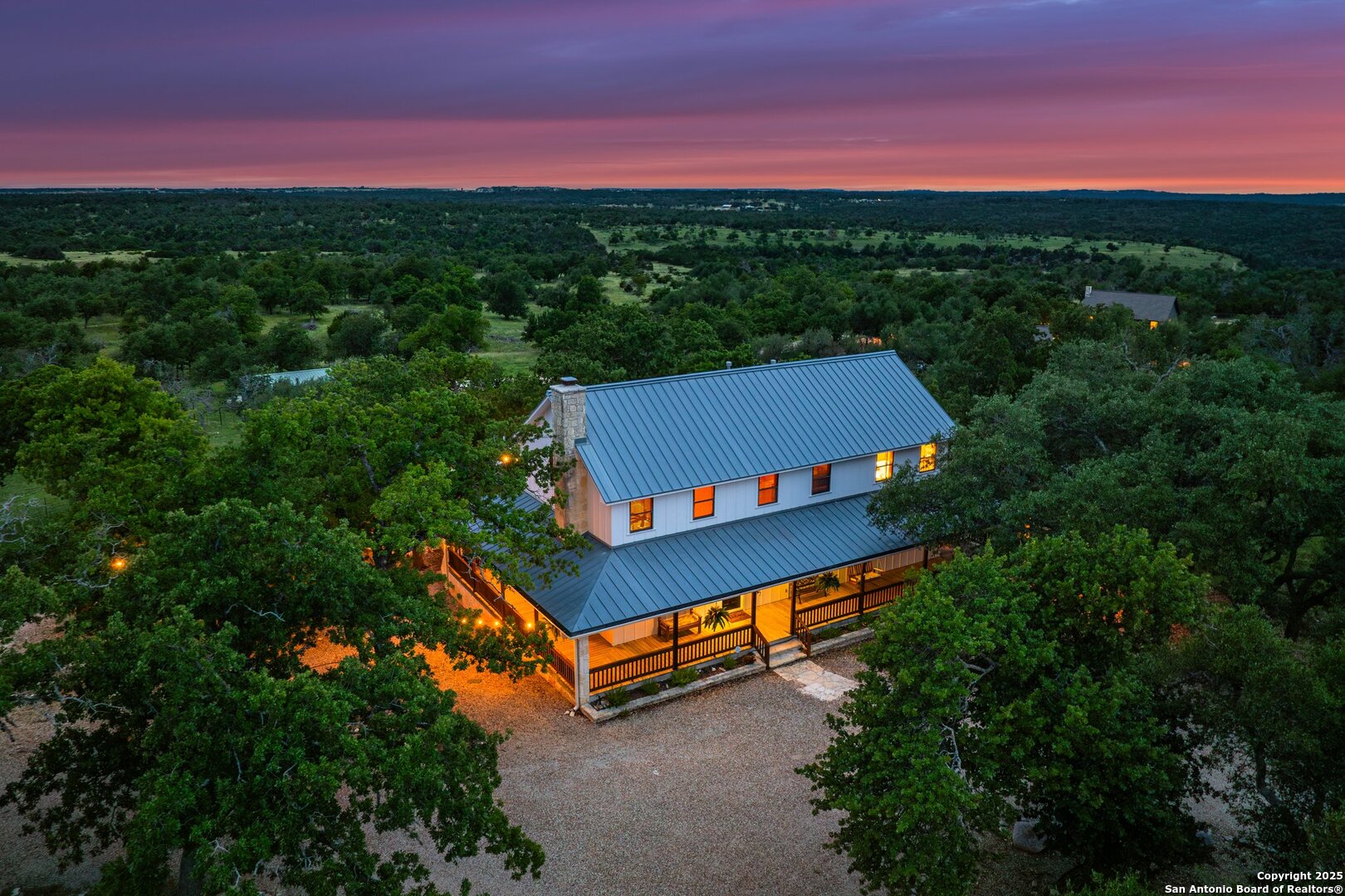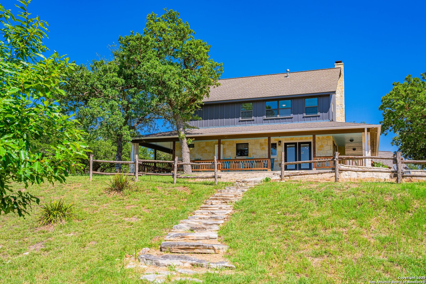 TEXAS RANCH RETREAT: TWO HOMES, TWO SUITES ON 10-ACRES, CREATING ENDLESS POSSIBILITIES! Just 9 miles North of Fredericksburg's Main Street and near Enchanted Rock, this versatile property is perfect for short-term rentals, events, a private retreat or transforming into a private family compound or recreational ranch. The 10-acre setting includes 2 spacious fully furnished homes, each with open-concept living, high ceilings, and sleeping for 14 guests. House #1 is a 3BD/3.5BA with a standing seam metal roof on 1 acre. House #2 is a 3BD/2BA with a 2022 composition roof on 0.5 acre. Plus two newly built 625sf cottages w/separate septic for additional guests or income-producing opportunities. Outdoor amenities include wrap-around porches to enjoy the beautiful sunsets & alfresco dining, a gazebo w/electricity & lights, stone patio, a large fire pit, fenced dog run & detached garage with plenty of storage. A 185-ft well produces 15 GPM & includes a water softener. Guest bookings convey, offering immediate income potential. This is a rare opportunity in a prime Hill Country location to own a versatile & income-generating property in one of Texas's most desirable locations! Come build your TX dream!