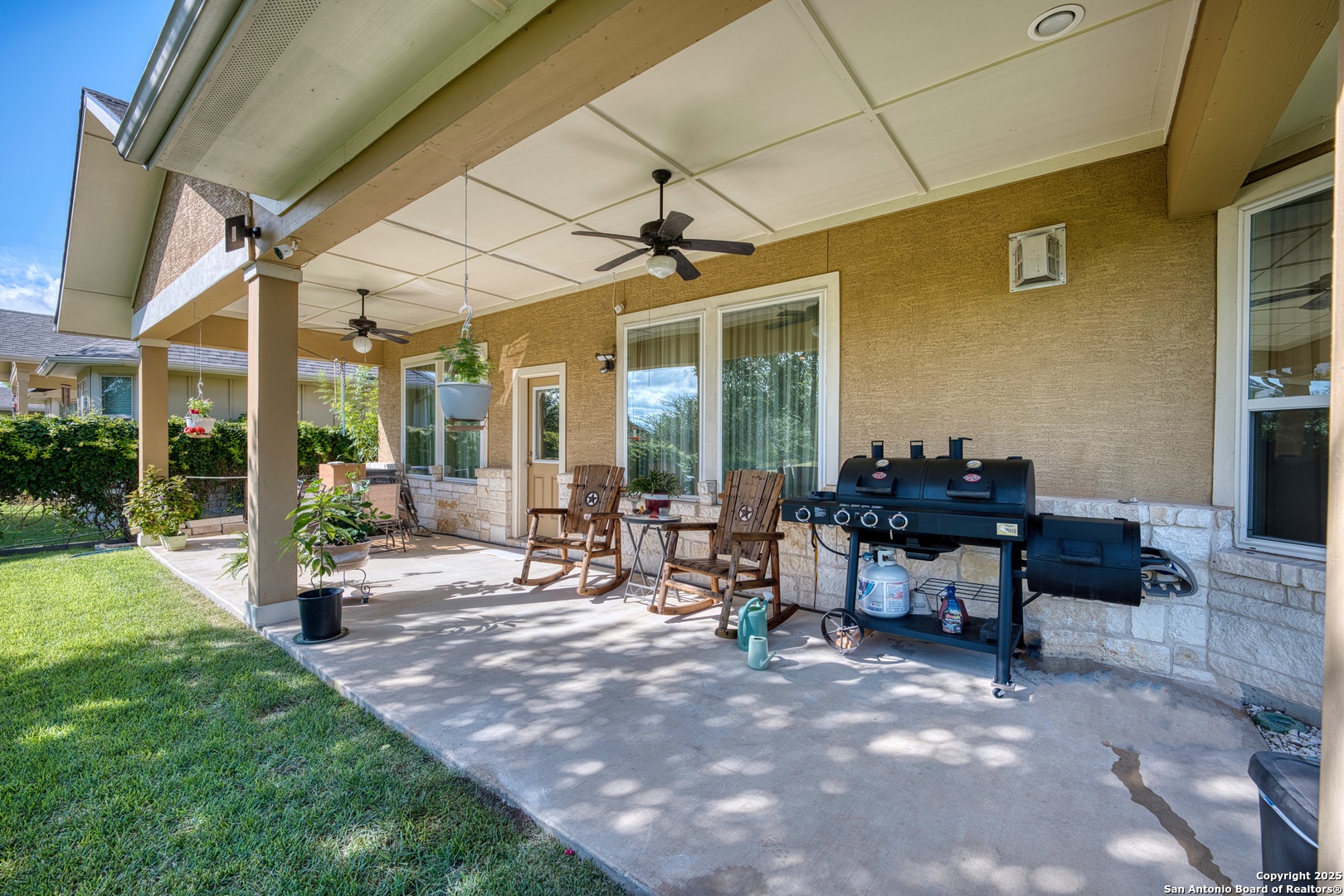 This is a must see. 2.25% ASSUMABLE RATE! Welcome to this stunning single story home, where luxury meets comfort in a beautifully designed, open split floor plan. The kitchen features 42" cabinets, granite counter tops, and island. The home also features a study. The backyard is very private. Exceptional amenities, including a community pool, walking trails, and BBQ/picnic areas. Conveniently located near Randolph AFB, Fort Sam Houston, The Forum, I-35, and New Braunfels, with easy access to San Antonio's major shopping, dining, and entertainment hubs.