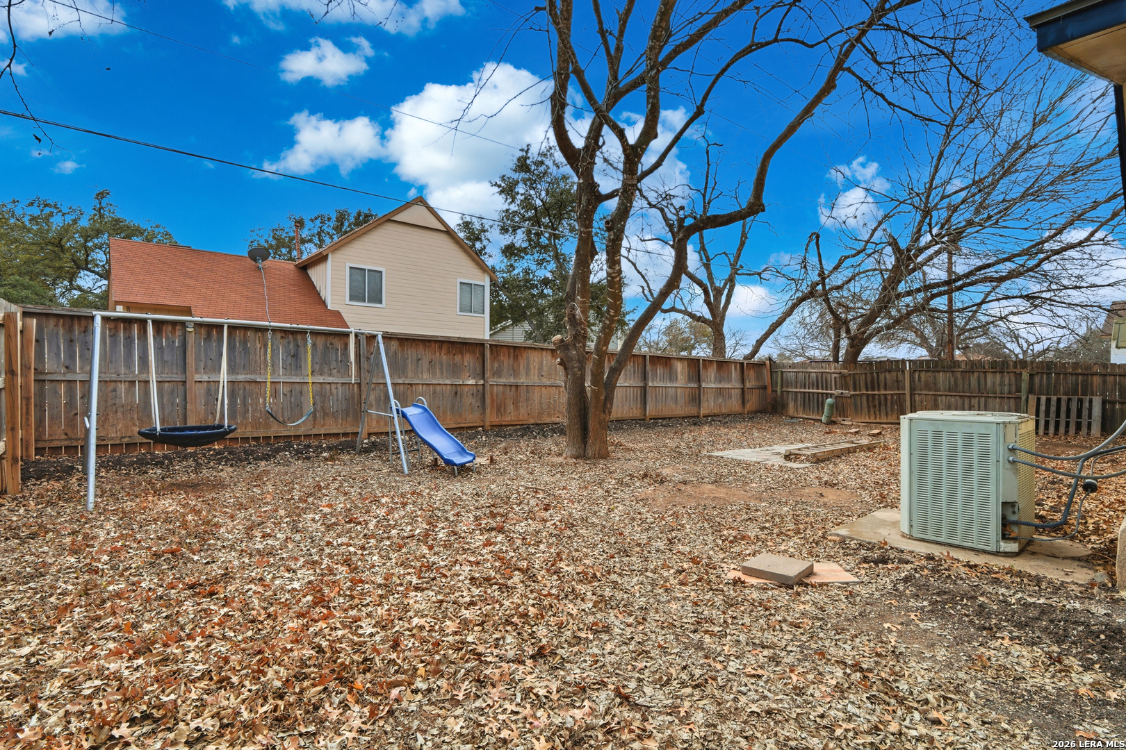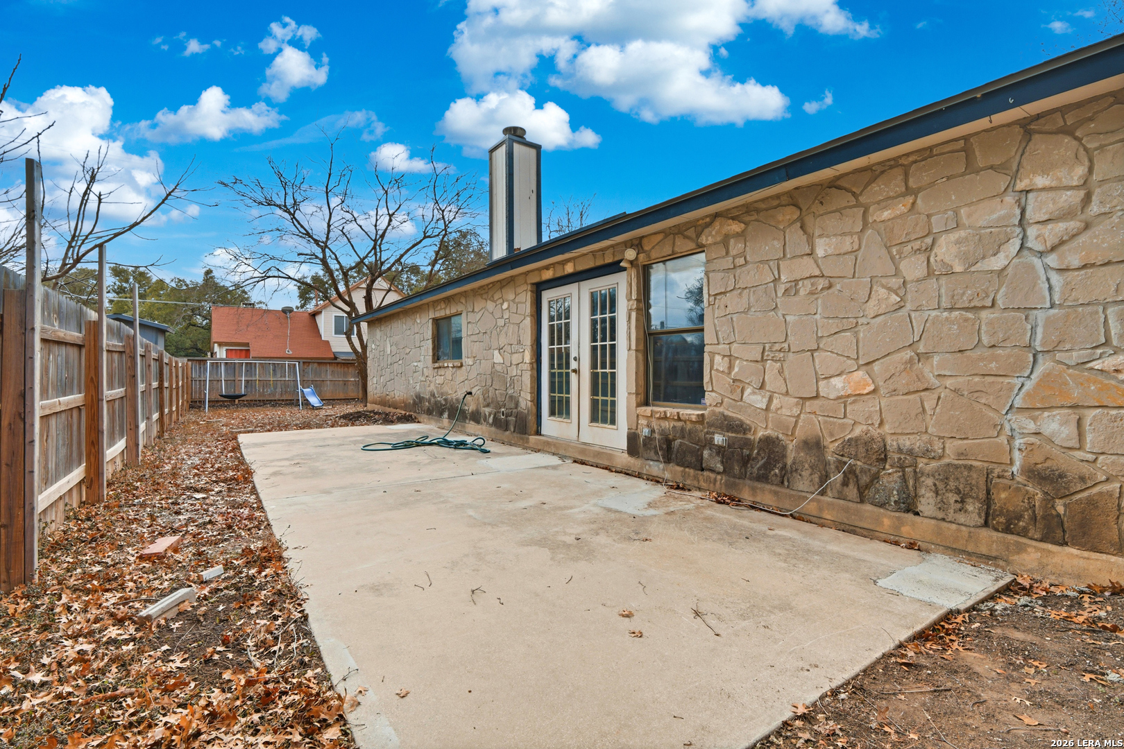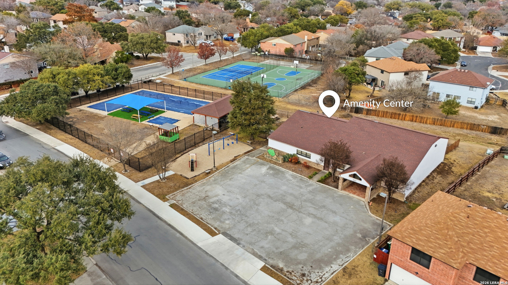 This single story home offers a practical layout with a stone exterior and comfortable living spaces. The living room includes recessed lighting and a stone wood burning fireplace, providing a straightforward and functional gathering area. The kitchen features all white cabinets and a breakfast bar, offering a simple setup for everyday use. The primary bedroom includes an attached bathroom with a large garden tub and a walk in closet. Additional rooms provide flexibility for work or storage needs. The backyard includes a patio slab and a privacy fence, creating a usable outdoor space with minimal upkeep. Residents also enjoy access to neighborhood amenities such as a pool, park, sports court, and clubhouse. Conveniently located with easy access to 1604, this home offers a manageable commute to SeaWorld, Alamo Ranch, La Cantera, Northwest Vista College, and Lackland Air Force Base. The property is located within the award winning NISD district.