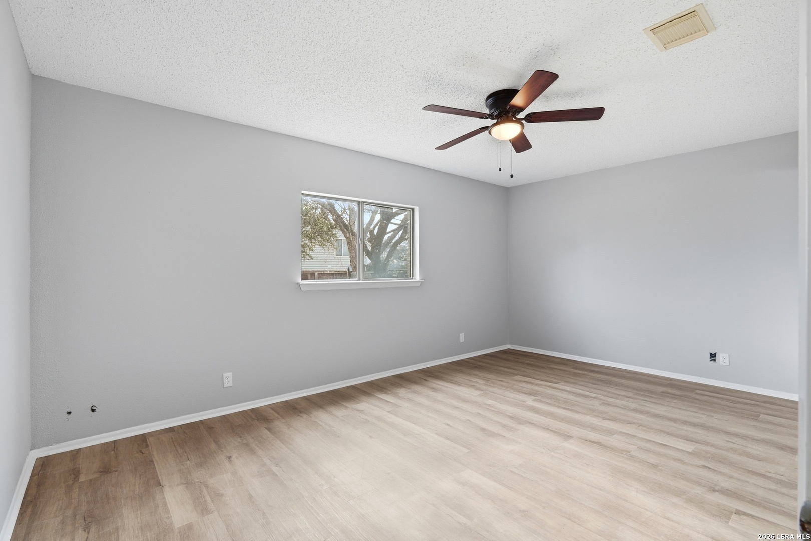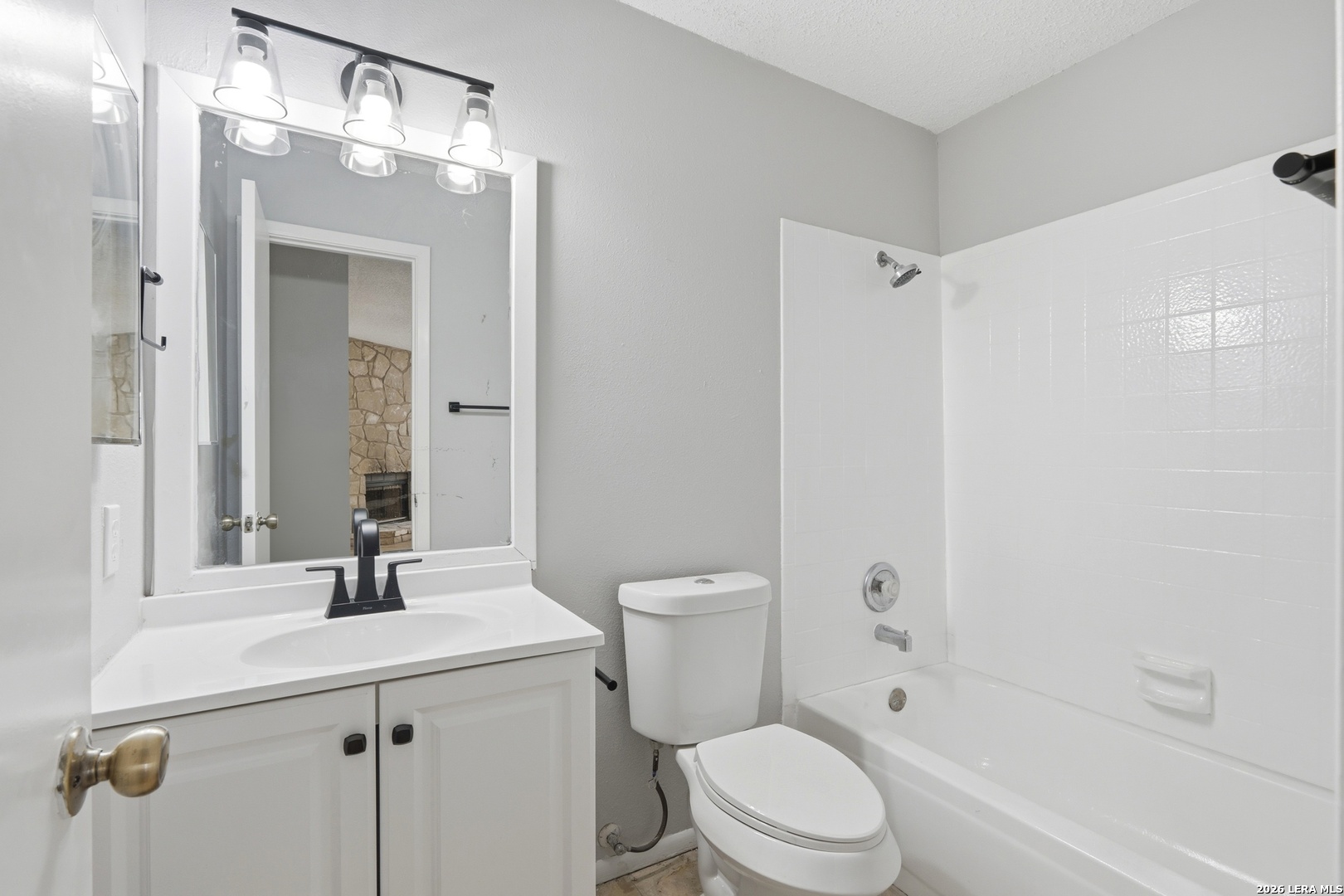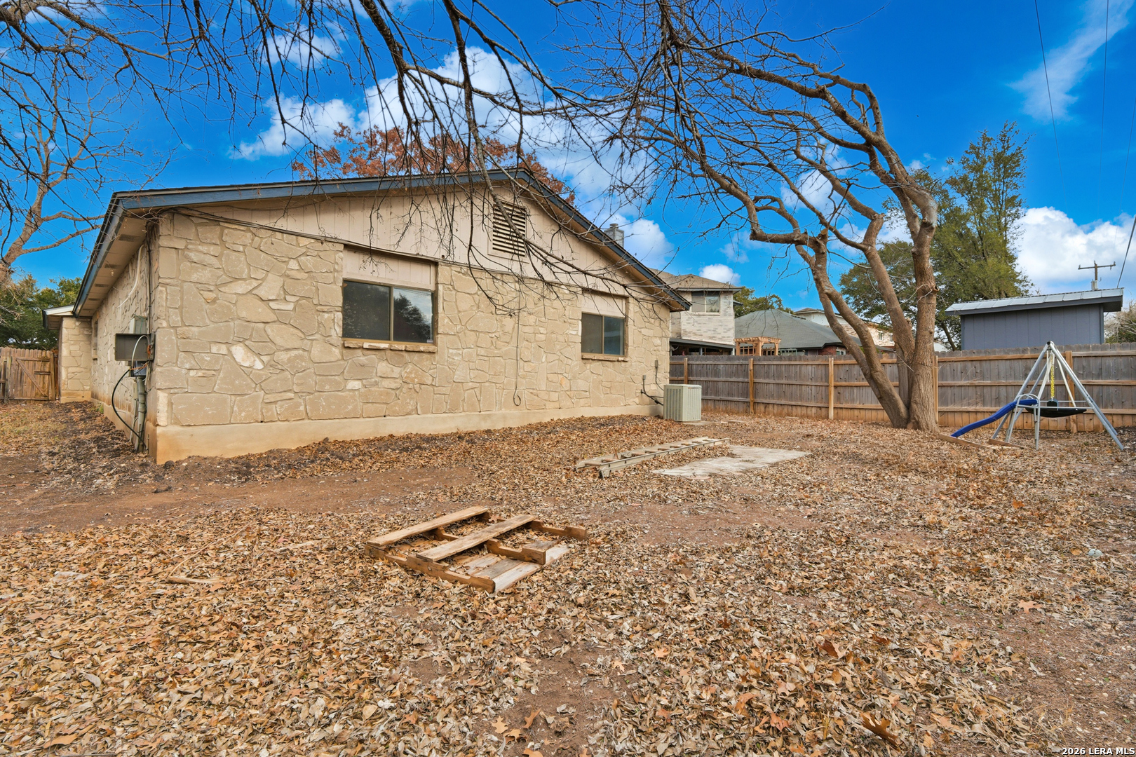 This single story home offers a practical layout with a stone exterior and comfortable living spaces. The living room includes recessed lighting and a stone wood burning fireplace, providing a straightforward and functional gathering area. The kitchen features all white cabinets and a breakfast bar, offering a simple setup for everyday use. The primary bedroom includes an attached bathroom with a large garden tub and a walk in closet. Additional rooms provide flexibility for work or storage needs. The backyard includes a patio slab and a privacy fence, creating a usable outdoor space with minimal upkeep. Residents also enjoy access to neighborhood amenities such as a pool, park, sports court, and clubhouse. Conveniently located with easy access to 1604, this home offers a manageable commute to SeaWorld, Alamo Ranch, La Cantera, Northwest Vista College, and Lackland Air Force Base. The property is located within the award winning NISD district.